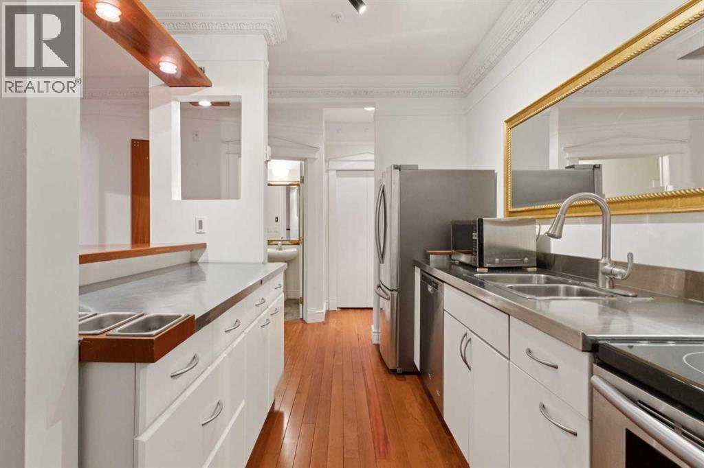 Live in the heart of downtown with this stylish 1-bedroom, 1-bath end unit condo offering 657 sq ft of modern urban living. Located just a short stroll from the vibrant energy of 17th Ave and 4th Street, you’re perfectly positioned to enjoy Calgary’s best restaurants, cafés, and nightlife. Step inside and be greeted by soaring 10-foot loft-style ceilings, Honduras Mahogany table top, crown mouldings, newer hardwood floors and paint, plus sleek stainless steel countertops. The open-concept layout is both functional and inviting, with large windows that let in plenty of natural light. The spacious bedroom features a modern wall design and ceiling fan with additional features including in-suite laundry, assigned storage, titled underground parking, and a well-maintained building in a prime location. Whether you’re a first-time buyer, downsizer, or investor, this is downtown living done right. Condo fees include heat, water and sewer too! Don’t miss your chance to own a piece of Calgary’s inner-city lifestyle! (id:6769