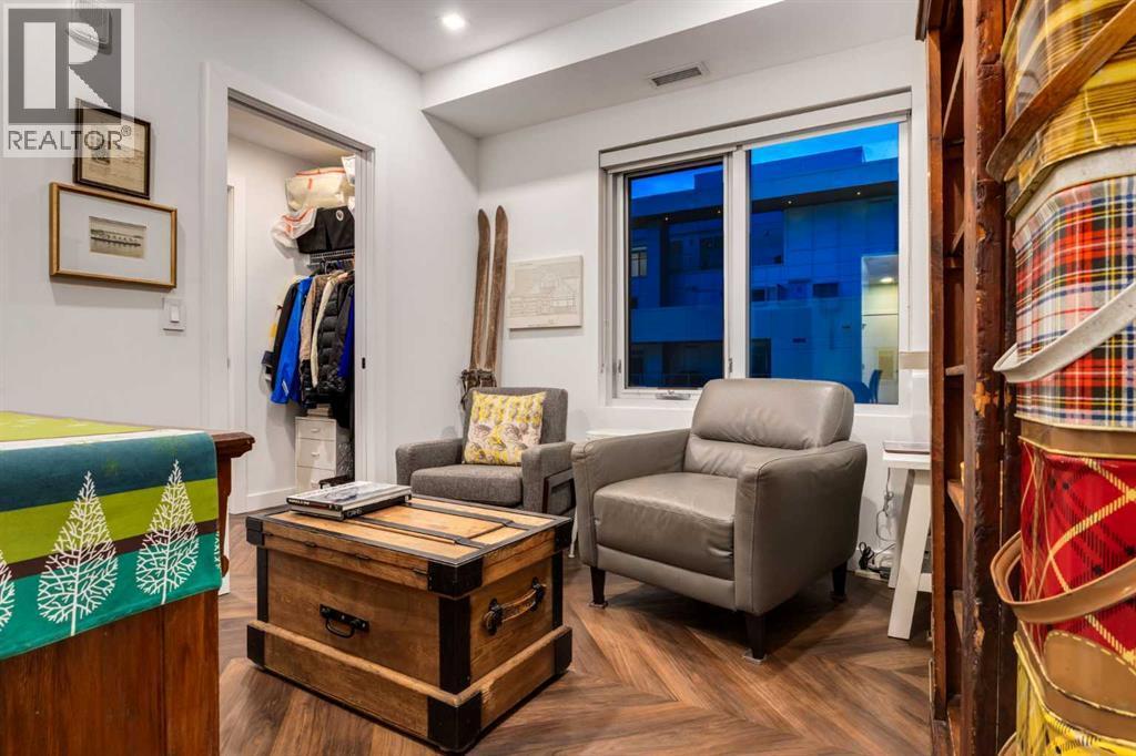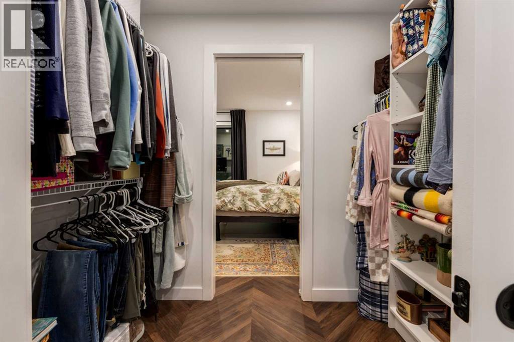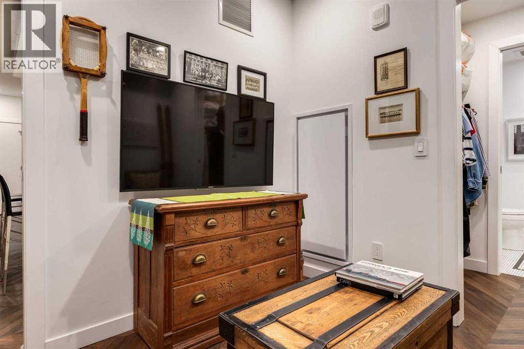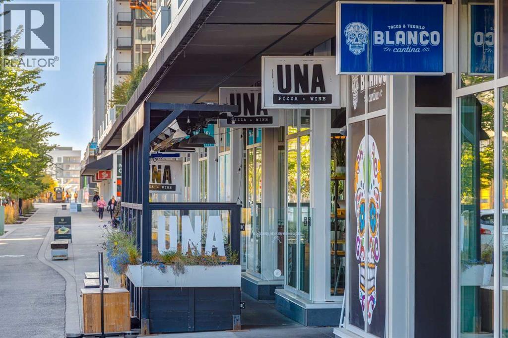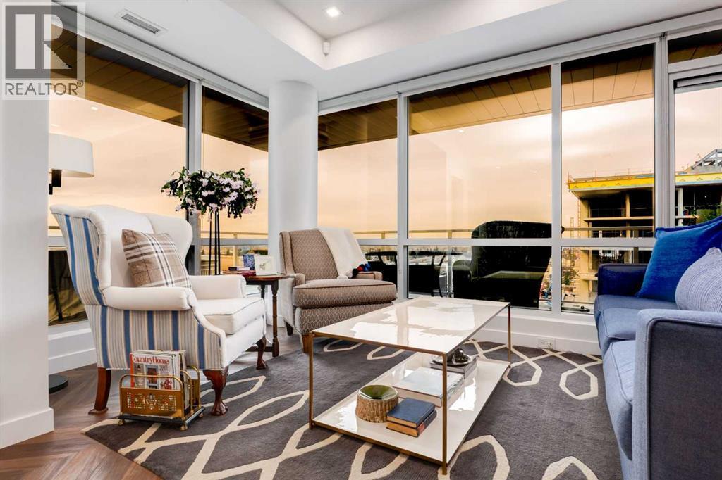 Experience elevated urban living in this warm and inviting two-bedroom residence offering over 1,100 square feet of thoughtfully designed interior space and a wraparound terrace perfect for everyday outdoor living and relaxed entertaining. Blending a cozy Ralph Lauren–inspired aesthetic with modern finishes, this home features chevron-patterned flooring, designer lighting, and flat-painted ceilings that create a timeless atmosphere throughout. The chef-inspired kitchen is the heart of the home, showcasing matte grey slate cabinetry with soft-close hardware, brushed-gold accents, quartz countertops, and a matching backsplash. Premium appliances include a Frigidaire induction cooktop, Elica hood fan, Fisher & Paykel integrated fridge and freezer, and Whirlpool oven, complemented by a deep grey Blanco sink, elegant black pendant lighting, and a spacious walk-in pantry. The open living room and dining areas are bathed in natural light from expansive windows that frame stunning mountain views, while a charming reading/coffee nook offers the perfect spot to unwind or start your day. The versatile second bedroom can easily serve as a guest room, home office, or creative space, complete with a walk-in closet and a stylish four-piece bathroom. The primary suite feels calm and comforting, with warm neutral tones, a walk-in closet, and a spa-like ensuite featuring dual vanities, quartz countertops, and a glass-enclosed shower. Additional features include a new Electrolux washer and dryer, generous linen storage, one titled underground parking stall, and two large storage units. The wraparound terrace enhances daily living with ample space for outdoor lounging and garden greenery, creating a private retreat in the heart of the city. Residents enjoy access to premium amenities including a rooftop patio, private owner’s lounge, secure underground visitor parking, bike storage, EV charging stations, and concierge services. Ideally located in Calgary’s West District, you are surrou nded by parks, walking paths, boutique shops, cafés, and dining options. Book your private viewing today! (id:6769