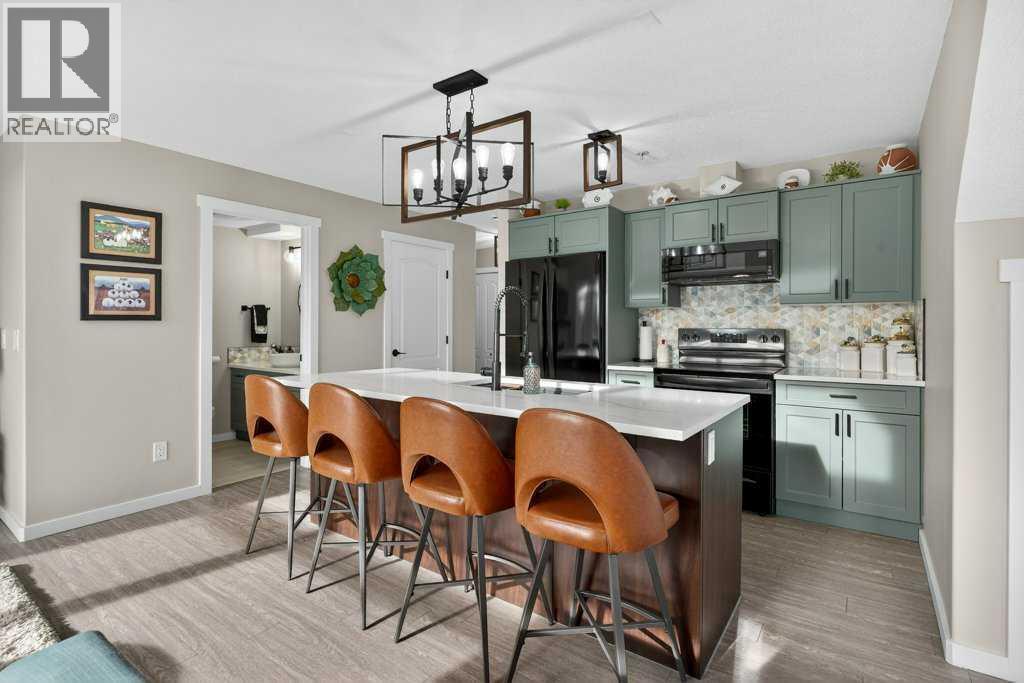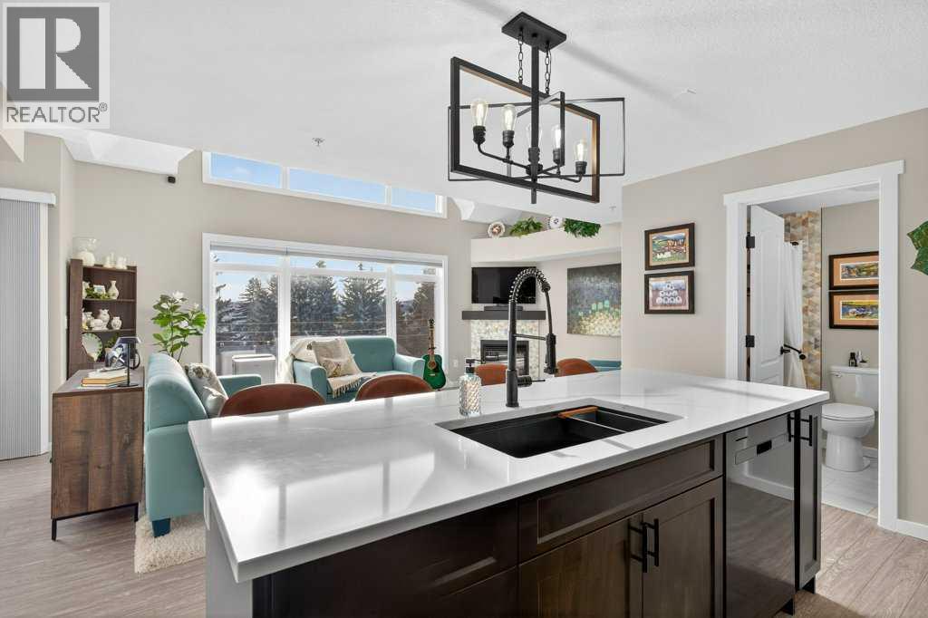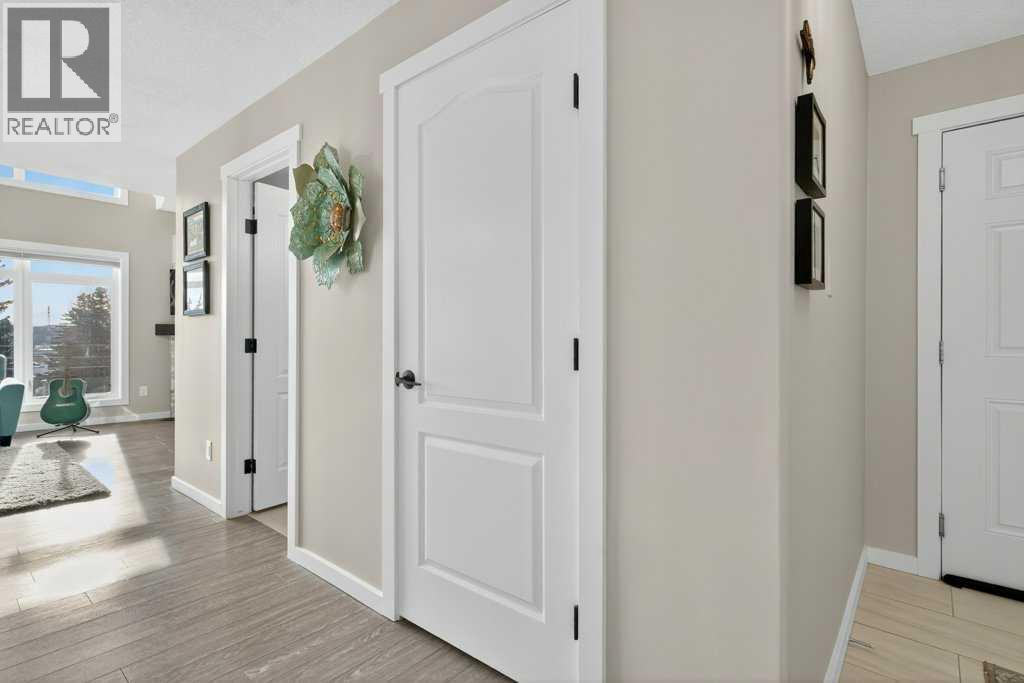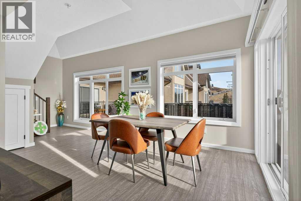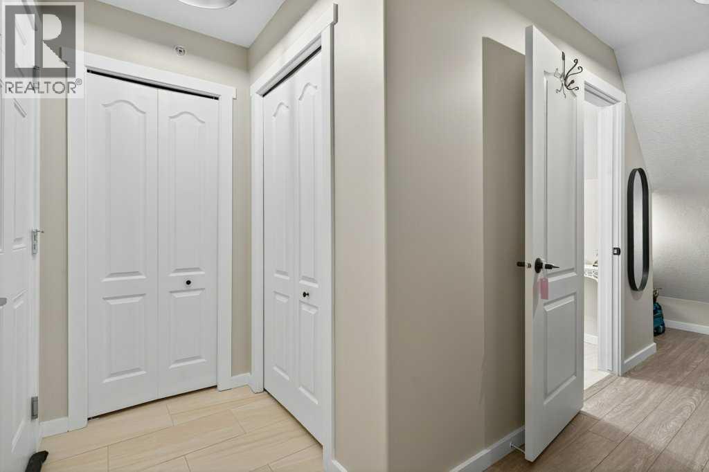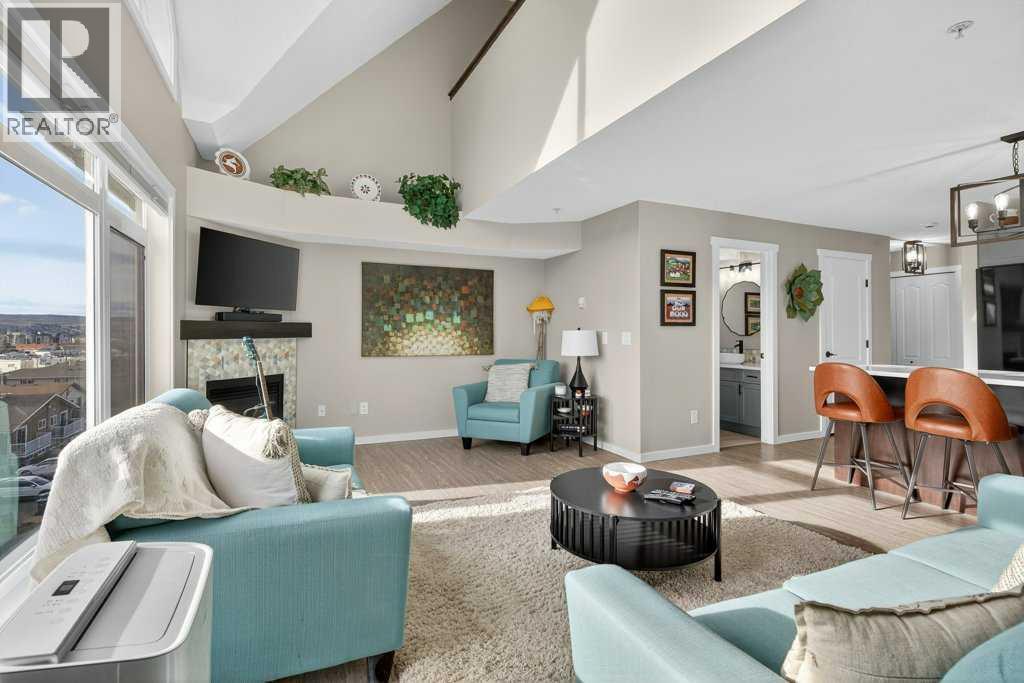 Experience exceptional condominium living in this incredible multi-level residence at 141 Mountain Street—one of the largest layouts in the entire building. Set in a quiet corner on the south side of the building, this unique unit comes with two titled parking stalls and offers an impressive level of privacy and natural light. Vaulted ceilings and massive windows draw your eyes to a view to Cochrane, while the expansive wrap-around balcony provides a relaxing spot to enjoy a hint of the mountains.The main level features a bright, open design that is perfect for both everyday living and entertaining. Fresh paint and meticulous upkeep make the space feel warm and welcoming. The well-appointed kitchen includes plentiful cabinetry, generous counter space, and a quartz island, ideal for prepping meals or gatherings with friends or family. A spacious dining area flows easily into the inviting living room, complete with a beautifully tiled gas fireplace.This level also includes a comfortable second bedroom, a 4-piece bathroom, and convenient in-suite laundry. Upstairs, the loft-style primary suite offers a peaceful escape with room for large furniture, a walk-through closet with exceptional storage, and a private 4-piece ensuite with dual quartz vanities. The 4th floor can also be accessed from the upper bedroom floor.Recent upgrades include: New Kitchen cabinets, remodelled island, quartz counter-tops, all new appliances (incl. washer & dryer), new tile in foyer, kitchen backsplash, fireplace surround and both bathrooms (floors & tub/shower), fireplace mantle, paint (walls, doors, trim & ceiling), new sinks, faucets & toilets, light fixtures, custom blinds, new door hardware and even a custom built pantry.A unique advantage of this unit is dual elevator access—allowing you to reach your home from either the third or fourth floor. The heated parkade includes your two titled stalls, plus additional accessible and visitor parking for added convenience.Just steps from d owntown Cochrane’s shops, restaurants, and amenities, this location also provides simple access to Calgary and the mountains via Crowchild Trail, Highway 1, and the nearby Tuscany C-Train station. (id:6769