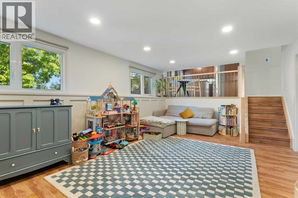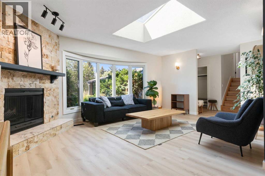 Beautifully updated 4-level split in the heart of Oakridge offering 2,446 sq ft of total living space (1,315.93 sq ft above grade). From the landscaped yard and brick column entrance to the newly levelled driveway curb, this home shows pride of ownership inside and out. The main level features a bright living room with skylight, large windows, and a stone-faced fireplace, a formal dining area, and an updated kitchen with espresso-stained cabinetry, 5-burner gas stove, brand new stainless steel appliances, ample counter space, and breakfast nook with patio doors to the private backyard and deck. The open-to-below family room offers a second fireplace, wainscotting, and flexible space for a playroom or office. A powder room, laundry with new washer/dryer, another guest bedroom, and side access to the oversized heated garage complete this level. Upstairs are three bedrooms and two renovated bathrooms, including the primary suite with its own fireplace, closet space, and sleek ensuite. Pot lights brighten the upper hallway, while new sconces add warmth in the living room. The lower level provides a versatile recreation spaces (currently used as a shop) and tons of storage! Extensive updates include: new LVP flooring, appliances, washer/dryer, heat pump, smart thermostat, electrical panel, fire alarms/CO detectors, attic insulation, light fixtures, bathroom fixtures, electrical outlets, new baseboards and paint throughout, new deck boards and railing, and epoxy flooring in the basement. A custom front door has been installed. The private backyard is a retreat, with mature trees, gardens, and a full-sized deck. Located steps from Glenmore Park, schools, paths, shopping, and the community rec centre, with quick access to Southland Drive and Stoney Trail. (id:6769