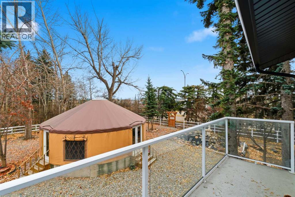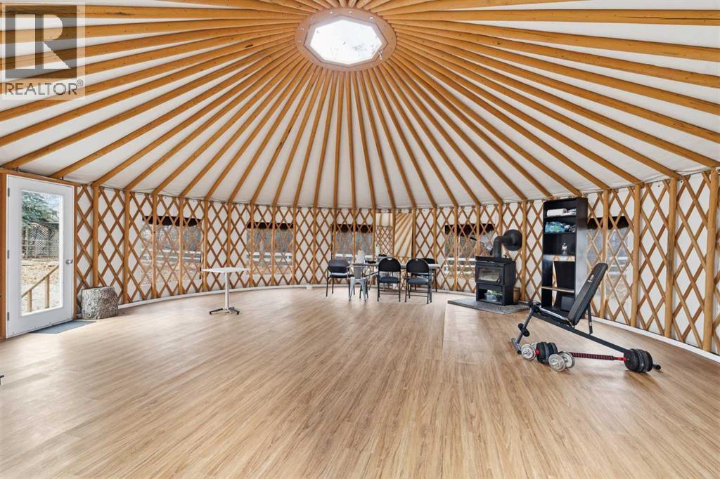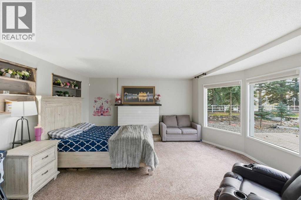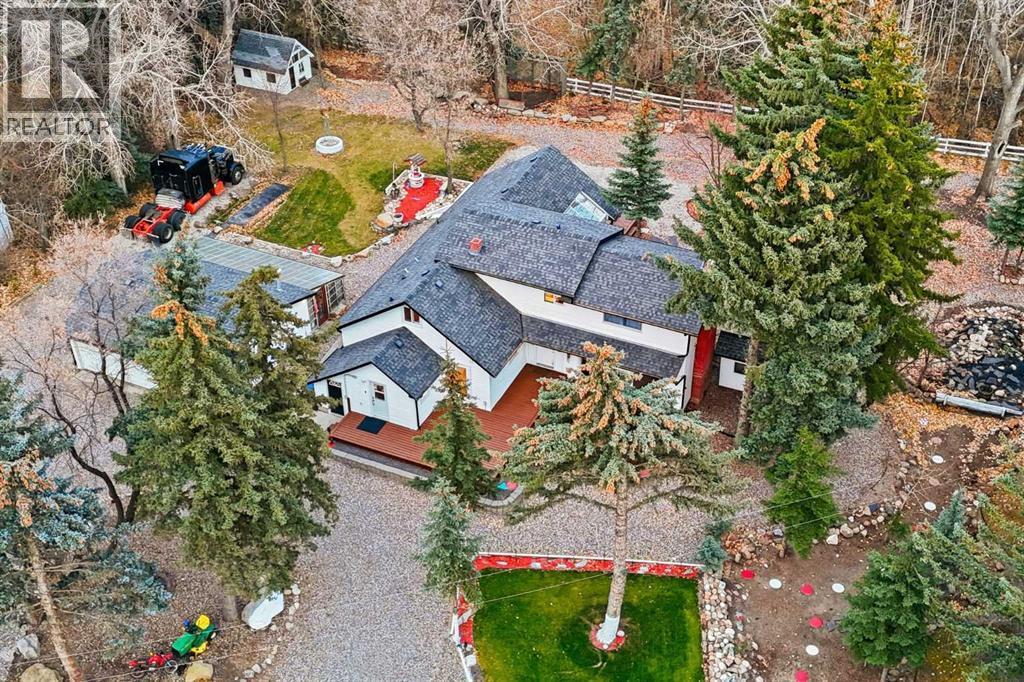 A Private Country Oasis on 5.52 Acres | Steps to Town | 2,231 Sq. Ft. Above Grade | Over 3,000 Sq. Ft. of Total Developed Living SpaceDiscover this exceptional acreage property offering privacy, natural beauty, and timeless country charm — all just minutes from town amenities. Nestled on 5.52 fully treed acres behind a private gated entrance, this uniquely designed residence provides a serene lifestyle while maintaining convenient access to daily necessities and major roadways.The home features thoughtfully selected farmhouse-inspired finishes, including reclaimed elements sourced from historic sites. The well-appointed kitchen includes stainless steel appliances, ample counter space, and extensive cabinetry, providing both functionality and style. The adjoining dining room offers a warm and inviting space for family gatherings and special occasions.A dramatic, light-filled family room showcases vaulted ceilings and expansive windows framing the peaceful natural surroundings. The sunken living room adds an additional cozy retreat, complete with a wood-burning fireplace and bay window — ideal for relaxing on cooler evenings.The upper level hosts a charming primary bedroom with double barn-door closet access, a gas fireplace, and a private balcony overlooking the treed landscape — the perfect spot for morning coffee or quiet reflection. A second bedroom, flex room, and spacious 5-piece bathroom complete this level. The finished lower level offers a large multi-purpose space, an additional bedroom with 2-piece bathroom (macerating toilet), and direct walk-up access to the outdoors.The fully developed lower level offers exceptional additional living space, featuring a bedroom, a 2-piece bathroom (macerating toilet), a large recreation room, storage area, and direct walk-up access to the outdoors, making it ideal for guests, teens, or multi-use living.Outdoor FeaturesThe property offers endless opportunities to explore and enjoy nature with mature trees, walk ing paths, and multiple outdoor activity and relaxation areas. Additional amenities include:• Cottage-style playhouse• Swings and outhouse• Chicken coop and horse shelters• Wood sheds and detached garage• Two firepit areas and water features• Expansive deck space• Pasture and stock waterers — ideal for horse ownersRecent Upgrades• Gas stove• Window blinds• Water filtration system• New hot water tank• New furnaceLocation & Investment AppealConveniently located near Honda Okotoks, this property offers excellent access to shopping, services, and commuter routes. A fantastic opportunity for buyers seeking space, lifestyle, and long-term land value in the Okotoks and surrounding area.This one-of-a-kind property combines character, comfort, and possibility — a rare offering that truly must be experienced. (id:6769