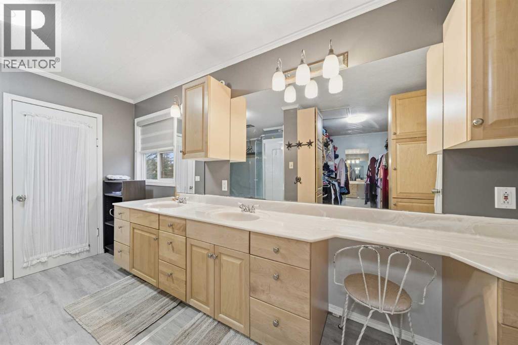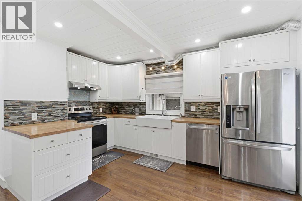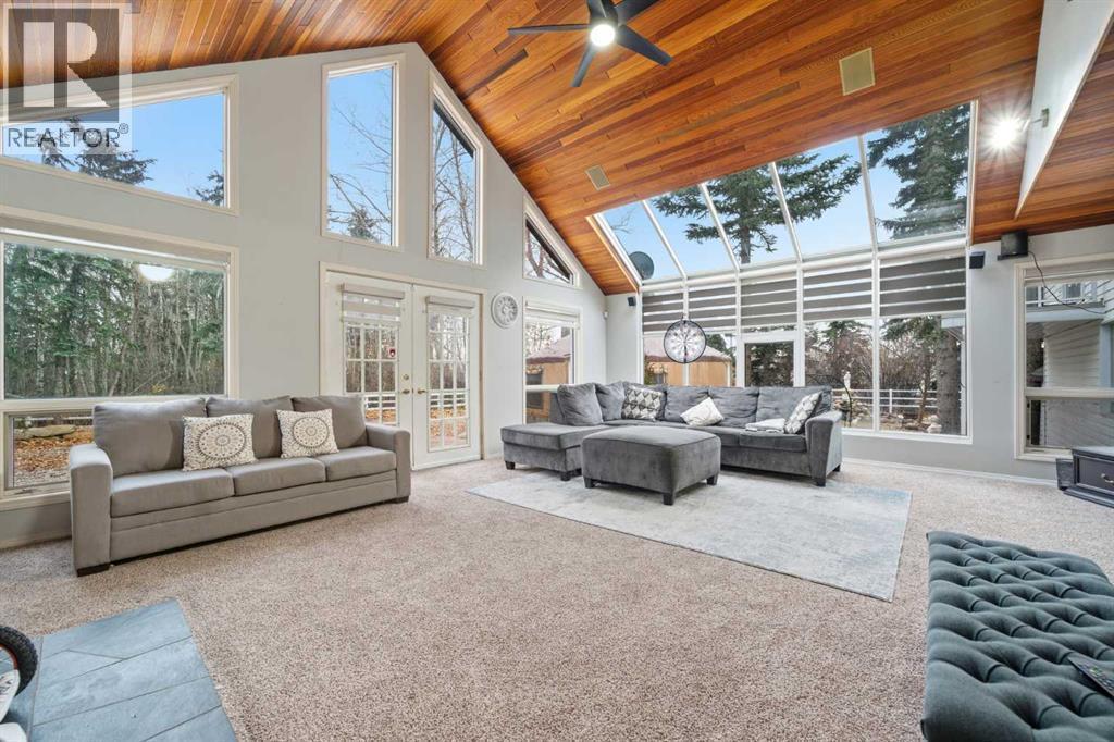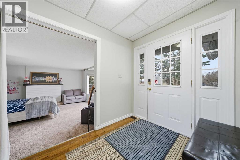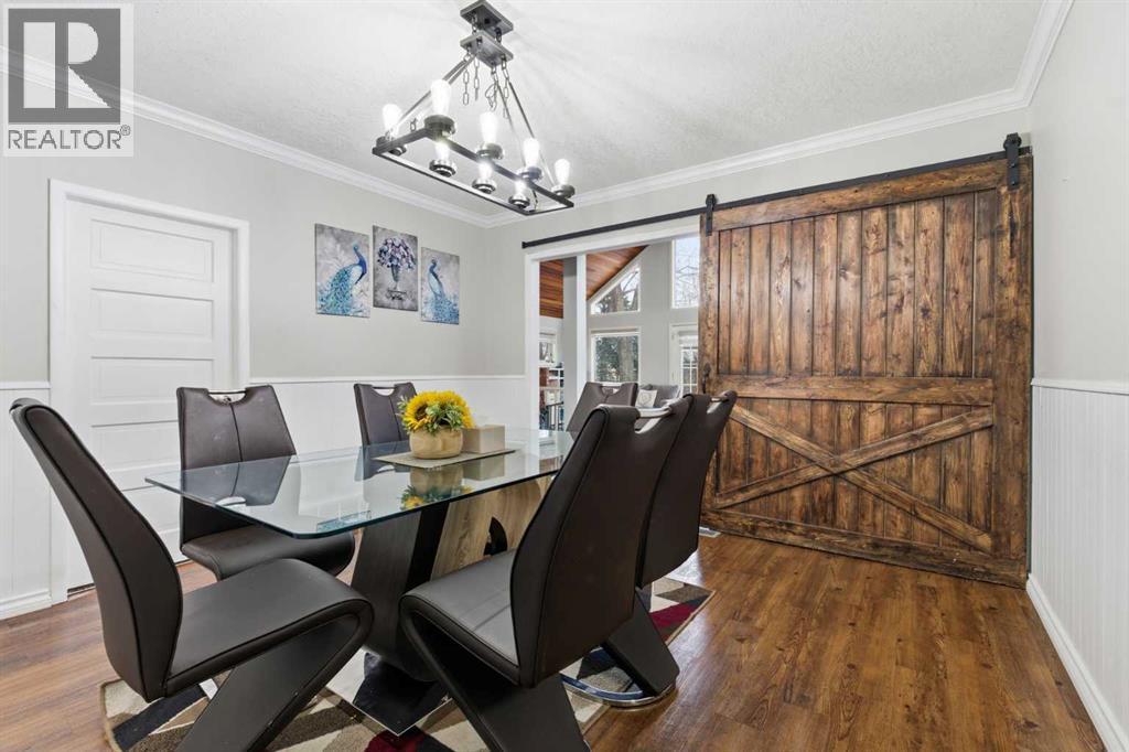 A Private Country Oasis on 5.52 Acres | Steps to Town | 2,231 Sq. Ft. Above Grade | Over 3,000 Sq. Ft. of Total Developed Living SpaceDiscover this exceptional acreage property offering privacy, natural beauty, and timeless country charm — all just minutes from town amenities. Nestled on 5.52 fully treed acres behind a private gated entrance, this uniquely designed residence provides a serene lifestyle while maintaining convenient access to daily necessities and major roadways.The home features thoughtfully selected farmhouse-inspired finishes, including reclaimed elements sourced from historic sites. The well-appointed kitchen includes stainless steel appliances, ample counter space, and extensive cabinetry, providing both functionality and style. The adjoining dining room offers a warm and inviting space for family gatherings and special occasions.A dramatic, light-filled family room showcases vaulted ceilings and expansive windows framing the peaceful natural surroundings. The sunken living room adds an additional cozy retreat, complete with a wood-burning fireplace and bay window — ideal for relaxing on cooler evenings.The upper level hosts a charming primary bedroom with double barn-door closet access, a gas fireplace, and a private balcony overlooking the treed landscape — the perfect spot for morning coffee or quiet reflection. A second bedroom, flex room, and spacious 5-piece bathroom complete this level. The finished lower level offers a large multi-purpose space, an additional bedroom with 2-piece bathroom (macerating toilet), and direct walk-up access to the outdoors.The fully developed lower level offers exceptional additional living space, featuring a bedroom, a 2-piece bathroom (macerating toilet), a large recreation room, storage area, and direct walk-up access to the outdoors, making it ideal for guests, teens, or multi-use living.Outdoor FeaturesThe property offers endless opportunities to explore and enjoy nature with mature trees, walk ing paths, and multiple outdoor activity and relaxation areas. Additional amenities include:• Cottage-style playhouse• Swings and outhouse• Chicken coop and horse shelters• Wood sheds and detached garage• Two firepit areas and water features• Expansive deck space• Pasture and stock waterers — ideal for horse ownersRecent Upgrades• Gas stove• Window blinds• Water filtration system• New hot water tank• New furnaceLocation & Investment AppealConveniently located near Honda Okotoks, this property offers excellent access to shopping, services, and commuter routes. A fantastic opportunity for buyers seeking space, lifestyle, and long-term land value in the Okotoks and surrounding area.This one-of-a-kind property combines character, comfort, and possibility — a rare offering that truly must be experienced. (id:6769