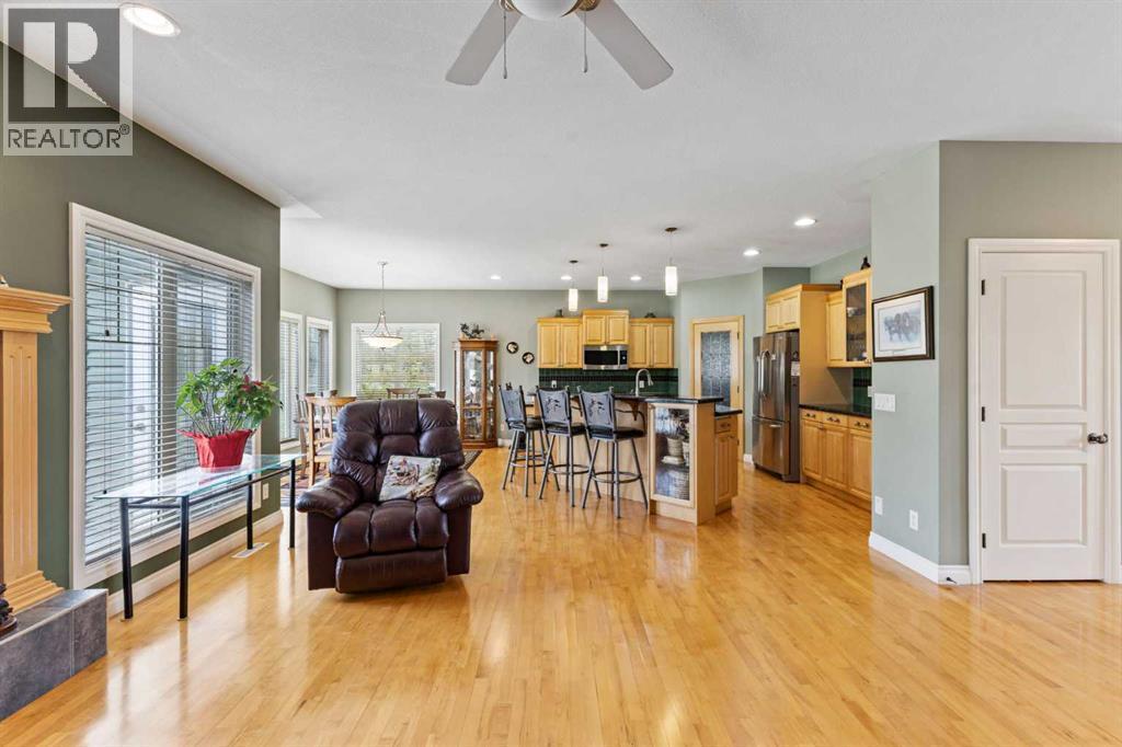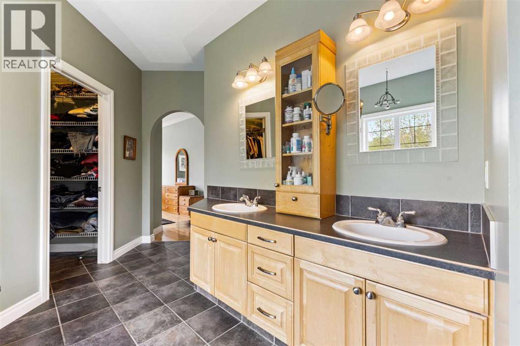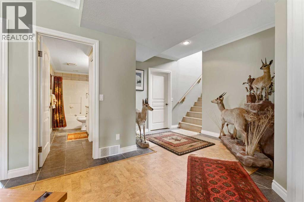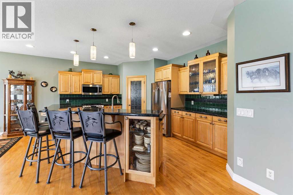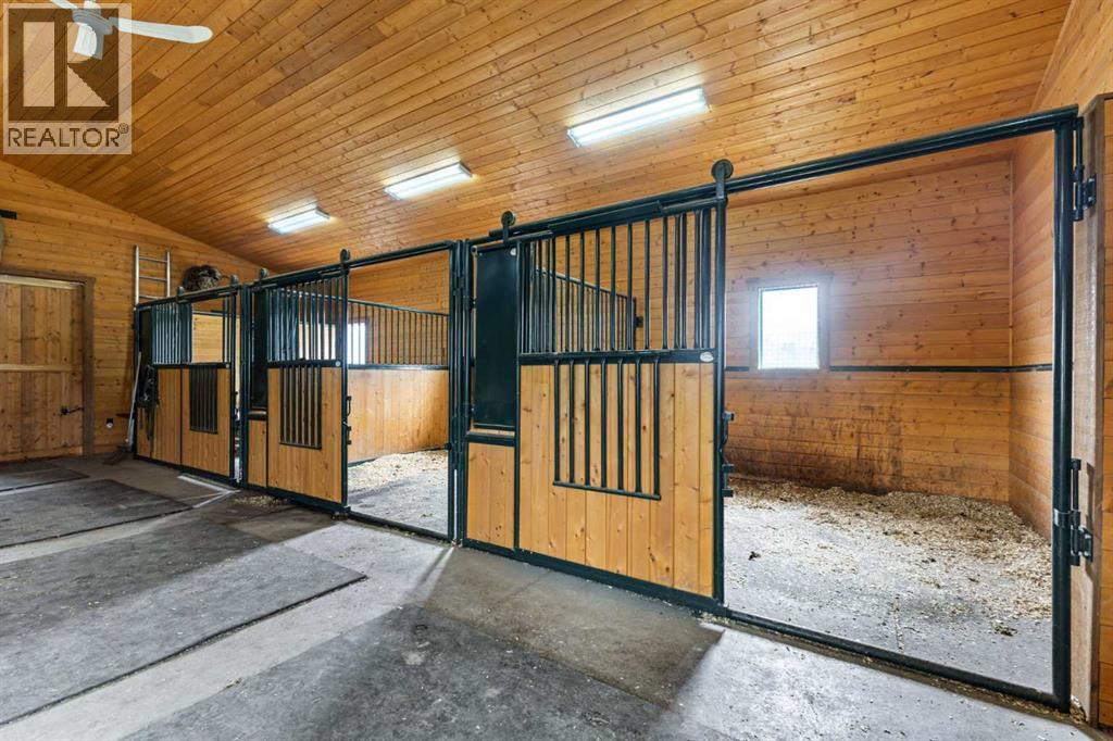 Nestled in the coveted community of Priddis, this beautifully maintained 4-acre property offers the perfect fusion of refined country living and urban convenience. Complete with a fully developed walk-out bungalow, an impressive garage/workshop, and a premium 3-stall barn (easily convertible into a workspace or car showroom), this property is ideal for horse lovers, hobbyists, and professionals alike.The well kept bungalow features over 3,500 sq. ft. of developed living space. Upon entry, you’re welcomed by a private office with French doors and custom built-ins. The open-concept main level is filled with natural light and showcases rich hardwood floors that flow through the expansive living room, dining area, and great kitchen. A cozy gas fireplace anchors the living room, while the kitchen impresses with a central island, granite countertops, stainless steel appliances (including a gas cooktop), ample cabinetry, and a walkthrough pantry that connects to the laundry and mudroom.Step out from the dining area onto the expansive upper deck and take in panoramic views of your pastures and stunning barn—an ideal space for morning coffee or evening relaxation.The main level is complete with a luxurious primary retreat, featuring a gas fireplace, private access to the deck, a spacious walk-in closet, and a spa-inspired 5-piece ensuite with in-floor heating, double vanities, a soaker tub, and a separate glass shower.The fully finished walk-out basement, also with in-floor heating, offers incredible versatility: a large family and rec room with a third gas fireplace, a cozy sitting area, a custom bar with mini-fridge, two additional bedrooms, a full 4-piece bathroom, and an oversized storage room.Car enthusiasts and tradespeople will love the 6-car garage, half of which has been configured into a workshop complete with electric heater, rough-ins for in-floor heating, and extensive cabinetry and shelving.Outside, the equestrian facilities are truly exceptional. You’ll find: Three fenced pastures (one with an automatic waterer); A round pen; Two horse shelters; Designated trailer/parking space, A stunning 1035+ sq. ft. barn, constructed with premium materials (replacement value upwards of $250K). The barn features Hi-Hog stalls, a tack room, feed room, storage space, water hydrant, and a cozy wood-burning stove. Enjoy peaceful mornings and breathtaking sunsets from the private barn deck overlooking the serene landscape.Additional highlights include a seasonal stream with beautiful stonework flowing through the property, complete and perimeter fencing and cross-fencing,Unique Zoning Advantage: This is the only property on the cul-de-sac zoned to allow animal units—setting it apart from all surrounding neighbors. All this, just 20 minutes to South Calgary, 10 minutes to Bragg Creek, and with easy access to Kananaskis Country and the Rocky Mountains. Don’t miss out—your perfect acreage lifestyle awaits! (id:6769