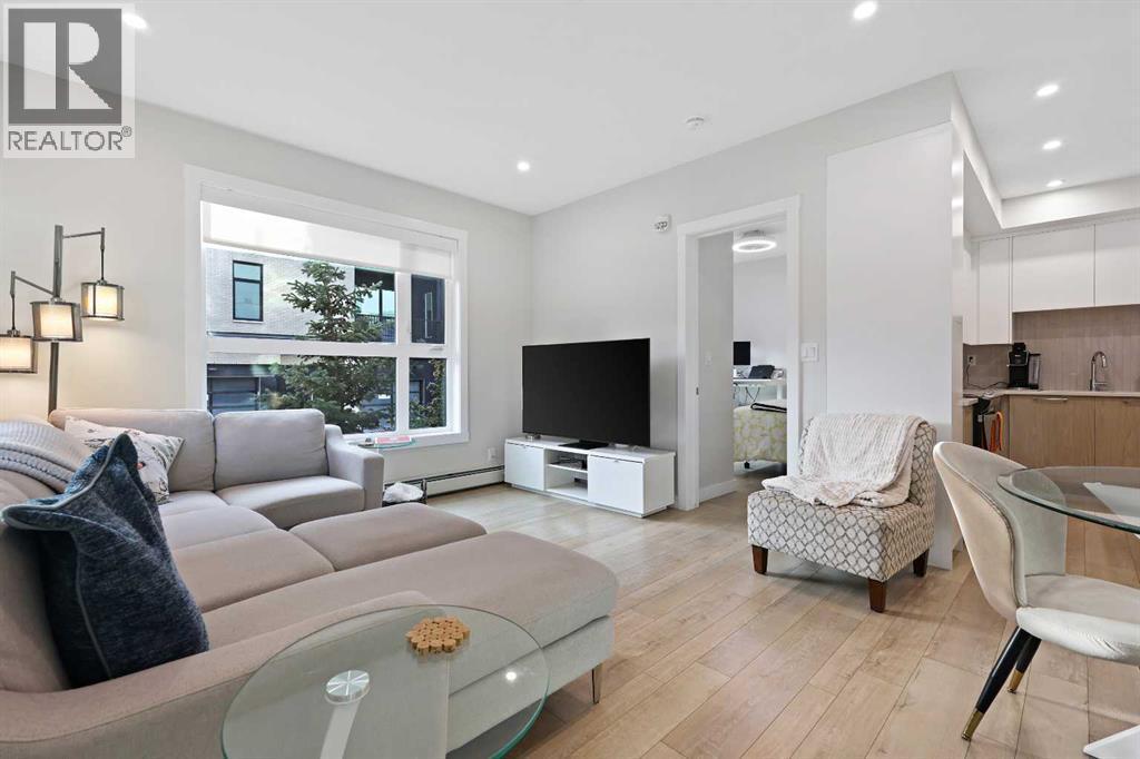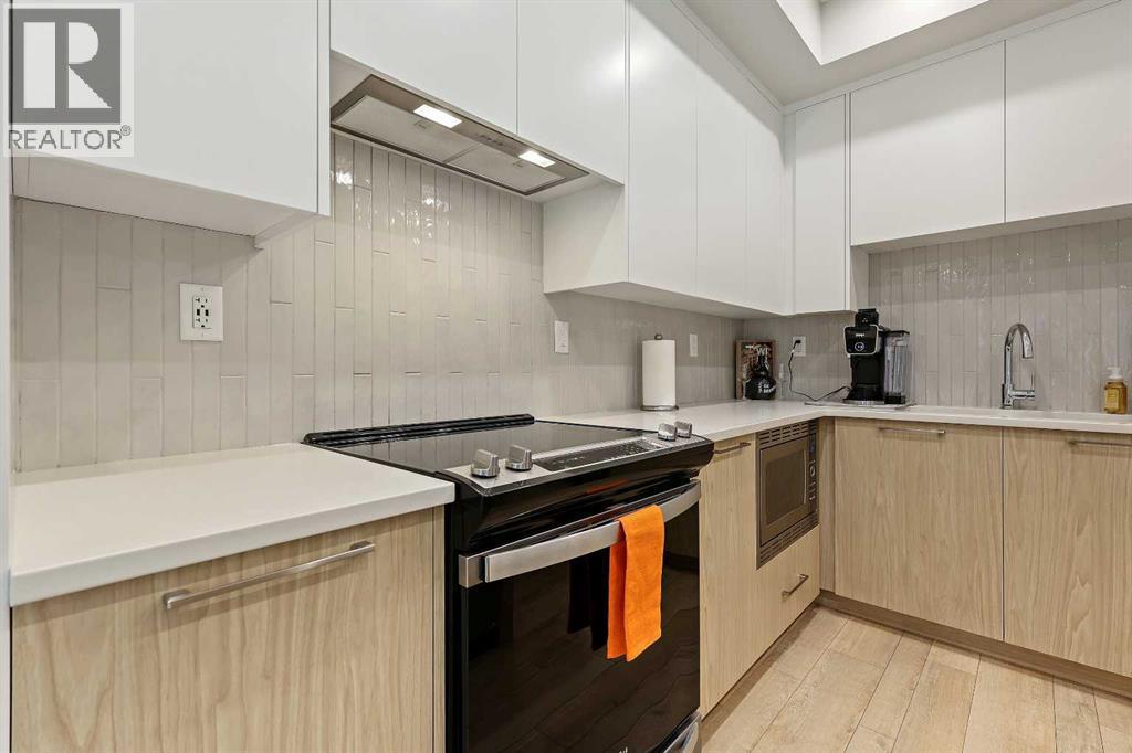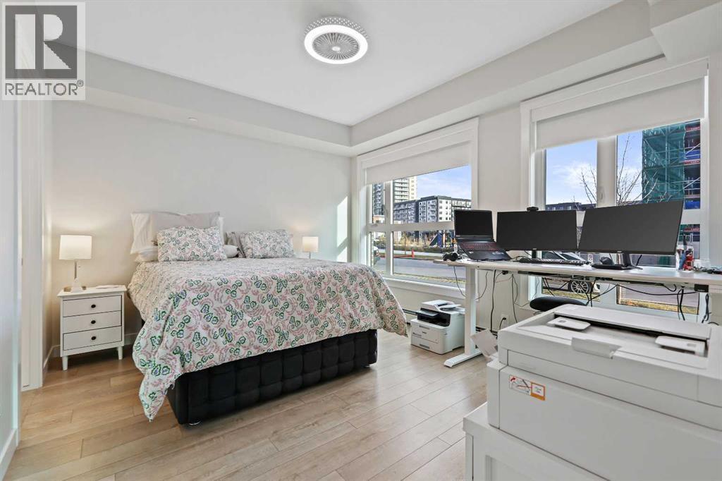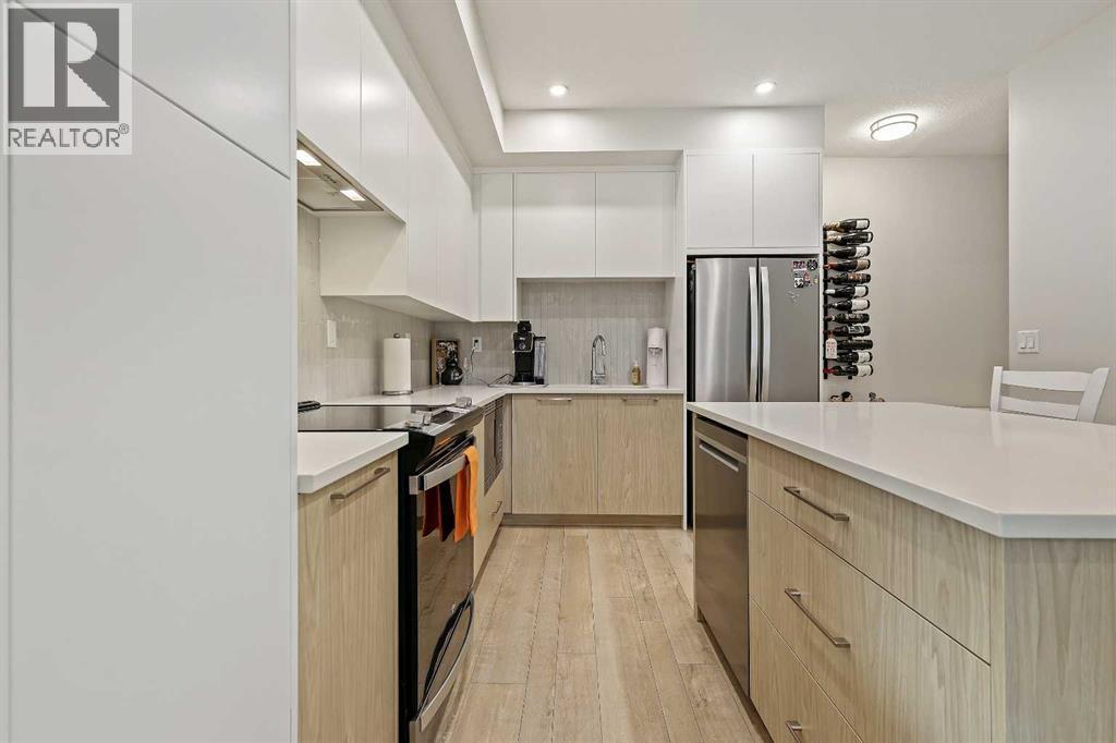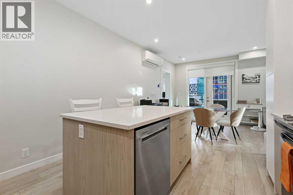 Welcome to Capella in Calgary’s University District! This beautiful main-floor condo perfectly combines modern style, comfort, and convenience in one of the city’s most walkable and desirable communities. Offering nearly 1,000 sq. ft. of bright, open living space, this two-bedroom, two-bathroom home provides an abundance of natural light thanks to its sunny southern exposure. Step out to your spacious south-facing patio, ideal for entertaining family and friends, or just relaxing and enjoying warm, summer nights.Inside, the inviting open-concept layout features a sleek, contemporary kitchen with quartz countertops, a large island with seating, built-in microwave and hood fan, an electric range, and a pantry for extra storage. The kitchen flows effortlessly into the dining and living areas—perfect for entertaining guests or unwinding after a long day.The spacious primary suite features a 5-piece ensuite, including dual vanities, a walk-in shower, soaker tub and private water closet. This home also comes with a good-size second bedroom, a full public/guest bathroom with a tub/shower combo, and a laundry room with space for shelving complete the well-designed layout. Also included with this home: an in-suite wall air conditioning unit, two upgraded ceiling fans, two titled heated underground parking stalls, two titled storage lockers, and access to the on-site fitness center. Enjoy the very best of the University District lifestyle—steps from parks, walking paths, Market Mall, U of C, Alberta Children’s and Foothills Hospitals, and local favourites like OEB Breakfast Co., Village Ice Cream, Monogram Coffee, The Canadian Brewhouse, Save-On-Foods plus so much more! Whether you are downsizing, investing, or seeking a contemporary, low-maintenance home in a thriving community, this home is ready to welcome you! (id:6769
