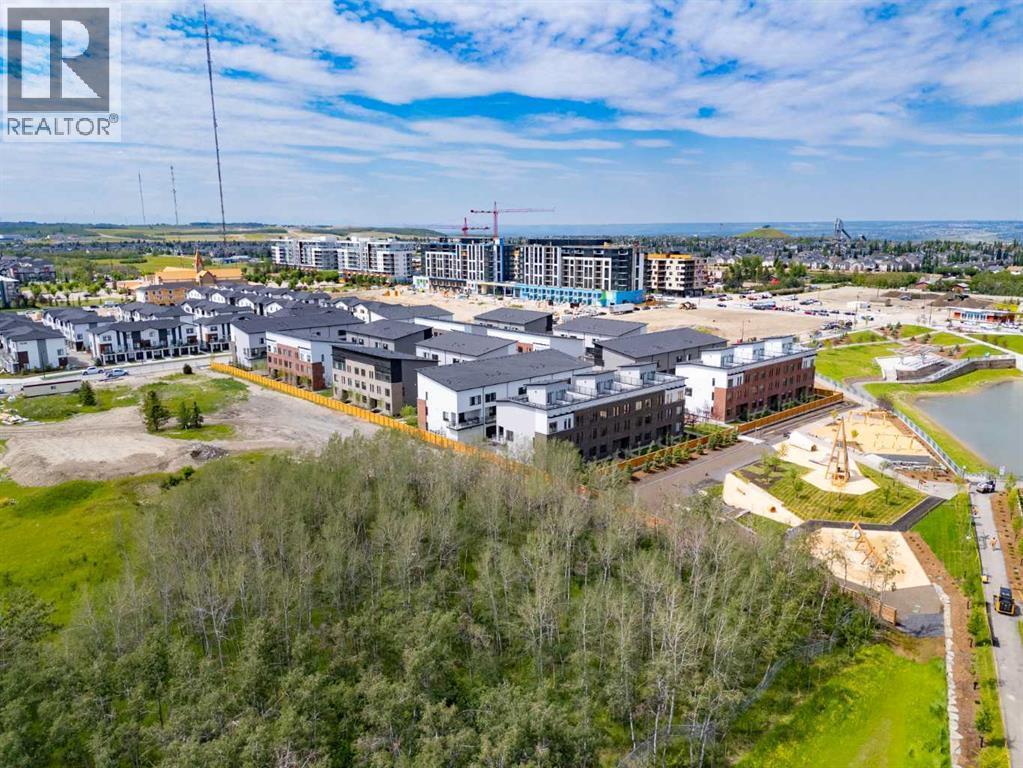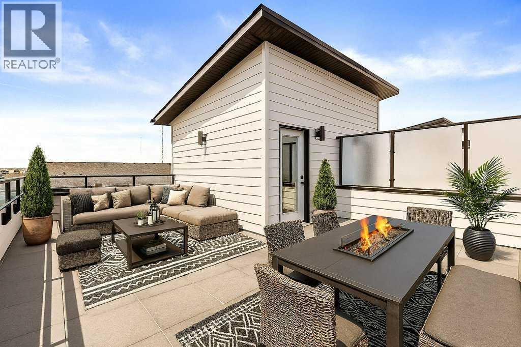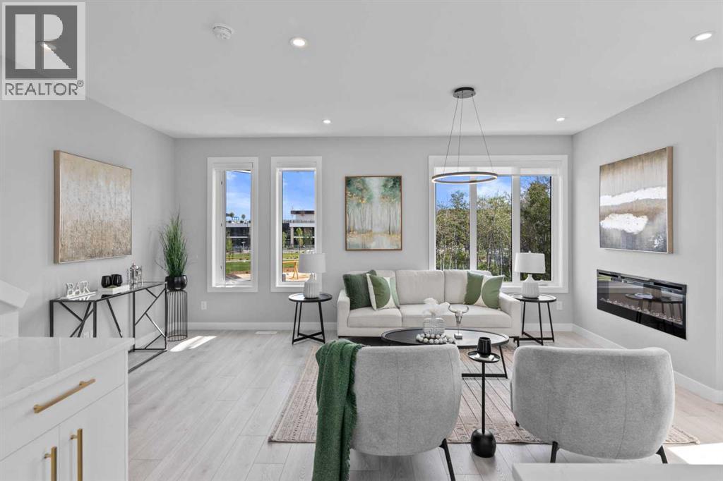 Welcome to #501 in the District Townhomes complex in West Springs, Calgary. This executive end-unit townhome. offers upscale living with premium finishes and exceptional outdoor space. The open-concept main floor is filled with natural light from the southwest-facing balcony and features wide-plank flooring, lofty ceilings, and a chef-style kitchen with full-height cabinetry, quartz countertops, gas range, built-in microwave, refrigerator, and a large island with breakfast bar. The spacious dining area opens to the balcony, while the living room is anchored by a sleek 50" electric fireplace. Upstairs, you'll find two large bedrooms, each with walk-in closets and private ensuite baths, plus convenient upper-floor laundry. The entry-level flex room—perfect for a home office or guest bedroom—is accessible from both the front entrance and the heated double garage. One of the few units in the development to include a private rooftop patio, offering 270° views, including the mountains ...ideal for entertaining or enjoying sunset evenings. Located in a quiet, private setting, this townhome combines modern design with low-maintenance luxury living. Roughed-in for security, vacuflo, air conditioning and home networking. West District is a dynamic and trendy neighbourhood that offers a rich shopping and dining experience. Enjoy local shops, restaurants, grocery, fitness, and medical services. Featuring a focus on pedestrians, the main streets highlight twenty foot wide sidewalks complete with integrated walkway and bike paths. In the heart of West District is the central Radio Park featuring a recreation area with a basketball court, skatepark, amazing new playground, ice skating in the winter, summertime farmer’s marekts and events, live concerts and festivals at the outdoor amphitheatre and much more. Located just 15 minutes from downtown Calgary, 5 minutes from top public and private schools, and 45 minutes to Canmore, (id:6769