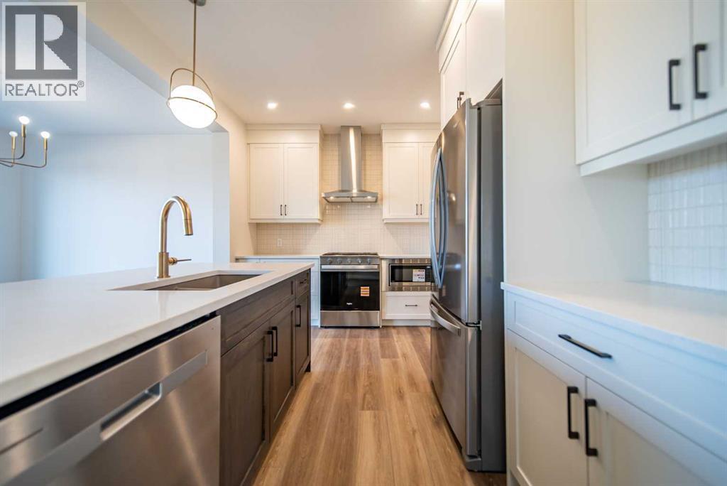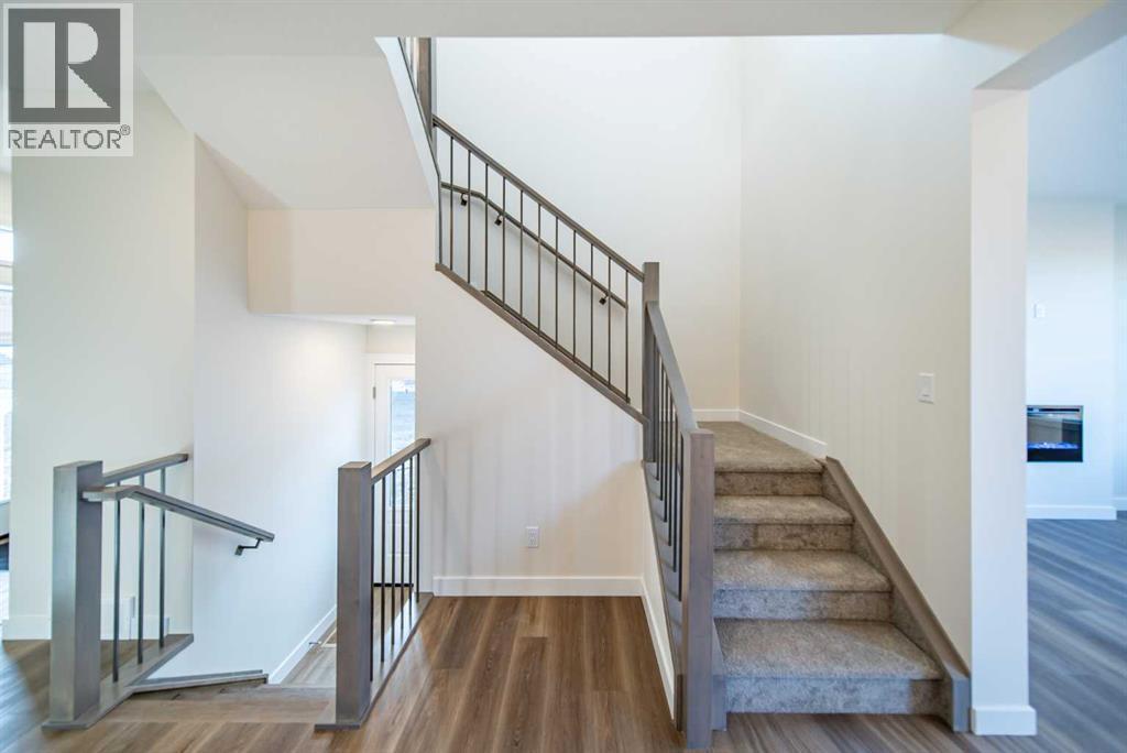This stunning, brand-new home by award-winning Brookfield Residential is officially move-in ready and located in the highly sought-after community of Chinook Gate in Airdrie. Thoughtfully designed, this Rundle 24 model offers exceptional living with two spacious living areas, 3 bedrooms, 2.5 bathrooms, and an undeveloped basement with ample room for a future rec area, bedroom, and bathroom (with rough-ins + side entrance already in place). At the heart of the home sits a chef-inspired kitchen featuring a built-in oven range hood and microwave, and a slide-in gas range. A generous walkthrough pantry seamlessly connects the kitchen to the mudroom and the double attached garage, enhancing everyday convenience. Open to both the dining area and main living space, this kitchen is designed for effortless flow -ideal for family living and entertaining alike. A wall of west-facing windows along the back of the home fills the main floor with natural light, while the dining area’s patio doors provide direct access to the backyard. A cozy electric fireplace adds warmth and comfort to the living room, creating the perfect atmosphere for winter evenings. Beautiful natural wood railings with iron spindles lead to the upper level, where a central bonus room separates the luxurious primary suite from the secondary bedrooms, ensuring both privacy and functionality. The spacious primary bedroom boasts a spa-inspired 5-piece ensuite complete with dual sinks, a soaker tub, a walk-in shower, and an impressive walk-in closet. Two additional well-sized bedrooms, a full bathroom, a large linen closet, and a dedicated laundry room complete the upper floor. The basement, offering nearly 800 sq. ft., is a blank canvas ready for your personal vision - whether that’s a home theatre, gym, additional bedrooms, or all of the above and the bathroom rough-ins are already in place. Situated on a bright and sunny lot spanning nearly 4,000 ft2 in size with ideal west backyard exposure, this is the perfe ct home both inside and out! With both Builder Warranty and Alberta New Home Warranty, you can purchase with confidence. Fully finished, beautifully designed, and move-in ready, this exceptional home in Chinook Gate is perfect for a growing family looking for comfort, style, and a vibrant community. (id:6769