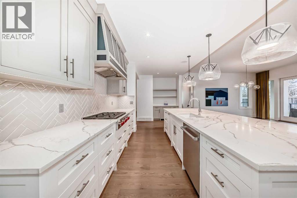 Welcome to this exquisite custom Maillot home, nestled in coveted upper Elbow Park, just steps from the expansive River Park pathway and William Reid French Immersion School. With over 5,000 sq.ft. of beautifully designed living space, this 6-bedroom, 6-bathroom home offers the perfect balance of modern elegance and family functionality.Upon entry, you’ll be greeted by an open, airy floor plan featuring 10’ ceilings, elegant light fixtures, and polished chrome details. The chef-inspired kitchen, equipped with top-of-the-line Wolf and Sub-Zero appliances, is the heart of the home. The spacious great room, with its cozy gas fireplace, and adjoining dining area make this space ideal for both relaxed family living and sophisticated entertaining.A large mudroom and walk-through pantry lead directly to the kitchen, making meal prep a breeze. The main level also includes a convenient den, perfect for a home office or dining room.Upstairs, the second level boasts 4 generously sized bedrooms, each with ample closet space, along with a cozy sitting area and a full laundry room. The opulent master suite features a luxurious 5-piece ensuite, complete with a steam shower and in floor heating for ultimate relaxation.The lower level is designed for fun and relaxation, with radiant in-floor heating, a large family room, full bar, private powder room, and 2 additional bedrooms that share a Jack & Jill bath.Outside, the west-facing backyard is fully landscaped and features a covered deck with a motorized awning, offering the perfect space to unwind. The oversized triple garage is heated, with an EV charger and ample storage space.Additional highlights of this home include double air conditioning units, 8” white oak engineered hardwood flooring, a Hans Grohe/Grohe/Brizo plumbing package, and triple-glazed windows throughout.With its prime location, elegant finishes, and family-friendly design, this home is truly a must-see. (id:6769