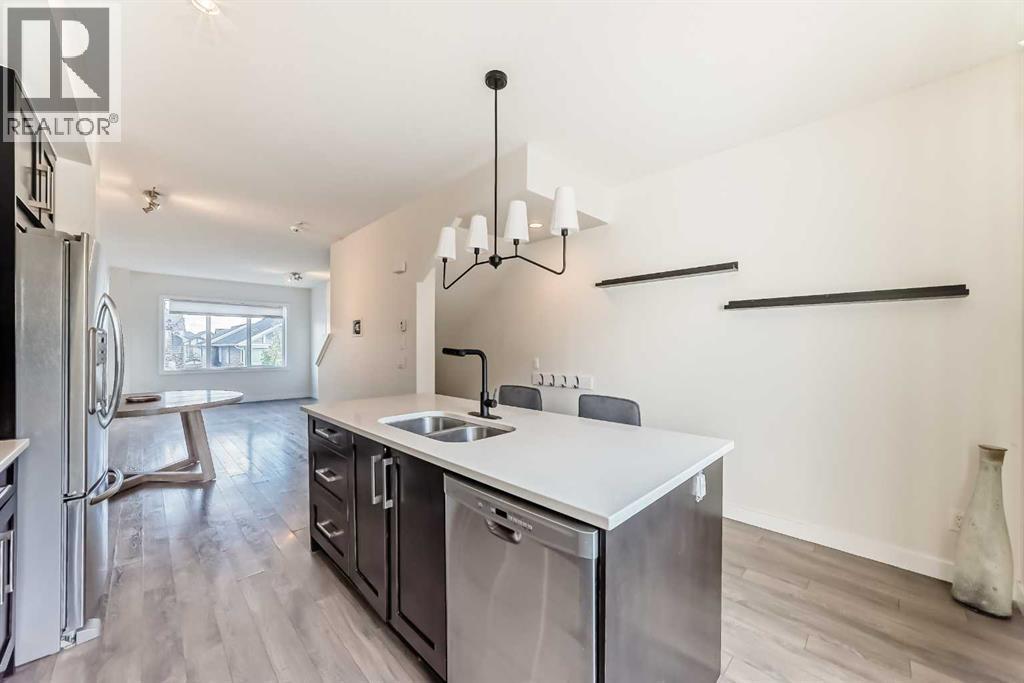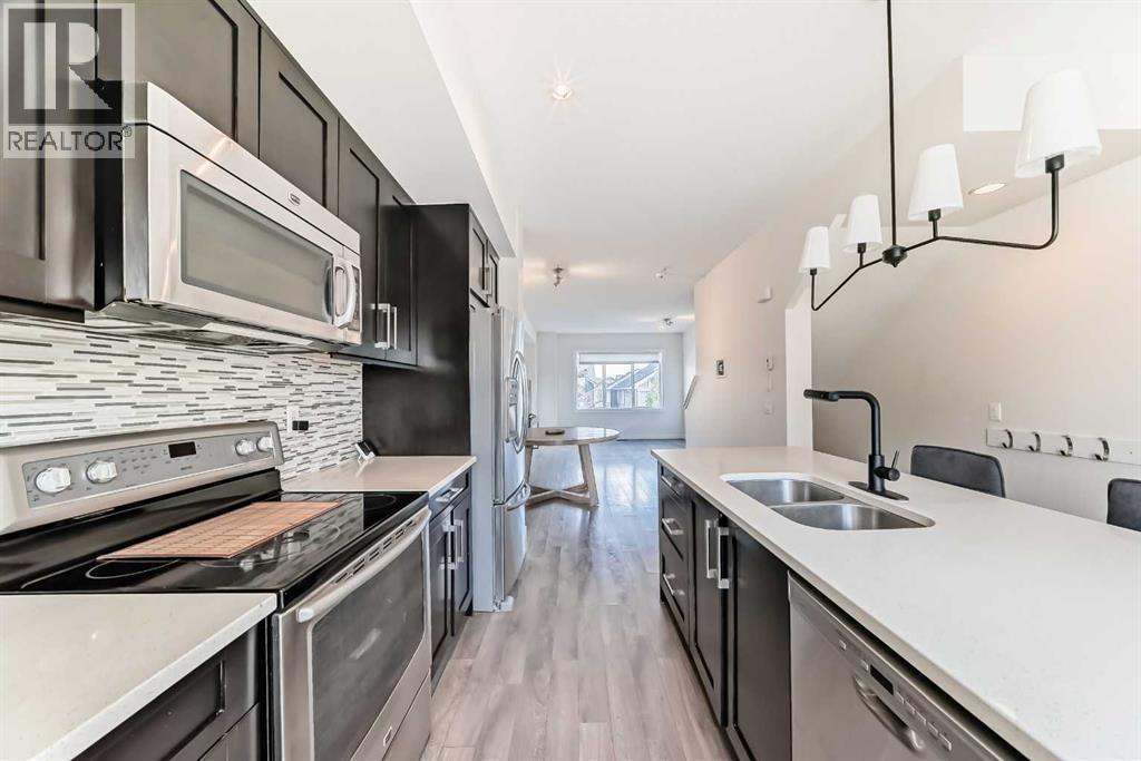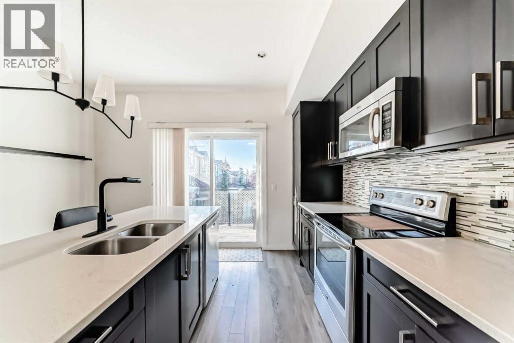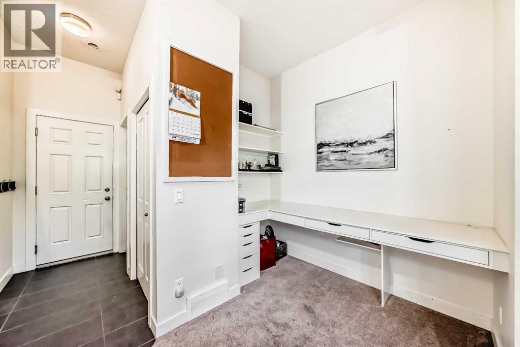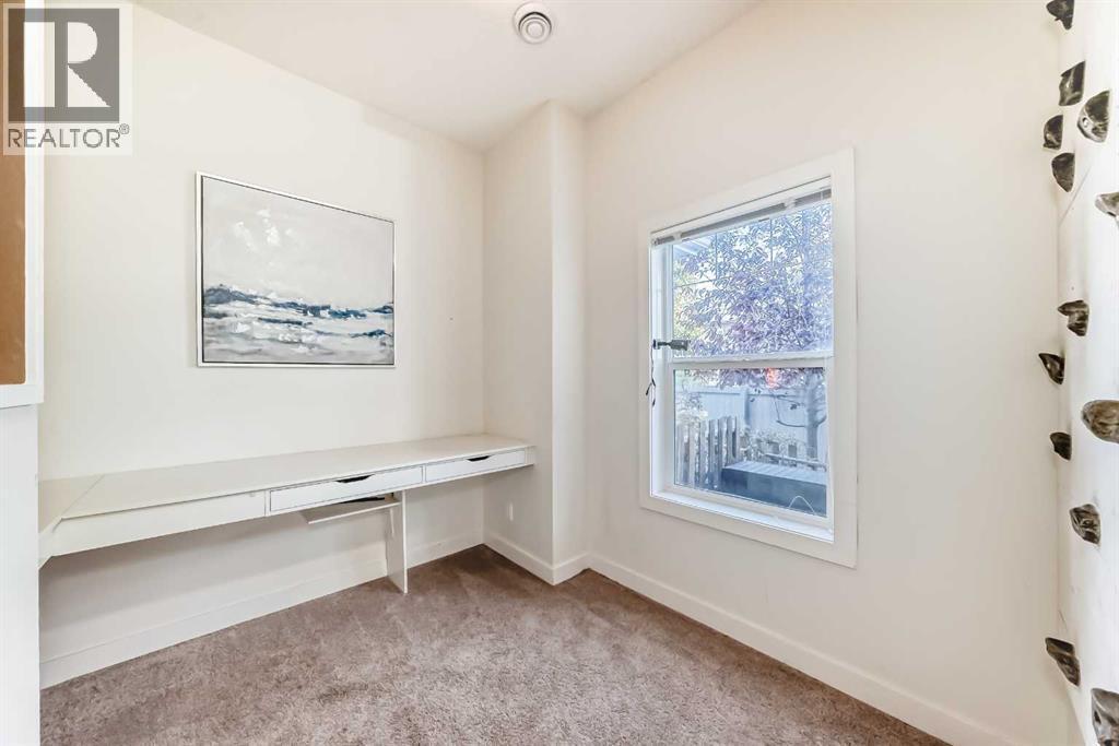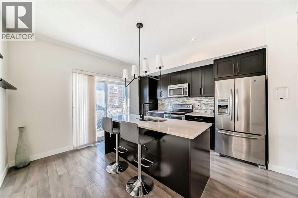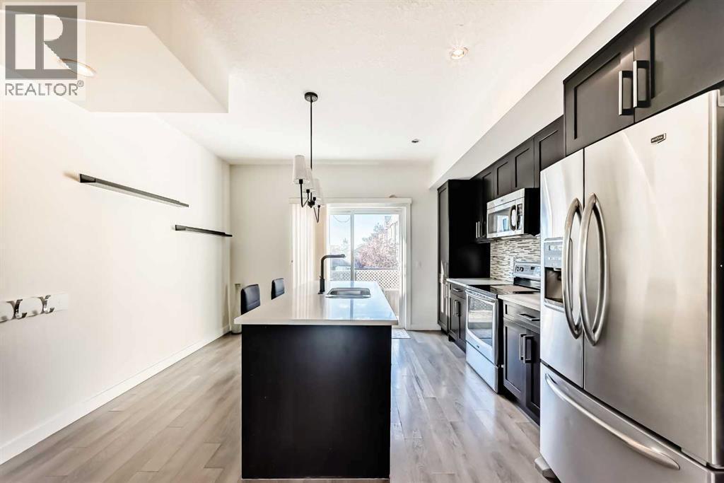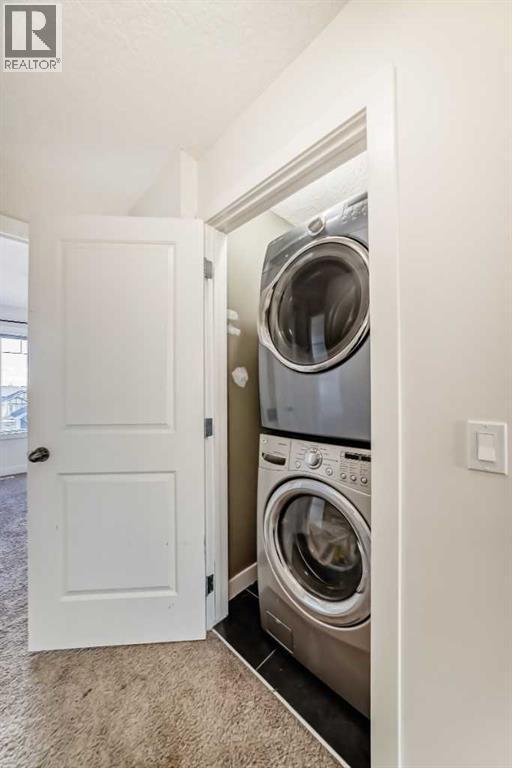 The ground floor entrance near garage leads to fabulous office workspace with built in desk and shelving. Entrance foyer with large closet and access to 2 pc bath, as well as inside entrance to garage where you will find the furnace/mechanical room. Carpeted stairs lead up to a beautiful open, spacious full of natural light main living area. There is a beautiful accent wall in dining and living room plus almost full width windows which floods the room with natural light. Kitchen features lots of rich dark natural wood cabinetry which highlights the gorgeous white quartz countertops and island. Gleaming stainless steel appliances complete your dream kitchen. Sliding patio doors lead to a balcony with enough room for the whole family. The upper level has 3 spacious bedrooms including a primary bedroom with a 3 piece ensuite and 2 double clothes closets. The upper level laundry room with stackable washer/dryer is a real step saver. Front yard is a fenced and private mini oasis with low maintenance landscaping with trees and bushes providing almost total privacy. Call your favourite Realtor to view this great family home. (id:6769