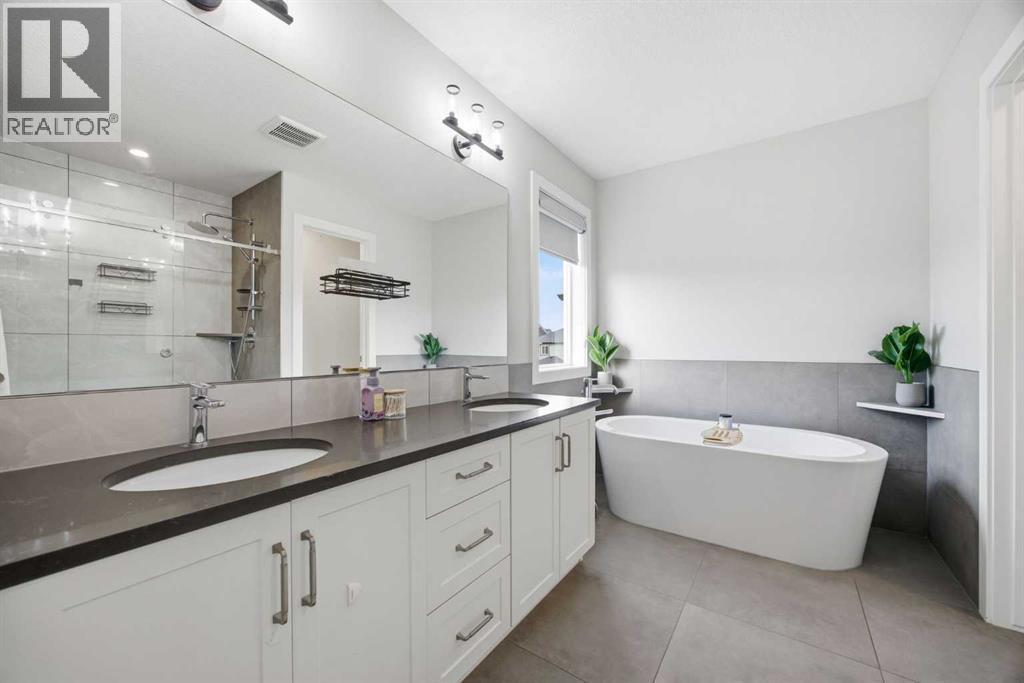 Welcome home to a place where craftsmanship, comfort, and family connection come together. Every detail in this thoughtfully designed home has been carefully curated to blend style and function. The main floor impresses with 10’ ceilings, 9’ doors, and durable LVP flooring throughout. The upgraded kitchen showcases timeless two-tone cabinetry extending to the ceiling, white quartz counters, a granite sink, and a convenient walk-through pantry, gas range hook up if you prefer a gas stove option. Overlooking a spacious dining area and an inviting family room with a beautiful stone-surround fireplace, this open design is ideal for gatherings both large and small. A wide 4-foot staircase leads to the upper level, where vaulted ceilings highlight a grand bonus room—perfect for family movie nights or quiet evenings in. The primary suite is a true retreat featuring double sinks, a tiled shower, a relaxing soaker tub, and a generous walk-in closet. The upper-level laundry room adds everyday convenience, 2 generously sized bedrooms and a main bath with oversized counter with separated shower. 9’ ceilings on upper and basement levels, knockdown ceilings throughout, and the comfort of air conditioning, this home offers a bright, open, and elevated feel. The newly finished basement adds flexibility with waterproof laminate flooring, an open area easily converts into a bedroom with the addition of barn doors if you choose, basement is complete with a 4-piece bath with dual access from both the room and main area. Step outside to enjoy a poured concrete patio, deck, and storage shed. The extended driveway and oversized garage provide ample space and functionality. A home where timeless design, quality finishes, and family living come beautifully together. Building Envelope Warranty until April 30, 2026 and Structural Warranty until April 30, 2031. (id:6769