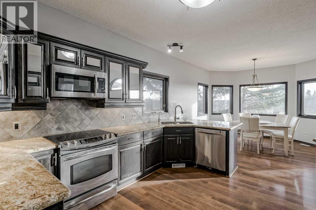 **Get excited! This fully finished bungalow delivers almost 2800 sqft of developed living space, style, LAKE PRIVILEGES, and the perfect foundation to make it truly your own! From the moment you step inside, the soaring 12' ceilings, rich dark-stained cabinetry and trim, and stylish laminate flooring create an impressive and welcoming atmosphere. **The bright, open kitchen is designed for both cooking and gathering, featuring abundant cabinetry, granite counters, stainless steel appliances, a handy eating bar, and a spacious dining area that flows right out to the deck (12' x 21'). The primary bedroom also offers direct deck access—your own private retreat—with a walk-in closet and a relaxing ensuite complete with corner jetted tub, separate shower, vanity, and makeup desk. A main floor office adds the perfect workspace, flex room OR SECOND BEDROOM UP! **The walkout basement delivers even more living space, boasting laminate flooring throughout, a cozy family room with a second fireplace, a huge recreation room for entertaining, two additional bedrooms, a full bathroom, and plenty of storage. **Outside, enjoy a beautifully landscaped backyard featuring a patio, shed, RV parking off the back lane, and the added bonus of a double attached front garage. Plus, enjoy peace of mind knowing all Poly-B plumbing has been recently replaced. **This home truly has it all - style, space, upgrades, and an amazing location, ready for your personal touch!** (id:6769