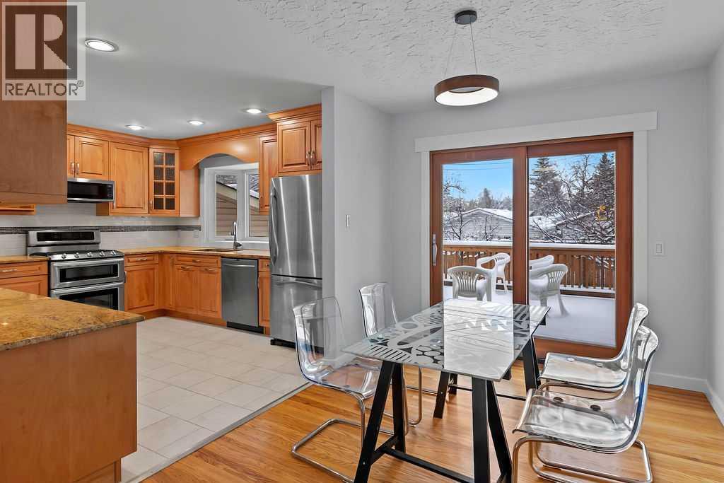 Priced to sell in North Glenmore Park just steps to Earl Grey Golf and Glenmore Park. This NEW listing won't last the weekend! Nestled on a serene, tree lined street on the Lakeview side of Glenmore Trail. This hidden gem is a beautifully maintained 4-level split offering 4 bedrooms, 2 bathrooms, and over 2,450 sq ft of total living space. Built in 1961, the home blends mid-century charm with modern updates. Mature trees, including a weeping Birch and large Spruce tree frame the property alongside interlocking stone walkways and front drive. Inside, the bright living and dining areas feature a corner gas fireplace, bay window, gleaming hardwood floors and patio doors to the west-facing deck. The updated kitchen impresses with stainless-steel appliances, a gas stove with double oven, microwave hood fan, granite countertops, tile flooring, and ceiling-height custom cabinetry. Upstairs are three comfortable bedrooms and an updated main bath. The walkout third level offers a fourth bedroom, a cozy family room, a 3-piece bath and a spacious mud room with lockers, leading to the west facing, fenced and landscaped back yard. Plus, you get an insulated & heated double detached garage. An upper deck with a motorized awning, a lower patio with BBQ area, shed, perennial gardens, and a grassy play space complete this backyard oasis. The finished lower level adds abundant storage, a flex area, laundry, and a convenient crawl space. Steps from the Glenmore Reservoir, canoe and rowing clubs, Earl Grey & Lakeview Golf Courses, top-rated schools, and extensive parks and pathways, this home combines charm, comfort, and an unbeatable location in one of Calgary’s most desirable neighborhoods. Quick commute to Downtown just 15 minutes and Ring Road around the corner. (id:6769