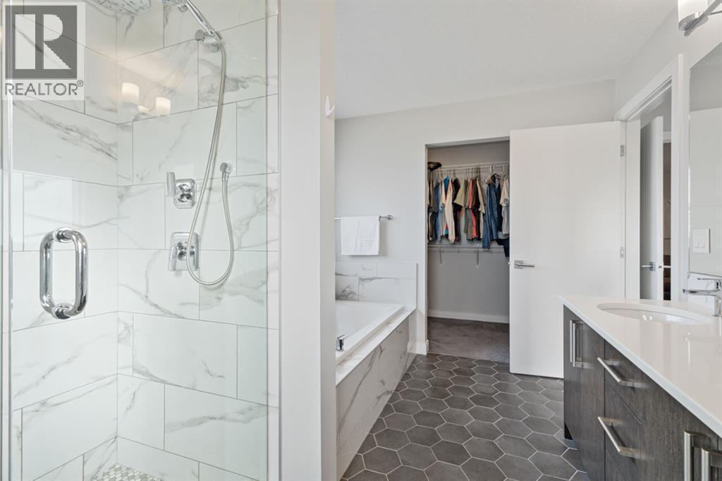 Discover the charm of valley living in Cranston’s highly sought after Riverstone community. With direct access to Fish Creek Park, the Bow River, endless walking paths, and tranquil surroundings, this elevated lifestyle is truly unique to Calgary. Backing onto a green space and pathway with quick access to a park and playground, this fully developed family home is designed for comfort and connection. Step into the welcoming front foyer with high ceilings and abundant natural light. The main level features durable vinyl plank flooring in neutral tones, creating a modern and inviting feel throughout. The kitchen is a showstopper, with a designer tile backsplash, statement hood fan, gas cooktop, built in oven and microwave, two toned quartz countertops, and upgraded cabinetry. A spacious walkthrough pantry with room for a second fridge or freezer connects to the mudroom, offering practical access to the garage and a conveniently located powder room. Upstairs, the primary suite is a private retreat complete with a lovely ensuite featuring a soaker tub, dual sinks, a walk in tiled shower, and a generous walk in closet. Two additional bedrooms, a full bathroom, upper laundry, and a bonus room round out the second floor. The fully finished basement extends the living space with a large rec room, fourth bedroom, full bathroom, and plenty of storage. Central A/C ensures year round comfort. Enjoy the outdoors in your large backyard with a spacious deck, large storage shed and backing directly onto a pathway that leads to the nearby playground. The community is designed to take advantage of the natural topography: ridges, escarpments, river valley- offering views and green space throughout. Check out the virtual tour! (id:6769