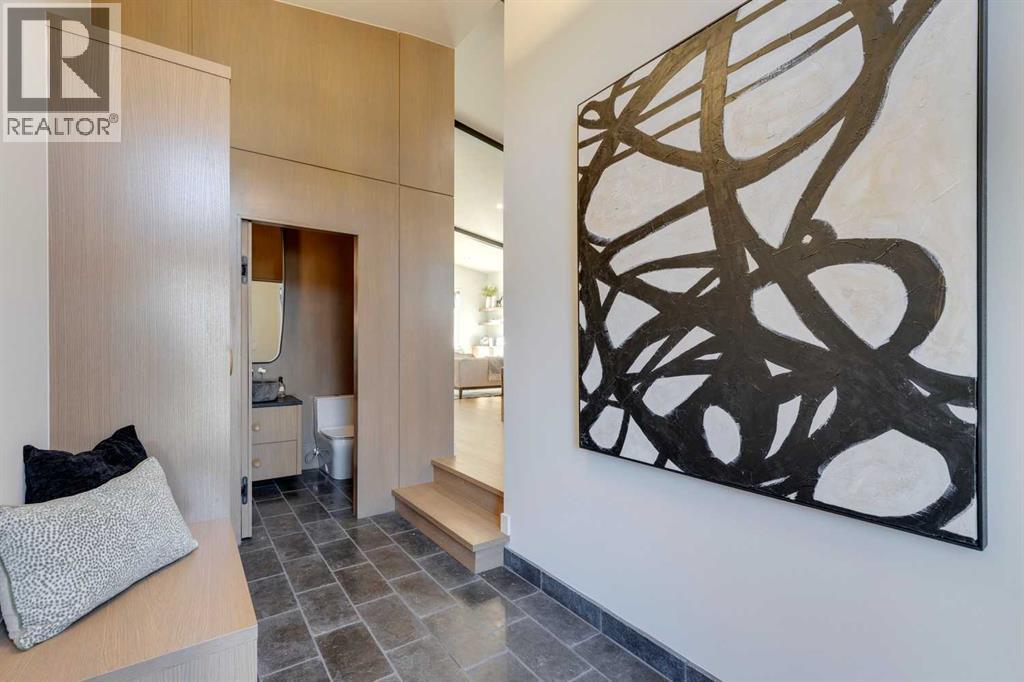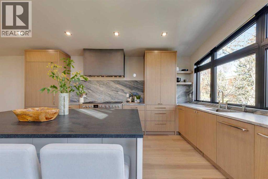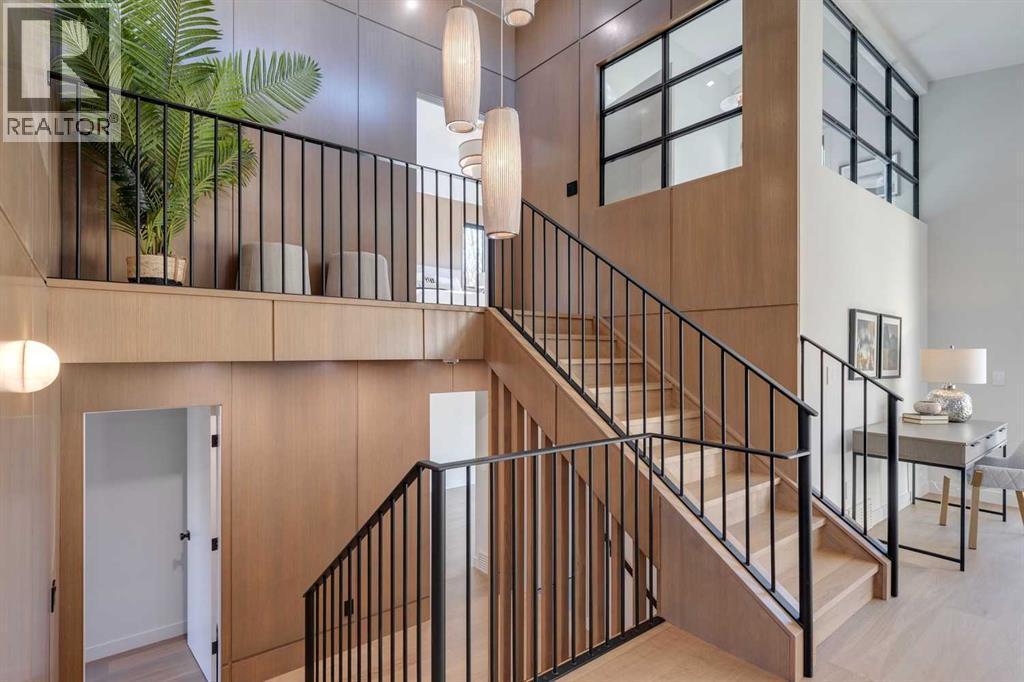 Welcome to 3423 23 Street NW, a mid century modern luxury residence, located in the highly desirable community of Charleswood. This newly built home offers over 3,400 sq. ft. of thoughtfully designed living space, showcasing an impressive blend of architectural sophistication, premium natural materials and state-of-the-art smart home features. The exterior makes an immediate statement with real brick, NewTech wood composite cladding, timber soffits and smooth stucco, creating a refined and low-maintenance façade that complements the mature, tree-lined street.Step inside to a foyer featuring white oak wall paneling and Limestone Bluestone pavers, setting the tone for the elegance carried throughout the home. The main level centers around a stunning chef-inspired kitchen equipped with a 48” Fulgor range, hoodfan & dishwasher, 36" Thermador fridge, all top of the line appliances. The perimeter counters are Temptation Quartzite w/leather finish, the island countertop - absolute Black granite w/brushed finish create a dramatic focal point, while custom white oak and painted cabinetry offer generous storage. The adjacent living and dining areas provide a seamless open-concept layout, highlighted by a gas fireplace with a Concrete Quartz surround, custom steel detailing, white oak millwork and expansive row of patio doors & windows that bathe the space in natural light.The upper level is anchored by an exceptional primary suite designed as a true retreat. The ensuite features striking “Fusion Wow” Quartzite, micro cement walls and ceilings in the shower, Riobel fixtures, a rain shower, freestanding tub and heated porcelain floors. A home office is adjacent to the primary bedroom. Two additional spacious bedrooms share a stylish Jack and Jill bathroom with Concrete Quartz finishes and glazed porcelain tile. A beautifully designed laundry room with LG large-capacity appliances, stone counters and built-in drainage adds convenience and functionality.The fully developed lo wer level offers a versatile media & recreation area with custom oak paneling, a fourth bathroom with heated floors and ample storage. This space is ideal for family living or entertaining guests. Comfort and convenience are elevated with integrated smart home technology, including Lutron lighting control, SONOS built-in speakers across five zones, HIK vision exterior security cameras, Wi-Fi controlled heated floors, multi-zoned furnace and central air conditioning system for year-round climate control.A heated double garage with hydronic in-floor heating and EV charging r-in provides both practicality and modern convenience. Every element of this home reflects careful craftsmanship, timeless design and luxurious functionality. Located on a quiet street just moments from parks, schools, the University of Calgary and urban amenities, this extraordinary residence delivers the perfect combination of elegance, innovation and everyday comfort in one of Calgary’s most sought-after neighbourhoods. (id:6769