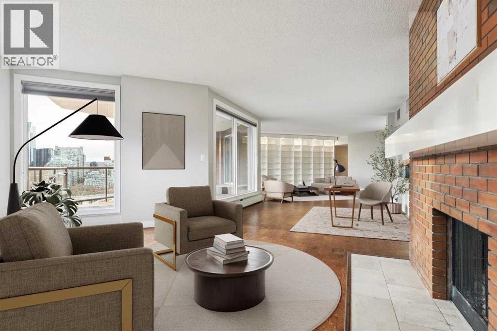 Welcome to Discovery Hill, an exclusive luxury condominium residence perfectly perched in the prestigious community of Crescent Heights. Overlooking the river valley with unobstructed, panoramic views of the downtown skyline, this remarkable home presents a rare opportunity to experience elevated urban living at its finest.Spanning an impressive 2,294 sq ft of single-level living space, this residence blends refined style with exceptional scale. Flooded with natural light from oversized floor-to-ceiling windows, the open-concept design frames the cityscape from nearly every room, creating a breathtaking backdrop day and night.At the heart of the home is its stunning living and dining area—an expansive, elegant setting ideal for both grand entertaining and intimate gatherings. A wood-burning fireplace infuses warmth and sophistication, while the seamless flow highlights the dramatic skyline beyond.The updated chef’s kitchen is beautifully appointed with a large central stone island, ceiling-height cabinetry, newer appliances, and a full walk-in pantry. Designed for both effortless cooking and everyday connection, it offers exceptional functionality and style.Retreat to the impressive primary suite, a serene sanctuary featuring a luxury 5-piece spa-inspired ensuite, generous walk-in closet, and soothing wood-burning fireplace. Step onto your private balcony to enjoy tranquil mornings or unwind with sweeping skyline views—a truly indulgent escape. Two additional spacious bedrooms complete the home, including one enhanced with a versatile Murphy wall bed. A dedicated laundry room with sink and additional in-unit storage add everyday convenience. Cork flooring throughout the home provides comfort, warmth, and durability.Two underground parking stalls and premium amenities elevate the Discovery Hill lifestyle even further, featuring: A fully equipped fitness centre, a relaxing sauna, a stylish and spacious party room, perfect for hosting gatherings and also bike storage for added convenience and security. Set just moments from river pathways, Prince’s Island Park, vibrant Bridgeland cafés and restaurants, shopping, transit, and downtown, Discovery Hill offers unparalleled access with the serenity of living above it all.A home of rare scale, timeless sophistication, and captivating views—your elevated retreat in Crescent Heights awaits. (id:6769
