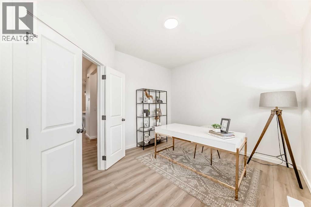 STARLING HAS BEEN QUIETLY BUILDING A REPUTATION—for calm streets, thoughtful design, and a nature-forward rhythm that buyers notice the moment they arrive. This home leans right into that energy. The WIDE FRONT PORCH sets a grounded first impression, and inside, natural light moves through the main floor with the kind of ease that makes the whole space feel instantly welcoming. Warm LVP, 9' CEILINGS, and a clean, modern palette work together to create that subtle “this feels right” moment you feel as soon as you walk in.And then there’s the FLEX ROOM.Framed with FRENCH DOORS and positioned with just enough separation from the main living spaces, it’s the RARE MAIN-FLOOR ROOM that feels truly intentional—not a leftover corner repurposed as an “office,” but a space with presence. It becomes whatever your life needs most: a polished workspace, a creative zone, a reading retreat, or simply a quiet room with a door when the rest of the house is in motion.The kitchen continues that thoughtful rhythm: QUARTZ COUNTERS, 42" UPPERS that keep the lines crisp, a CHIMNEY HOOD FAN that anchors the design, and storage placed exactly where real routines land. The SEPARATE SIDE ENTRY adds smart flexibility—practical now, and perfectly positioned for whatever plans come later.Upstairs, the layout stays calm and well-proportioned. Bedrooms sit where they should, offering both connection and privacy, and the upper laundry room keeps daily life where it actually happens. The primary ensuite is the unexpected luxury in this footprint: A SOAKER TUB, A TILE-AND-GLASS SHOWER, AND A DUAL-SINK VANITY—a trio rarely found together in homes this size, and one that quietly transforms both mornings and evenings.Outside, the REVERSE-PIE LOT is a meaningful advantage. It gives you a LARGER FRONT YARD AND A GENEROUS SIDE YARD, creating more breathing room, more natural light, and a sense of separation that’s uncommon in new communities. The off-street parking pad off the paved lane provides easy parking right at home—no street shuffle required. Add the REAR DECK with its BBQ gas line, front sod already in place, and 200-amp electrical service, and the long-term livability becomes clear.Set within steps of Starling’s PATHWAY NETWORK and nature-first streetscape, this is a home that blends light, flow, and flexibility with quiet confidence.BOOK A SHOWING and come see how naturally it fits the way you live. • PLEASE NOTE: Kitchen appliances are included, and will be installed prior to possession. (id:6769