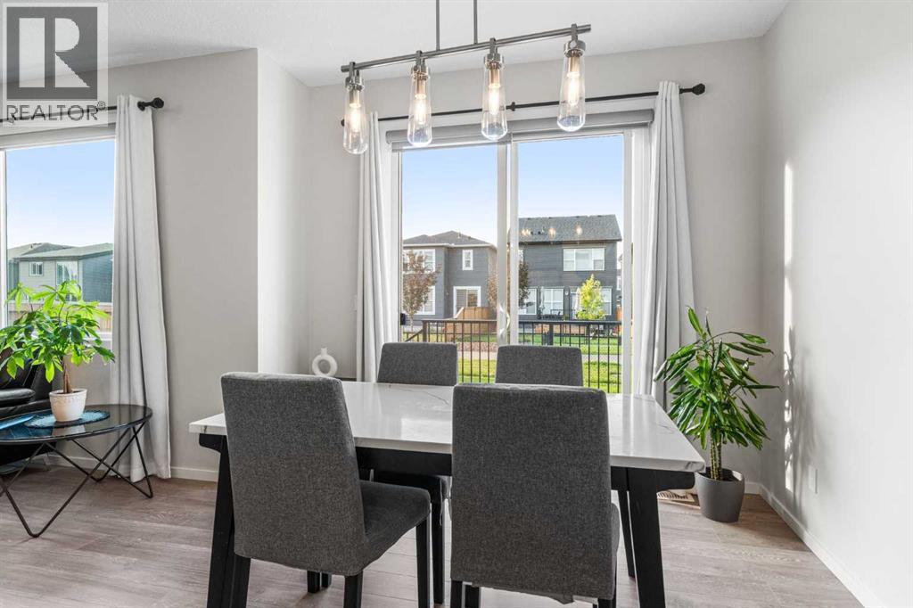 FORMER SHOWHOME | GEMSTONE LIGHTS | TRIPLE PANE WINDOWS | OVERSIZED GARAGE | BUILT IN SPEAKERS | CENTRAL A/C. Welcome to this exceptional former showhome in the vibrant community of BELMONT, where THOUGHTFUL DESIGN meets EVERYDAY LUXURY. From the moment you arrive, this home stands out with its CUSTOM GEMSTONE LIGHTING and OVERSIZED GARAGE, perfect for larger vehicles or extra storage. Step inside to discover a BRIGHT OPEN CONCEPT MAIN FLOOR with WIDE PLANK VINYL FLOORING, HIGH 9 FT CEILINGS, an inviting LIVING AREA WITH GAS FIREPLACE, and a CHEF’S KITCHEN equipped with QUARTZ COUNTERTOPS, STAINLESS STEEL APPLIANCES, a WALK IN PANTRY, and sleek CABINETRY. A SKYLIGHT ABOVE floods the space with natural light, enhancing the airy feel. Upstairs, you will find a SPACIOUS BONUS ROOM WITH HIGH CEILINGS, a serene PRIMARY SUITE WITH SPA INSPIRED 5 PIECE ENSUITE and WALK IN CLOSET, plus TWO MORE GENEROUS BEDROOMS and a conveniently located LAUNDRY ROOM. TRIPLE PANE WINDOWS throughout provide ENERGY EFFICIENCY and a WHISPER QUIET INTERIOR. The entire home is wired for sound with IN CEILING SPEAKERS and a HIGH END AMPLIFIER SYSTEM, ideal for entertaining or enjoying your favourite playlists in style. Stay cool in summer with CENTRAL AIR CONDITIONING and enjoy the MODERN ELEGANCE of every corner in this professionally designed space. The BASEMENT offers a blank canvas, ready for your custom vision with LARGE WINDOWS and PLUMBING ROUGH INS. This is the perfect blend of SHOWHOME QUALITY FINISHES and REAL WORLD FUNCTIONALITY in one of Calgary’s most desirable communities. (id:6769