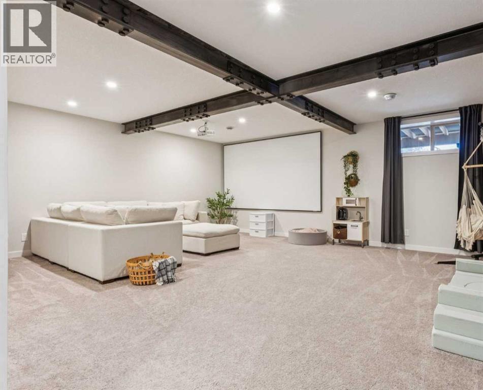Welcome to this stunning smart-enabled home in the prestigious community of Riviera, where timeless style blends seamlessly with modern convenience.A bright OPEN-TO-BELOW foyer welcomes you with expansive windows and beautiful EXPOSED CEILING BEAMS that highlight the home’s architectural charm. The main floor offers a dedicated OFFICE, a stylish powder room, and added ease with the NEST SMART SYSTEM. The gourmet kitchen serves as the centrepiece, showcasing UPGRADED APPLIANCES, a gas cooktop with chimney hood fan, an oversized island, and STRIKING FEATURE WALLS. The adjoining living room is warm and inviting with its GAS FIREPLACE and airy, light-toned finishes.Upstairs, a bright bonus room with CUSTOM FEATURE WALLS provides flexible living space. The west-facing kids’ bedrooms offer cozy SHIPLAP DETAILS, while the primary bedroom is a luxurious haven—complete with its own FIREPLACE, TINTED WINDOWS, AUTOMATIC BLINDS, and a spa-like 5-PIECE ENSUITE with soaker tub, tiled shower, and a WALK-THROUGH CLOSET with BARN DOOR and CUSTOM ORGANIZERS.The FULLY DEVELOPED BASEMENT is designed for hosting and relaxation, featuring 9-ft CEILINGS, a WET BAR with BAR FRIDGE, a spacious THEATRE ROOM enhanced by UNIQUE BEAMS, and ABUNDANT STORAGE.Step into your west-facing backyard, PROFESSIONALLY LANDSCAPED with an ELEVATED COMPOSITE DECK and GLASS RAILINGS, PERGOLA, STONE GAS FIRE PIT, and mature trees lining the PIE-SHAPED LOT for enhanced privacy—perfect for relaxing or entertaining.NOTABLE FEATURES: • Multiple custom feature walls• Brand-new air conditioning• Automatic blinds & smart-home integration• Engineered hardwood flooring• West-facing, fully landscaped yardExperience the best of Riviera living—surrounded by natural beauty, river pathways, and a true family-friendly environment. (id:6769