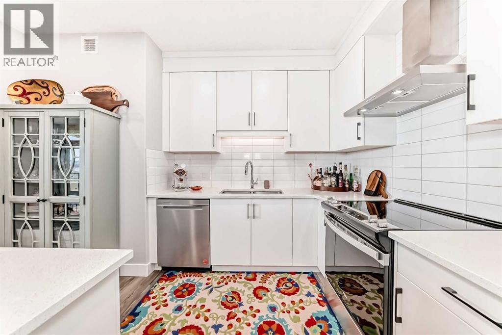 OPEN HOUSE: SUNDAY NOVEMBER 9 FROM 1-3PM! Welcome to 85th & Park; where modern design meets elevated condo living in the sought-after community of Aspen Woods/Springbank Hill. Built in 2023, this beautifully upgraded 2 bedroom, 2 bathroom condo combines stylish finishes with everyday convenience. Step into a bright, open layout featuring quartz countertops, a large central island, and premium stainless-steel appliances with a chimney hood fan. Durable laminate flooring flows throughout the main living spaces, while plush carpet in the bedrooms adds comfort. The bathrooms are equally impressive — one with a deep soaker tub and full tile surround, the other with a spacious glass-enclosed shower. Enjoy the ease of in-suite laundry, a sunny southwest-facing balcony with gas hookup, and an enviable location right across from the elevator with no neighbours across the hall. This unit also comes with titled underground parking and a private storage space directly behind your stall, plus a separate storage locker conveniently located down the hall. Set in a prime SW location, you’re just minutes from shopping, schools, parks, pathways, and golf courses, making this the perfect blend of comfort and lifestyle. Don’t miss your chance, book your private showing today! (id:6769