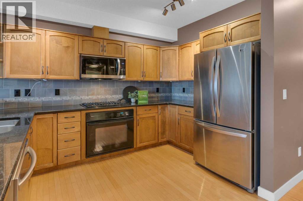 New price brings incredible value in this sought-after Parkdale location! Welcome to The Hemisphere on the Bow, a quiet, pet friendly, 28-unit building perfectly located just steps from the Bow River and the river pathway system. This top-floor, two-storey condo offers 1 bedroom plus loft, 3 full bathrooms, a very large in-suite storage room, titled underground parking and a storage locker. This well cared for condo features an open concept main level with a spacious kitchen with granite countertops, wood cabinetry, raised breakfast bar & stainless steel appliances. The kitchen opens onto the dining room, as well as onto the living room with vaulted ceilings, large windows, a gas fireplace & the patio door out to the roomy deck with gas hook up for your bbq. The main-floor primary bedroom is a standout, featuring vaulted ceilings, oversized windows, a walk-in closet, and an ensuite with a jetted tub, separate shower, and extended vanity offering ample counter and storage space. Completing the main level is a second full bathroom, a laundry area with stacked washer and dryer, and a convenient walk-in storage/coat room near the foyer. The upper loft level offers incredible versatility, use it as a bedroom, home office, gym, hobby room, or games area. This level also includes a third full bathroom with shower and a rare 10’ x 10’ storage room. Additional highlights include custom opening and self-closing skylights, a new expansion tank for the in-floor heating system, and a new electric heater in the utility room. One titled underground parking stall and an assigned storage locker, plus plenty of on-street parking for guests outside the building. Enjoy an unbeatable location close to Edworthy Park, coffee shops, restaurants, and shops, with quick access to the Foothills Hospital, Alberta Children’s Hospital, the University of Calgary, and downtown. (id:6769