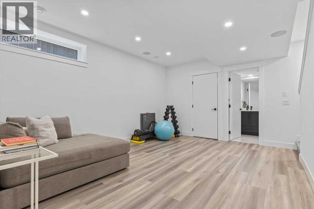 Welcome to this Immaculate and thoughtfully designed town home in the heart of Marda Loop, over 1,700 sq ft of living space, just minutes away from downtown. Features superior party wall system between units. Main floor showcases 11 ft ceiling, open concept layout, vinyl plank flooring, designer built entry unit. The living room is spacious featuring a wall unit, sleek tile, and a Bluetooth enabled electric fireplace. The kitchen is equally impressive, boasting a large island with quartz counter top, ideal for entertaining, ample soft- close cabinetry, stainless steel appliances. The large south facing sliding door brings in rays of sunshine and light through out the day, tastefully covered with Hunter Douglas honeycomb shades and floor to ceiling blackout drapes for privacy professionally installed by Normandeau, overlookimg a fenced, cozy yard leading to a single detached garage.This floor is completed by a spacious guest half bath. Upstairs, the primary bedroom is a true retreat, with vaulted ceilings, double door his and hers closets, large windows with professionally installed electric blackout honeycomb shades. The barn door leads into a spa-like en-suite with heated flooring, double sink vanity, quartz counters, skylight, oversized tiled shower and dual shower heads. The second large bedroom also has it's own en-suite and skylight, plus manual honeycomb shades. The fully finished basement boasts a bright family/ flex room. A third spacious bedroom with a walk-in closet and a full bath. THIS HOME COMES WITH COUNTLESS UPGRADES- A/C, high efficiency furnace, humidifier, thankless hot water on demand, radon extraction sump pump, built-in speaker system, light dimmers in master bedroom, smart thermostat (ecobee), bathroom fan timers, kitchen and master bedroom lights can be manged through smartphone. This exceptional home offers the best of urban living in an ideal location. This is the one you have been waiting for. Book a showing today. (id:6769