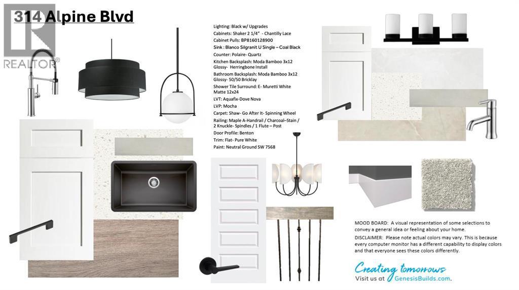 Welcome to this stunning no-condo-fee townhome, scheduled for completion in Summer 2026. The Paisley is thoughtfully designed, this home offers an attached double garage, three bedrooms, 2.5 bathrooms, and an unfinished basement perfect for future development. This property is ideal for those seeking low-maintenance and stylish living. Stepping inside, you are greeted by a chic, designer-inspired colour palette with crisp black-and-white accents. Gorgeous luxury vinyl plank flooring and soaring 9-foot ceilings enhance the bright, open concept living space. A sunlit front living room flows seamlessly into the dining area and contemporary kitchen, creating the ideal setting for both everyday living and effortless entertaining. The kitchen is a chef’s delight, featuring sleek quartz countertops, a stainless steel appliance package, beautiful cabinetry in Chantelle lace, complemented by charcoal hardware and lighting, and a herringbone backsplash. A convenient powder room and additional storage complete the main floor. Upstairs, the spacious primary suite includes a generous walk-in closet and a spa-like ensuite equipped with dual sinks. With laundry located nearby, household chores are a breeze. Two additional bedrooms are great for kids and guests.Additionally, you and your guests will enjoy a rooftop patio, the perfect spot for morning coffee or evening relaxation. A full bathroom serves the secondary bedrooms, making the upper floor both functional and family-friendly. The unfinished basement offers 9-foot ceilings and is well laid out, ready for your future development ideas. Alpine Park is one of the city’s newest and most carefully planned urban communities. Designed around tree-lined streets, walkable pathways, and vibrant gathering spaces, Alpine Park brings together the charm of classic neighbourhood living with modern conveniences. Area size was calculated by applying the RMS to the blueprints provided by the builder. Taxes to be assessed. Kitchen photo is r epresentative of builder finishings. (id:6769