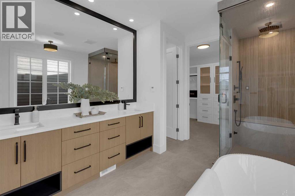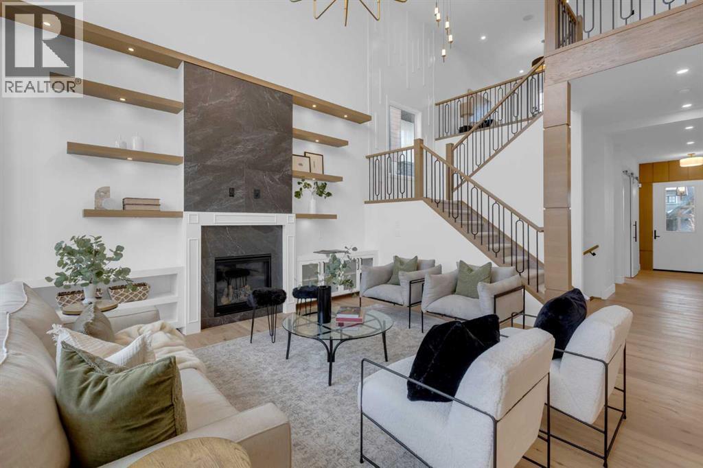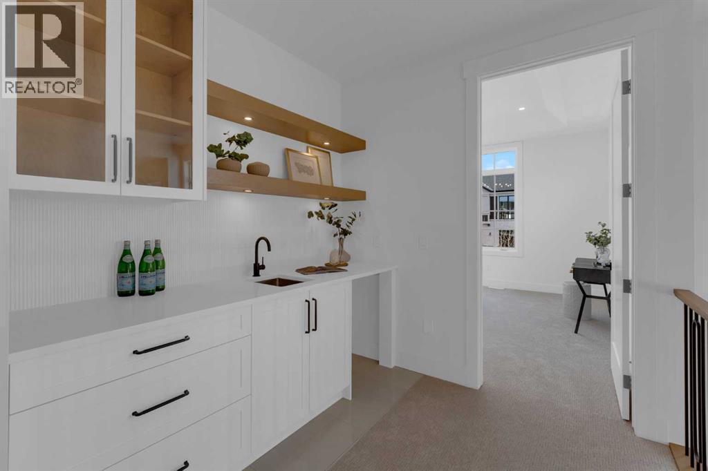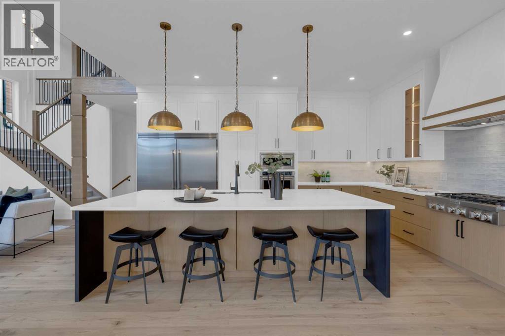 Welcome to this stunning home located in the highly sought-after community of Coopers Crossing! Boasting excellent curb appeal and backing onto a beautiful green space, this home is ideally situated close to schools, shopping, and major roadways.The main floor features 10' ceilings and engineered hardwood throughout, creating a bright and upscale feel. You will find a private front office, a spacious family room with built-in shelving, a cozy fireplace, and an impressive open-to-above design. An elegant dining area that opens onto a large deck with a BBQ gas line—perfect for entertaining. The chef’s kitchen is truly a dream, offering built-in appliances, a large island, quartz countertops, and plenty of cabinetry. A convenient mudroom off the garage and a stylish powder room complete this level.Upstairs, you are welcomed by a spacious bonus room, two secondary bedrooms with built-in shelving, a shared bathroom, and a thoughtfully located upstairs laundry room. A standout feature of this home is the built-in desk space and wet coffee bar in the common area on the second floor—a rare and highly desirable find that adds both character and convenience. The luxurious primary suite showcases a tray ceiling, a spa-inspired ensuite with dual vanities, a standalone tub, a steam shower, and a generous walk-in closet.The fully finished basement provides even more living space, featuring a wet bar, a large recreation room, and an additional flex area that is perfect for a fitness space or games area. You will also find a large bedroom and a full bathroom. Elegant lighting, beautiful woodwork, and large windows throughout the home create a warm, inviting atmosphere and flood the space with natural light. There are also plenty of closets and storage spaces thoughtfully placed throughout the house for added convenience.The oversized triple tandem garage is insulated, finished to paint grade with textured ceiling, and features high ceilings designed to accommodate a car lift, o ffering plenty of room for vehicles and storage. This remarkable home is truly a must-see! (id:6769