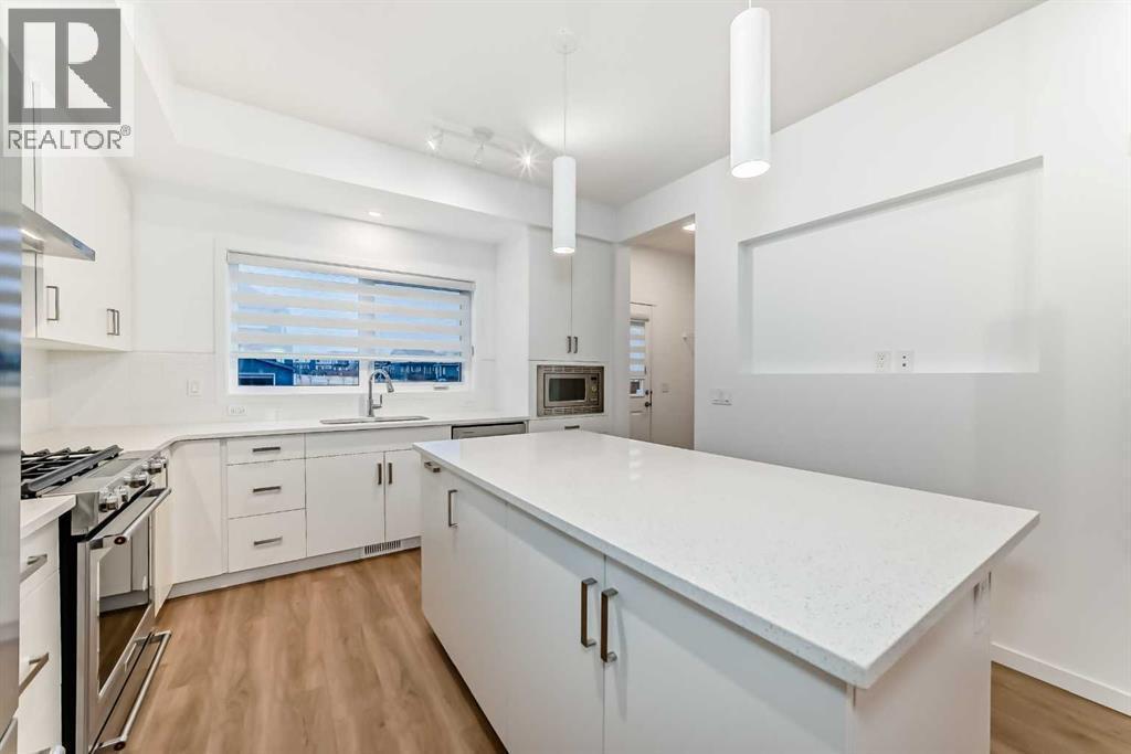 Discover exceptional comfort and modern style in this almost new semi-detached home, ideally positioned on a desirable corner lot in one of the city’s most sought-after lake communities. Immaculately maintained and barely lived in, this residence exudes a bright, fresh ambiance from the moment you step inside. Designed for today’s lifestyle, the open-concept main floor showcases an airy, contemporary palette complemented by expansive windows and thoughtfully curated finishes. Luxury vinyl plank flooring flows seamlessly from the spacious great room—with its oversized feature window—into the designated dining area and onward to the stunning chef-inspired kitchen. Here, a generous central island with quartz countertops anchors the space, paired with sleek stainless steel Kitchenaid appliances including a French-door refrigerator with ice and water, built-in microwave, dishwasher, an upgraded gas range and pull-out garbage for ease of convenience. The classic subway tile frames in the designer hood fan compliments the capped cabinetry and modern fixtures. The upper level features three spacious, sun-filled bedrooms—each offering a clean, minimalistic backdrop ready for your personal touch. The primary suite is a true retreat, complete with a 4-piece ensuite bathroom and a walk-in closet for added comfort and convenience. An additional 3-piece bathroom on this level provides thoughtful functionality for family members or guests. All bathrooms throughout the home highlight elegant quartz countertops, wood-grain vanities, curved shower rods and marble-style tile for a refined, cohesive look. A dedicated upstairs laundry room, complete with an LG ThinQ washer and dryer, enhances everyday convenience for busy families. Additional features include custom blinds on all windows and Carrier central air conditioning for year-round comfort. A separate side entrance with precast stairs adds flexibility and potential for future development, a home-based business, or multigeneration al living. Durable Hardie Board siding enhances both style and longevity on this spacious corner lot. Located within a vibrant lake community, residents enjoy year-round access to bicycle and walking paths, beach, water activities, and a welcoming community atmosphere—while being just minutes from schools, shopping, and major commuter routes. Whether you're a first-time buyer, investor, or downsizer, this move-in-ready property offers exceptional value, modern design, and an unbeatable location. Don’t miss this rare opportunity to make it yours. (id:6769