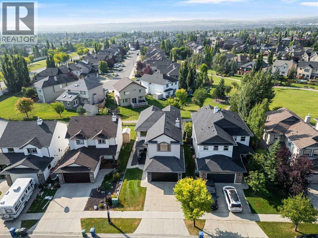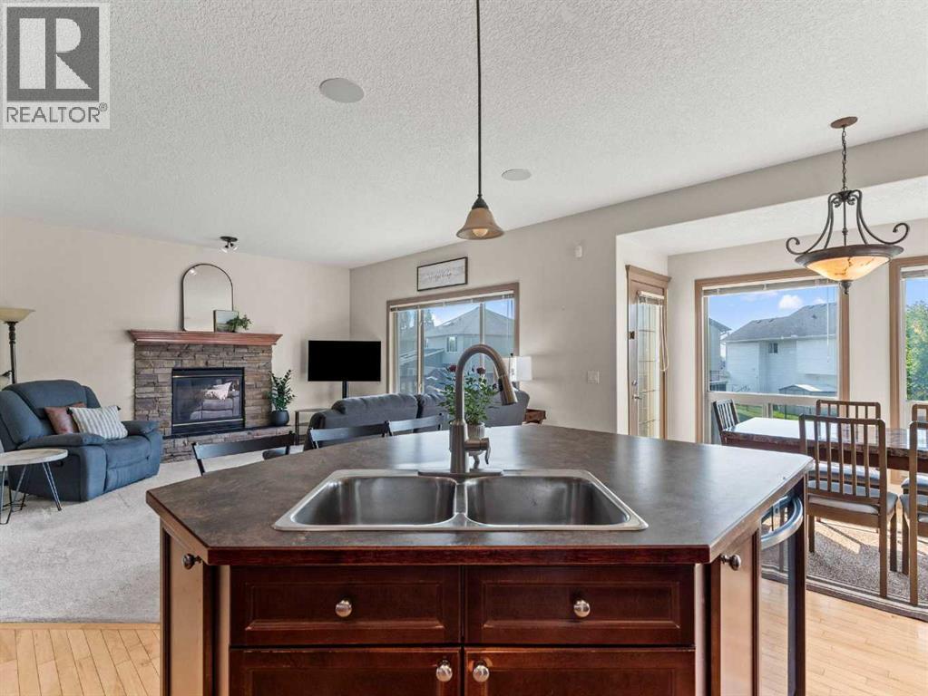Welcome to this fully finished walkout 2-storey offering over 3,000 sq ft of living space designed for both comfort and lifestyle. Complete with air conditioning, a large garage, and a setting that backs onto greenspace and walking paths with mountain views and a park nearby, this home truly has it all. You’ll also enjoy exclusive lake access with year-round activities—swimming, fishing, paddle boarding, volleyball, basketball, and barbecues in the summer, plus skating in the winter. Add in a great school district and quick access to Calgary, just 15 minutes to South Calgary, and the location checks every box. Inside, you’re greeted by a grand entrance, where the main floor features 9-ft ceilings and hardwood flooring. A front office makes working from home easy, while the open living area offers a gas fireplace and large windows for natural light. The kitchen showcases a big island, dark stainless appliances, and flows to the dining area with access to a back deck where you can enjoy the greenbelt behind you. Upstairs you’ll find a vaulted bonus room and three bedrooms, including a large primary suite with mountain views, a walk-in closet, and a spa-inspired ensuite with a jetted tub, walk-in shower, and dual sinks. The fully developed basement adds even more living space with a big bedroom, full bathroom with shower, a wet bar with cabinets, and a large open rec space that walks out to the backyard. This home blends lifestyle, location, and family-friendly features in one complete package. Call your favourite Realtor to book your private showing—homes like this don’t last long! (id:6769
