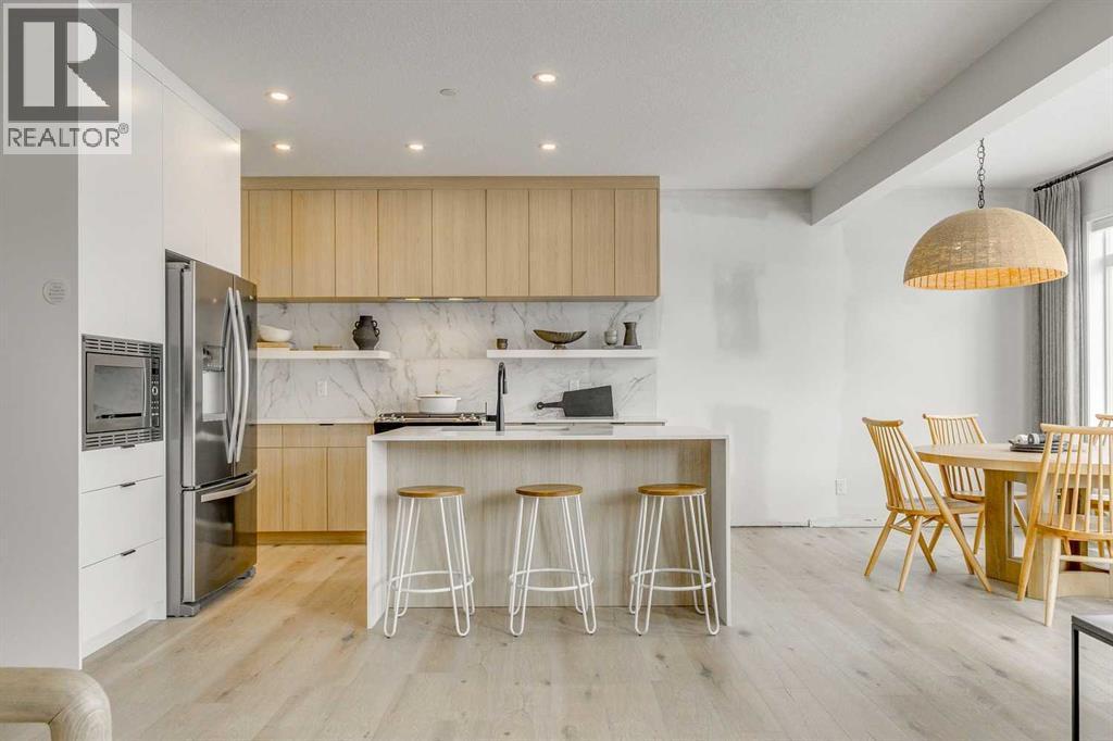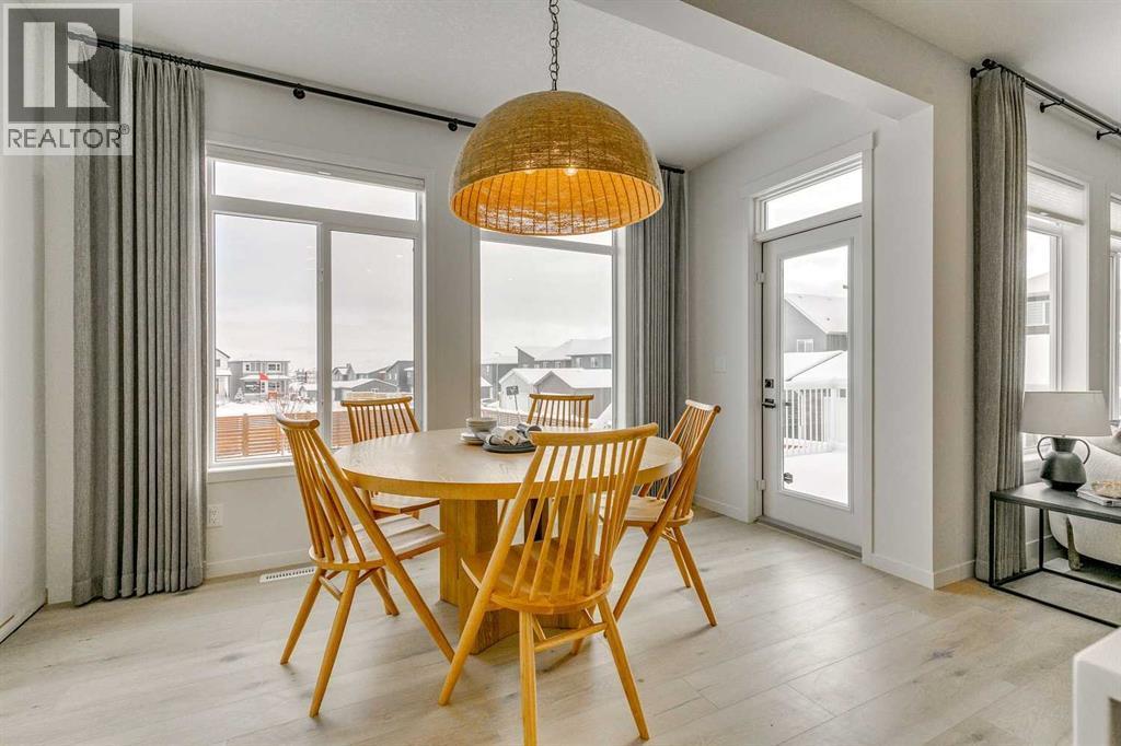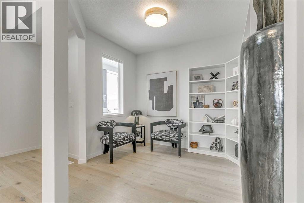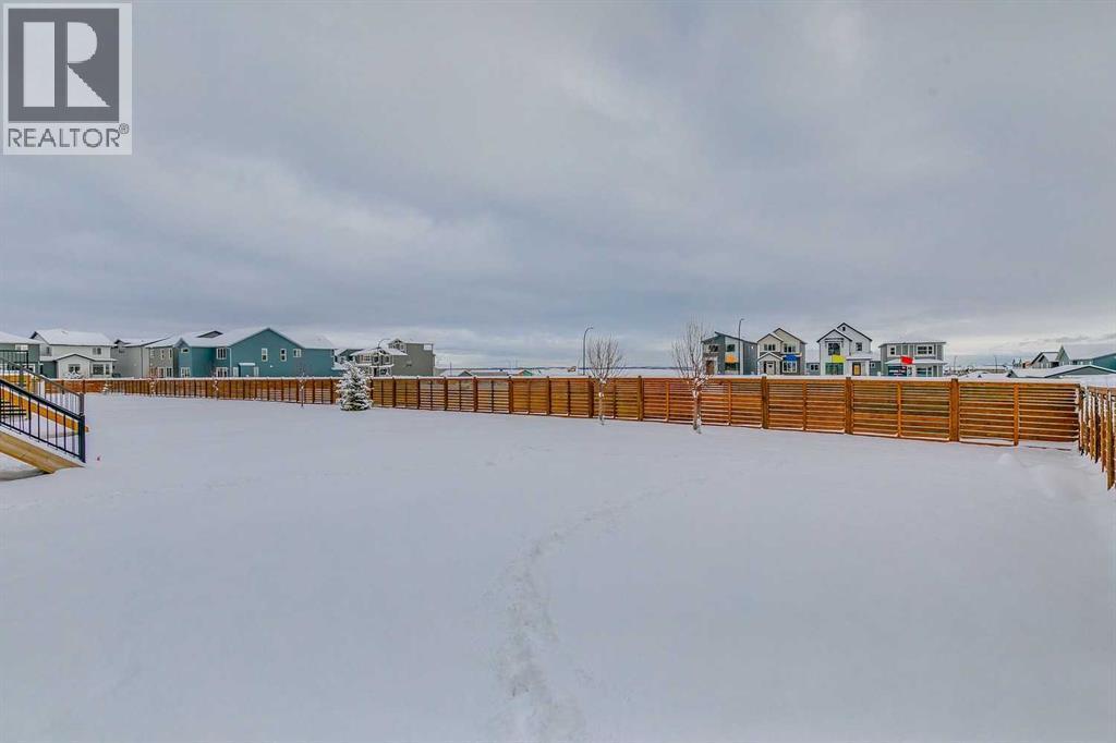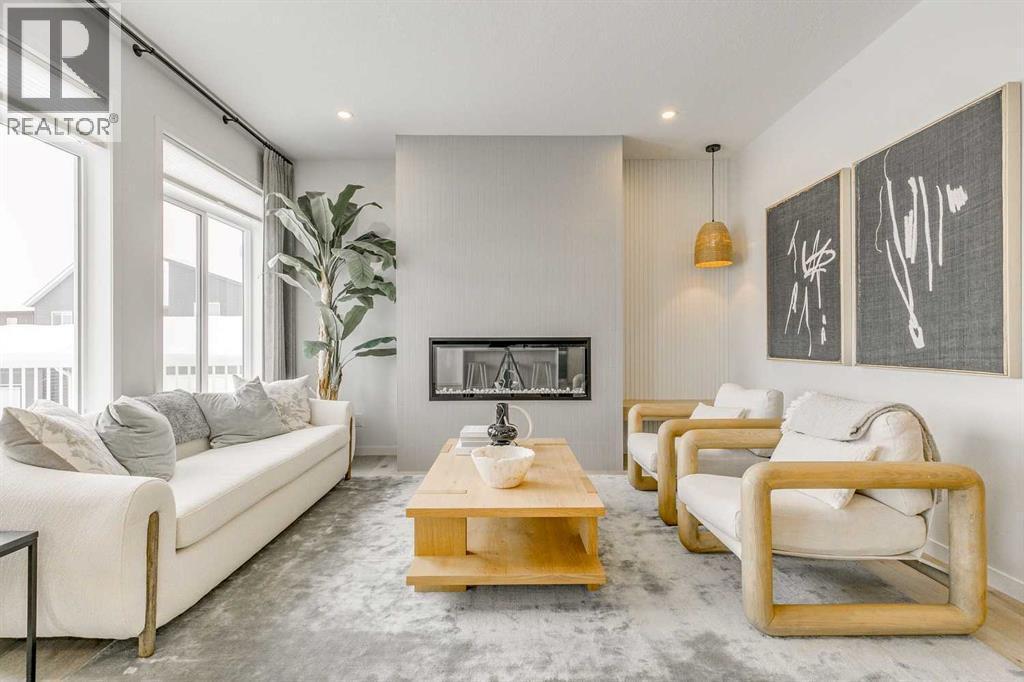 Welcome to this stunning former Morrison Homes that has 2800+ sq.ft. of developed space in the community of Livingston. Situated on a coveted corner lot, this detached property features central air conditioning, exterior Gemstone lighting, an attached front double garage, spindle railing throughout, and showcases premium upgrades from top to bottom. The main floor offers an open-concept layout highlighted by pot lights, elegant LVP flooring, and an electric fireplace that adds warmth and style to the living room. The gourmet kitchen includes a gas range, a beautifully designed kitchen island, a walk-in pantry connected directly to the mud room for effortless grocery unloading, a dining area, and a dedicated den perfect for a home office. A convenient 2-piece bathroom completes the main level. Upstairs features a spacious bonus room filled with natural light, a dedicated laundry area with a washer and dryer and three well-appointed bedrooms. The primary suite includes a luxurious 5-piece ensuite with a large tiled walk-in shower with rainfall showerhead, deep soaker tub surrounded by premium tile, dual vanities with quartz countertops, contemporary flat-panel cabinetry, sleek modern mirrors, and direct access to a spacious walk-in closet with built-in shelving. The additional two bedrooms share another 5-piece bathroom designed for comfort and convenience. The fully developed basement extends your living space with a large recreation area, a wet bar with mini-fridge, an additional bedroom, a 3-piece bathroom, and a separate entrance, offering excellent potential for multi-generational living or added privacy. Built on 9' foundations, the basement feels bright, open, and inviting. Outside, enjoy a massive backyard with a deck equipped with a gas line for BBQs. Livingston residents enjoy access to an HOA clubhouse featuring a gymnasium, tennis courts, a splash park, and year-round programming, along with quick access to major routes for easy commuting across the city. This exceptional home blends luxury, comfort, and functionality—perfect for families seeking space, upgrades, amenities, and craftsmanship. (id:6769