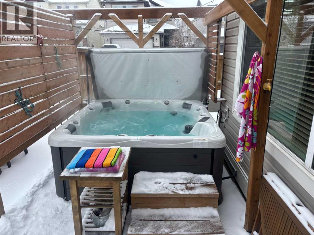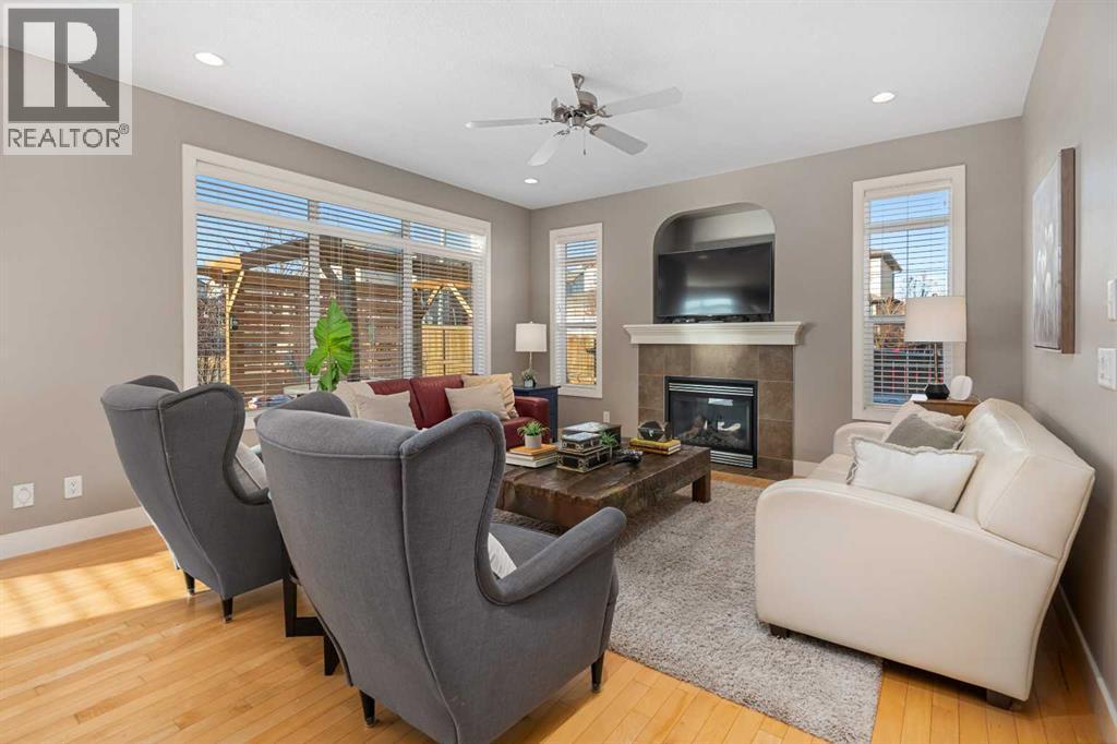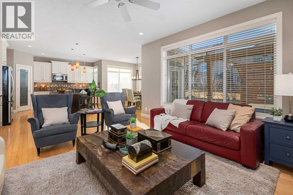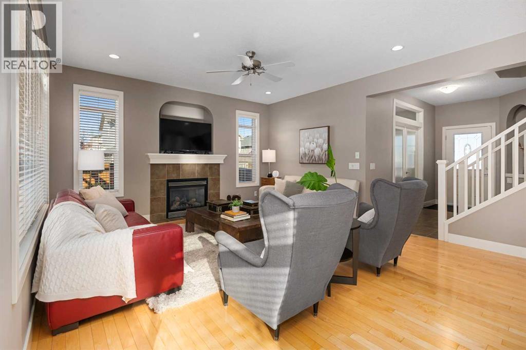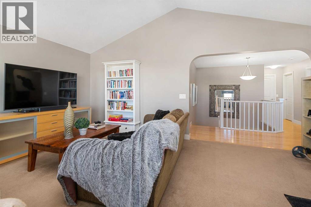 Welcome to your new home on a sunny corner lot in Westmount Court!As you step inside, you are greeted by a large entrance featuring ceramic tile floors that lead you to a versatile main floor office. This space has French doors and a transom windows for extra light, making it the perfect spot for work or study An expansive living room with large windows and gas fireplace creates a cozy space on a chilly evening. You will appreciate the white kitchen, equipped with upgraded cabinets, quartz countertops, stainless steel appliances and under-counter task lighting. There is plenty of counter space and cupboards as well as a pantry. The breakfast bar is a great place to relax over morning coffee. The adjoining dining area features more oversized windows with mountain views. The dining room overlooks the private backyard, where trees and shrubs offer added privacy. The West backyard is great for entertaining, complete with a pergola and concrete aggregate patio. Unwind after a long day in the hot tub. The functional, thoughtfully designed main floor also features a convenient laundry room and a powder room. The second floor bonus room is bathed in natural light and features vaulted ceilings. The primary bedroom is a true sanctuary, with another vaulted ceiling, a spacious layout with large walk in closet and an 5-piece ensuite bathroom. Indulge in the double vanities with quartz counters, a double shower with a bench, and a relaxing corner soaker tub. Two additional kid-friendly bedrooms and a well-appointed 4-piece bathroom complete this level, along with extra storage options provided the linen closet and a dedicated storage closet in the main bath. The unfinished basement presents a blank canvas, offering lots of storage space and the perfect opportunity to create the additional living area of your dreams! You’ll love the impressive upgrades throughout, including crown mouldings, 9-foot ceilings, and hardwood floors. There is a new, high effi ciency furnace to keep you comfortable this winter and 5 large windows in the basement. This lovely family home has an ideal location, backing onto a walking path, and is just minutes away from schools, playgrounds, green spaces, and convenient shopping options. Experience the perfect blend of comfort, style, and functionality. Quick possession is possible. (id:6769