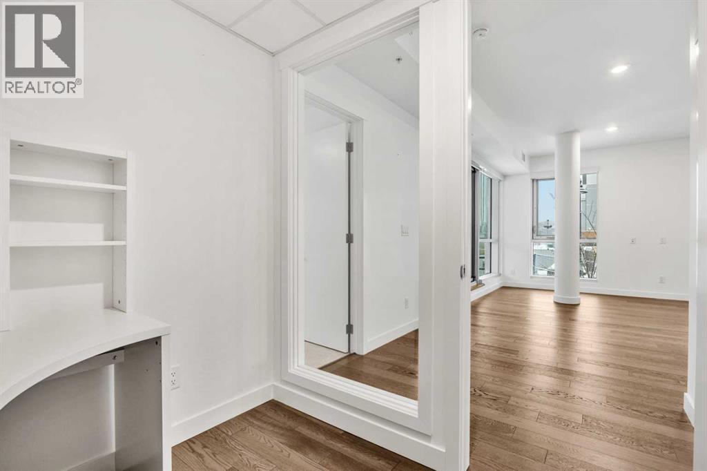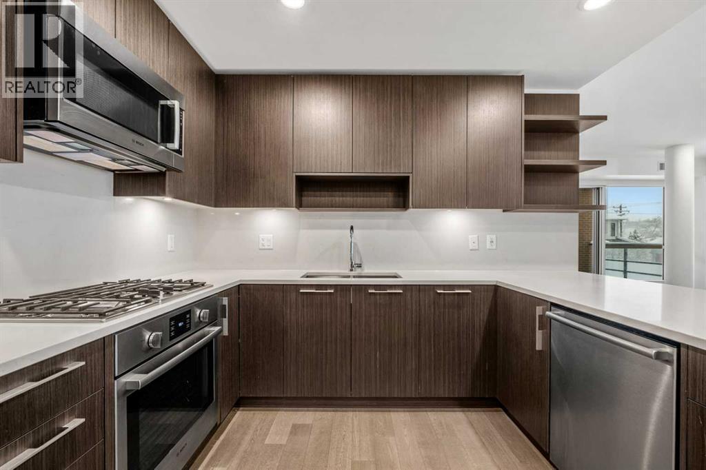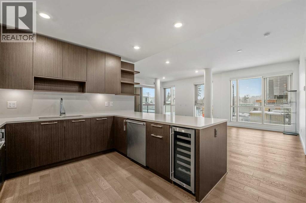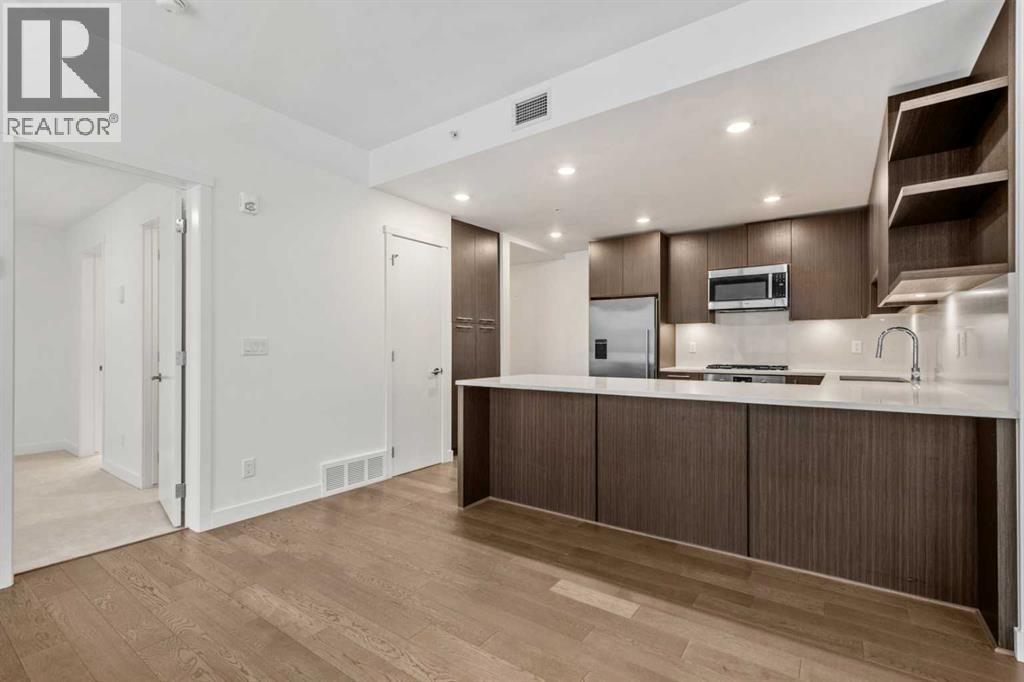 Modern comfort, thoughtful design, and an unbeatable Bridgeland location come together in this beautifully refreshed residence at Unit 223, 88 9 Street NE. The home has been recently repainted, giving every room a clean, crisp feel that pairs perfectly with the building’s contemporary aesthetic. Large windows bring in generous natural light, enhancing the open-concept layout and creating an inviting atmosphere throughout the main living space.The kitchen serves as an elegant focal point, outfitted with quartz countertops, stainless steel appliances, and sleek cabinetry that offers excellent storage and workspace. Its seamless integration with the living and dining area supports both relaxed evenings at home and effortless entertaining. The private balcony extends the living space outdoors, providing a comfortable spot for morning coffee or evening unwinding.The bedroom is well proportioned, offering a calm retreat with ample closet space and easy access to the stylish bathroom, which features modern finishes and a streamlined design. In-suite laundry adds everyday practicality, making the home as functional as it is attractive.A rare advantage of this unit is the inclusion of two titled side-by-side parking stalls, a highly desirable feature that adds convenience and flexibility for multi-vehicle households or guests. Storage is efficiently planned throughout the home, contributing to an organized and clutter-free lifestyle.Residents of RADIUS enjoy access to an impressive array of amenities within this LEED-certified concrete building. The property offers a fully equipped fitness centre, spin studio, yoga and movement room, pet-washing station, rooftop terrace with panoramic views, concierge services, and dedicated spaces for community gatherings. These features create a distinctive living experience that blends comfort with elevated convenience.Set in the vibrant heart of Bridgeland, the location places you steps from cafés, dining, boutique shopping, lo cal markets, parks, and the river pathway system. Proximity to the C-Train and downtown ensures quick and easy commuting, while the surrounding community provides a warm, walkable environment filled with character.This thoughtfully upgraded and exceptionally well-located home offers a compelling opportunity for anyone seeking stylish urban living with premium building amenities and outstanding value. One or more photo(s) was virtually staged to help viewers visualize the home’s appearance when furnished. (id:6769