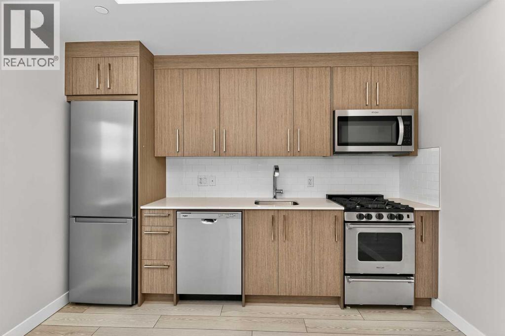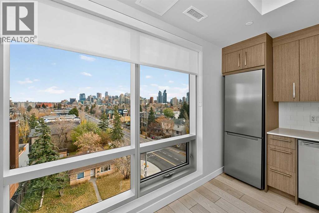 Welcome to Frontier by Truman Homes – an exclusive concrete-built residence ideally situated in West Hillhurst, just steps from the vibrant Kensington district, one of Calgary’s most desirable and walkable inner-city neighborhoods.This brand-new 1-bedroom, 1-bathroom corner suite on the 5th floor offers 396.sq. ft. of thoughtfully designed living space enhanced by floor-to-ceiling windows that fill the home with natural light.The open-concept layout showcases luxury vinyl plank flooring throughout, a spacious living and dining area, and a modern kitchen equipped with quartz countertops, stainless steel appliances, and a gas cooktop.The bright primary bedroom features expansive windows and generous closet space, while the contemporary 4-piece bathroom includes a quartz vanity and in-suite laundry for added convenience.Residents of Frontier enjoy premium amenities such as a state-of-the-art fitness center, co-working lounge, and a beautifully landscaped second-floor terrace. The building also offers titled underground heated parking and on-site retail, including Fresco, C+C Coffee, Crave Cupcakes, Metro Liquor, and more.With boutique shops, cafés, award-winning restaurants, and scenic Bow River pathways just steps away — plus quick access to Downtown Calgary and the LRT — this home perfectly blends comfort, convenience, and connectivity.Combining upscale finishes, intelligent design, and a prime corner location, this stunning unit is an outstanding opportunity for both homeowners and investors alike. (id:6769