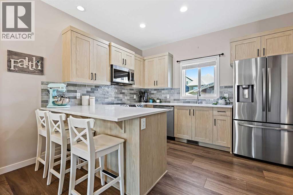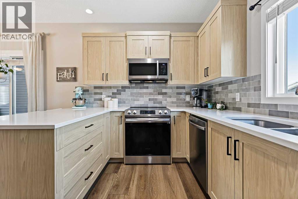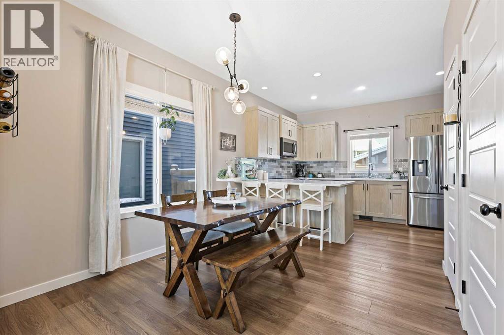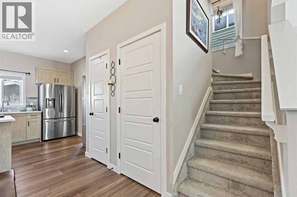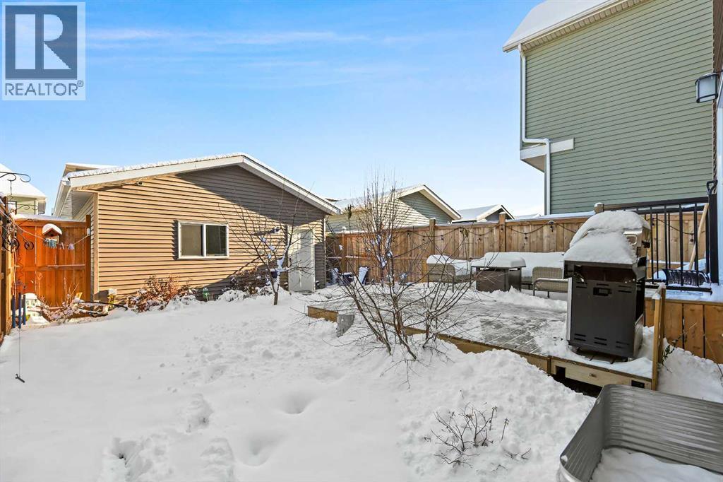Welcome to a beautifully designed, bright, and incredibly functional 4-bedroom fully finished home in the vibrant community of Lanark thoughtfully upgraded with beautiful and quality finishes making this home truly a joy to live in. From the moment you step inside, you’ll appreciate the care, charm, and attention to detail that makes this property stand out. The main floor is filled with natural light and cheerful energy, featuring 9' ceilings, durable LVP flooring, and triple-glazed windows that keep the home quiet and comfortable year-round. The living room at the front of the home’s main floor and perfectly connected to the open dining area and the stylish kitchen, complete with quartz countertops, stainless steel appliances, a breakfast bar, and plenty of prep and storage space. Convenient main-floor laundry sits just off the back entry alongside a well-placed powder room. Upstairs, you’ll find three generous bedrooms, including a bright and welcoming primary suite with a large closet and private ensuite finished with beautiful tile. Completing the upper level is a full main bathroom, with tile flooring, and an oversized linen closet for added storage. The fully developed basement adds incredible versatility to the home with a spacious fourth bedroom, a full bathroom featuring a walk-in shower, and a large recreation area perfect for a media room, games room, kids' zone, or home gym. With R50 insulation in the attic and well-planned mechanical systems, the entire home stays comfortable on every level supported by a high-efficiency furnace with HRV and a gas hot water tank for comfort and efficiency. Outside, the charm continues. The yard is beautifully landscaped front and back, and the spacious deck is the ideal place to unwind on warm days, surrounded by cherry trees, garden beds, and the peaceful feel of the neighbourhood. The oversized 20' x 22' double detached garage with its 9" walls and 240V 40A sub-panel adds even more functionality, offering room for st orage, hobbies, projects, or toys. This incredible home also includes modern conveniences such as central air conditioning and a full Samsung washer and dryer set, making everyday living even more enjoyable.All of this is nestled in one of Airdrie’s most exciting new communities, where you can enjoy pathways, ponds, picnic areas, sports fields, and playgrounds right at your doorstep. With quick access to Deerfoot, Stoney Trail, CrossIron Mills, the airport, and all of Airdrie’s shops and dining, getting in and out of the city is effortless.A fun, functional, and beautifully finished place to call home filled with comfort, style, and modern upgrades. (id:6769