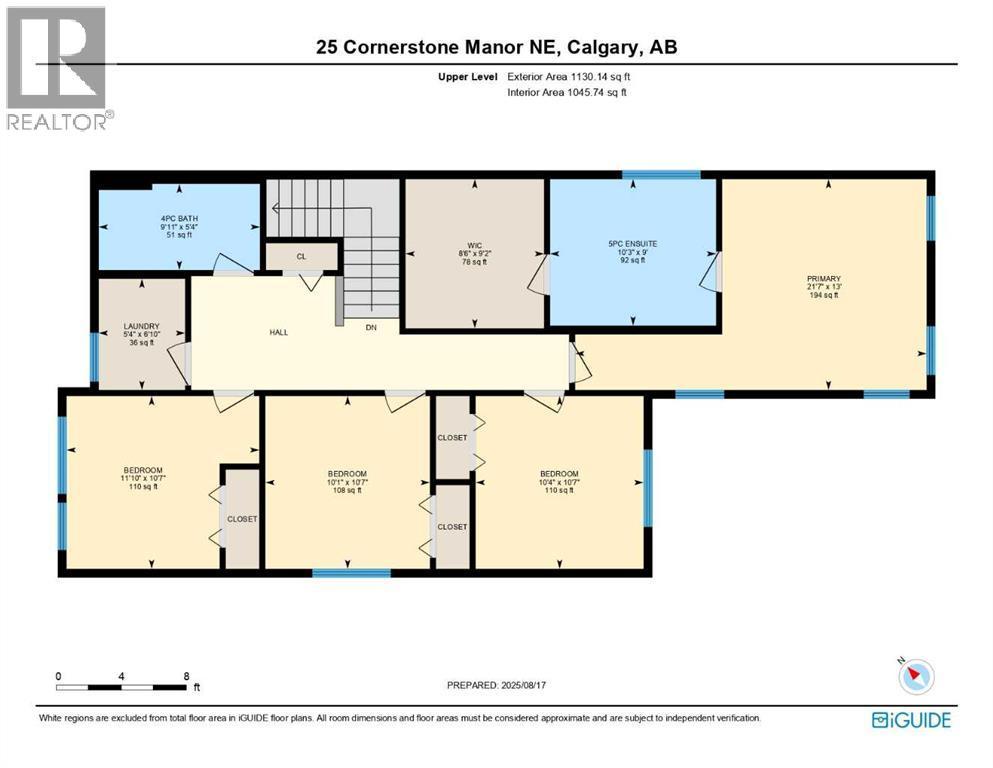 | Primary Bedroom | Second level | 13.00 Ft x 21.58 Ft |