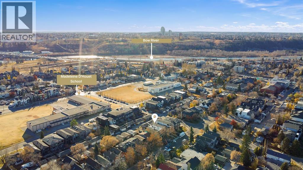 Modern, calm, & thoughtfully composed. This brand WEST HILLHURT semi-detached home blends clean architecture w/ warm, natural finishes across THREE LEVELS, including a loft level w/ bonus area, bright bed/office, & balcony/ DOWNTOWN VIEWS, plus a fully developed LEGAL 2-BED LOWER SUITE (approved by the city). Step inside to a welcoming foyer w/ plenty of space to move around & manage shoes & coats, neatly stored in the built-in closet. A pocket office w/ a built-in desk provides a convenient spot for work-from-home tasks. The front dining area offers a quiet place for morning coffee & a lovely backdrop for family meals. The kitchen truly steals the show w/ the oversized island w/ seating for quick breakfasts, charcuterie nights, or laptop catch-ups. Cabinetry is full-height w/ lots of lower drawers for a modern vibe. The working wall keeps cookware & small appliances tucked away, while quartz surfaces read clean & durable. At the back, the family room is all about comfort. The gas fireplace w/ simple built-ins gives you space for art & books, while the layout makes TV viewing effortless. Sliding patio doors to the backyard floods the room w/ light & sets up easy indoor-outdoor living. The rear mudroom is exactly where you want it, fitted w/ custom storage & a bench so shoes, bags, & dog leashes have a home. A discreet powder room completes this level.Upstairs, the PRIMARY SUITE feels like a retreat at the end of the day. You get a true walk-in closet & an ensuite that checks every box: DOUBLE VANITY, an oversized shower, & a FREESTANDING TUB that actually invites a soak. The secondary bedrooms features their own 4-pc ensuites & built-in closets giving families the flexibily they desreve. The LAUNDRY ROOM up here saves steps & keeps the main floor tidy.The loft level adds space to spread out across the home, w/ a bright & spacious bedroom or optional office w/ glass partition wall & French door, w/ built-in storage. The bonus rec area features a modern & upsc ale wet bar, w/ access to the oversized balcony w/ downtown views! There’s also a full 4-pc bath on this level for convenience! Downstairs, the legal 2-bed suite (approved by the city), keeps the modern & upscale feel going w/ a full kitchen w/ quartz & stainless steel appliance package, good-sized living area, separate laundry, a primary bed w/ private ensuite bath, & a second bed w/ quick access to the main 4-pc bath.Walk to neighbourhood parks for quick dog runs & fresh air. Schools are excellent here – Hillhurst School for K-6, Queen Elizabeth Junior High & Senior High just up the road, & William Aberhart High School for advanced academics & sports programs. Weekend coffee, local bakeries, & casual dining are all within minutes, & downtown is an easy commute by car, bike, or transit. River pathways make a perfect loop for a jog or sunset stroll. It’s the right mix of community feel & city access. (id:6769
