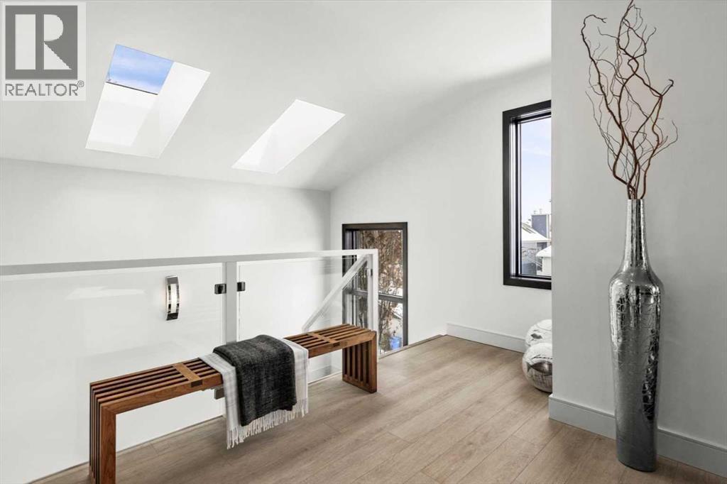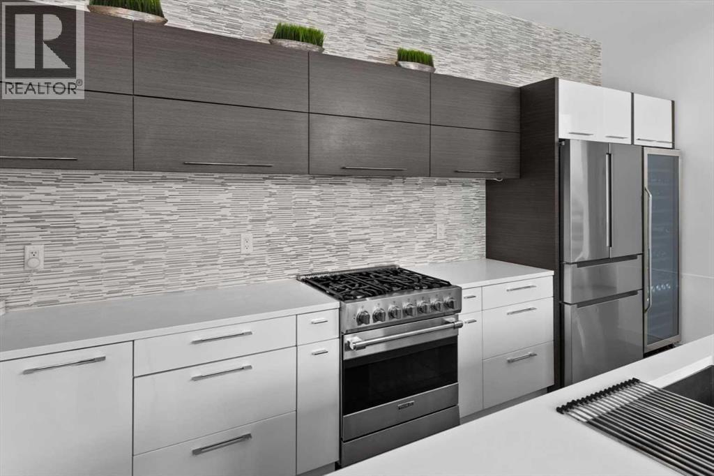 A rare opportunity awaits!!! Nestled in the prestigious neighbourhood of Hillhurst, just minutes from the vibrant heart of Downtown Calgary, this air conditioned 3-storey, 3-bedroom, 3.5-bathroom executive home is a testament to modern luxury and sophisticated living. With meticulously crafted details, this residence is designed to captivate and inspire with professionally designed living space filled with elegance and comfort. As you step inside, the open floor plan unfolds before you, and is framed by 10-foot ceilings that amplify the sense of openness and sophistication. A wall of ceiling-height windows bathes the interior in natural light, illuminating the exquisite 24 x 48 porcelain heated tile flooring that gracefully leads you through the thoughtfully planned living spaces. The heart of this home is undoubtedly its kitchen, marrying functionality with luxury in a space where mornings are greeted with the rich aroma of coffee form the Miele built-in coffee machine, and evenings are gracefully concluded with a selection from the full height wine cooler. The culinary enthusiast in your family will appreciate the food preparation space on the large waterfall quartz covered centre island and composite under mount sink. The stainless-steel appliance package is completed with a premium Viking gas range and the French Door refrigerator with cooler drawer and bottom freezer. Hosting dinner parties is a breeze with the spacious dining nook that is adjacent to the living room, anchored by a 52" gas fireplace, is ideal for entertaining and seamlessly integrates with the beautiful outdoor living area. This extension of the main level invites tranquility and relaxation, offering a perfect setting for alfresco dining and gatherings under the sky. Ascend to the second level, where a large landing introduces the expansive primary bedroom. Wake up to breathtaking downtown Calgary views and indulge in the 6-piece ensuite, featuring a free-standing stone soaker tub, a large show er with dual shower heads and Kohler body sprayers, and a customized his-and-her walk-through closet with built-in drawers and shelving. The convenient laundry room on this level, ensures ease and comfort for your daily living routines! The journey continues up to the third level, where the second bedroom and a large bonus room flex area await. Complete with a private balcony, this space offers stunning downtown views of downtown Calgary, providing a serene retreat to watch the newest release or your platform for an inspiring workspace. The sun filled lower level houses the third bedroom, and features a built-in study, media room, and games room, offering versatility and ample storage for an organized and clutter-free lifestyle. Outside, the designer influenced landscape compliments the beautiful exterior décor of this home with your own single car garage, ensuring convenience and security for your vehicle or additional storage needs. Close proximity to top-tier schools, and scenic walking paths! (id:6769