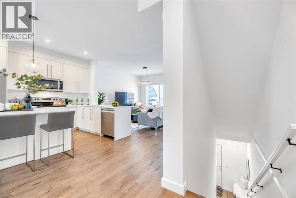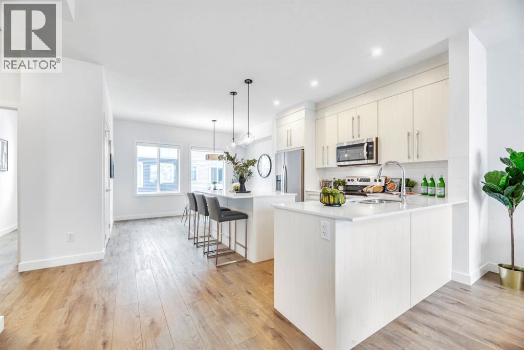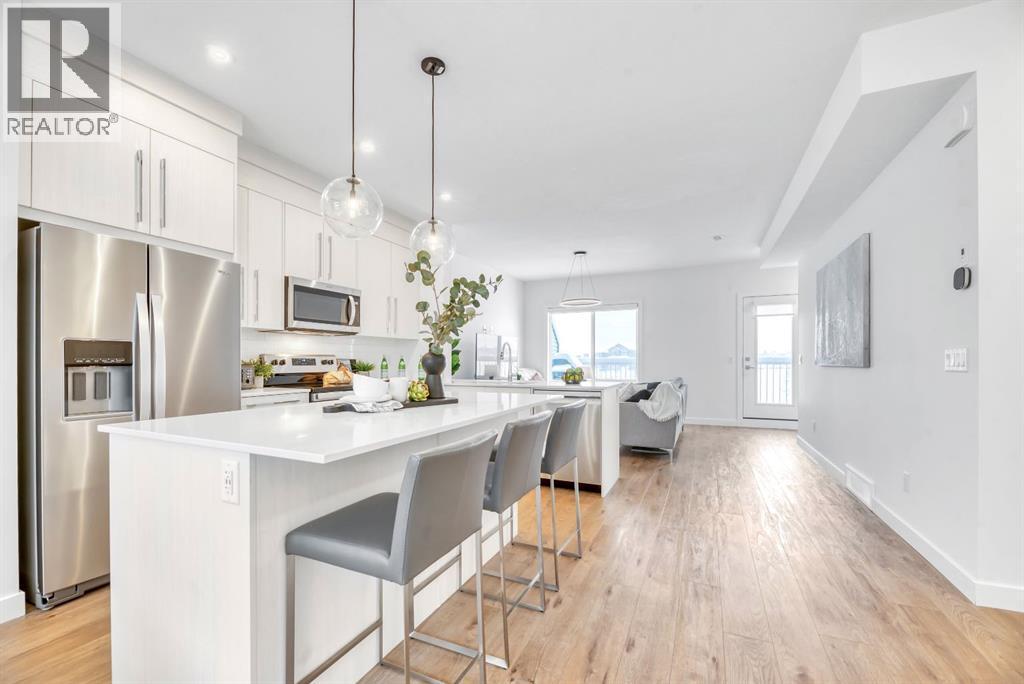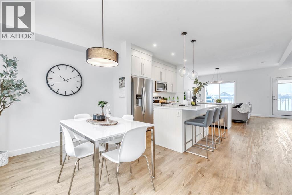 PRICE IMPROVEMENT! Welcome to this immaculate 3-bedroom, 2.5-bath townhome in the peaceful and scenic community of Creekstone in Pine Creek. Offering nearly 1,700 sq. ft. of usable space, a double-attached garage, and a highly functional layout, this beautifully styled home delivers comfort, versatility, and exceptional value.Perfectly positioned directly across from a green space, this home provides lovely views and the convenience of street parking right out front, in addition to the attached garage.The main floor features a bright and spacious multi-purpose room—ideal as a home office, gym, guest room, or fourth bedroom—giving you added flexibility to suit your lifestyle.Upstairs, you’ll find an impressively open and airy layout with a massive kitchen offering abundant counter space, pantry storage, stainless steel appliances, and extensive cabinetry. The large island is perfect for cooking, entertaining, and everyday living. The dining and living areas flow seamlessly together, enhanced by a neutral designer palette and beautiful natural light.The upper level hosts three well-sized bedrooms, including a comfortable primary suite with a walk-in closet and private ensuite. A full laundry area and an additional bathroom complete this level.This home is truly move-in ready and shows pride of ownership throughout.Located in a quiet, nature-rich neighborhood, you’re moments from Sirocco Golf Club, Spruce Meadows, walking paths, ponds, and beautiful open spaces. Commuting is effortless with quick access to Stoney Trail and Macleod Trail, connecting you easily to amenities, retail, and the rest of the city.A spacious, stylish, and exceptionally maintained home in a peaceful setting—this is one you won’t want to miss. (id:6769