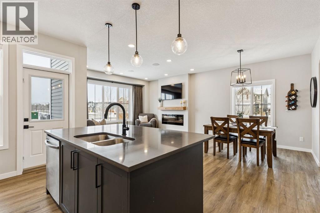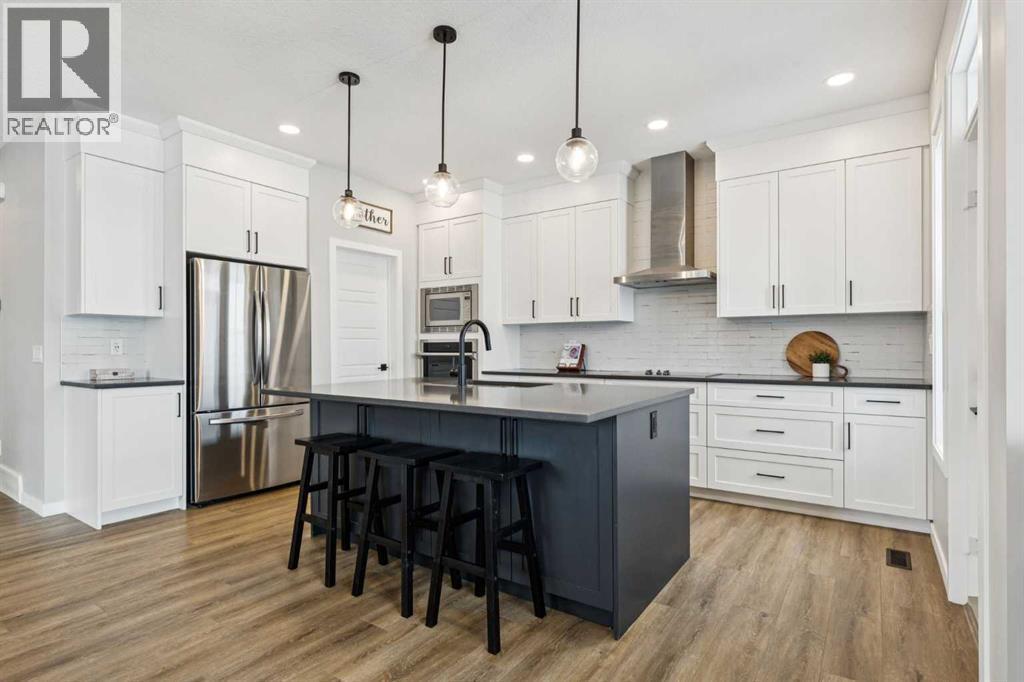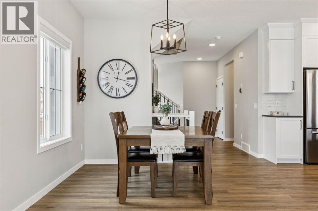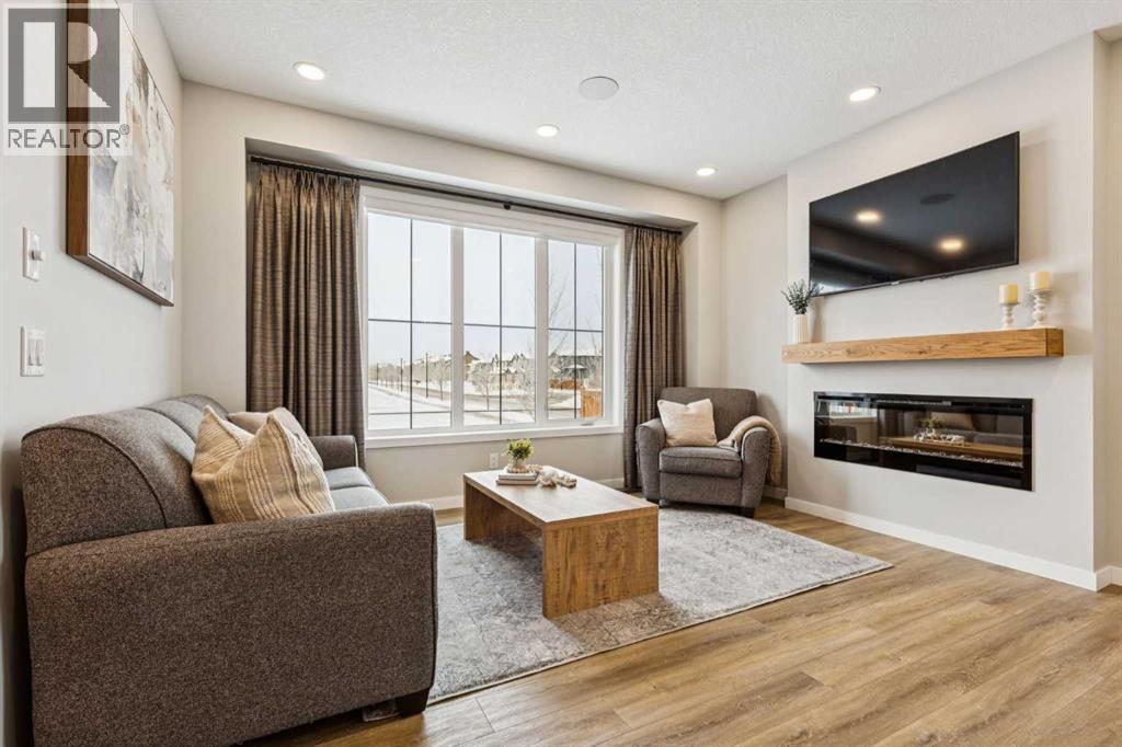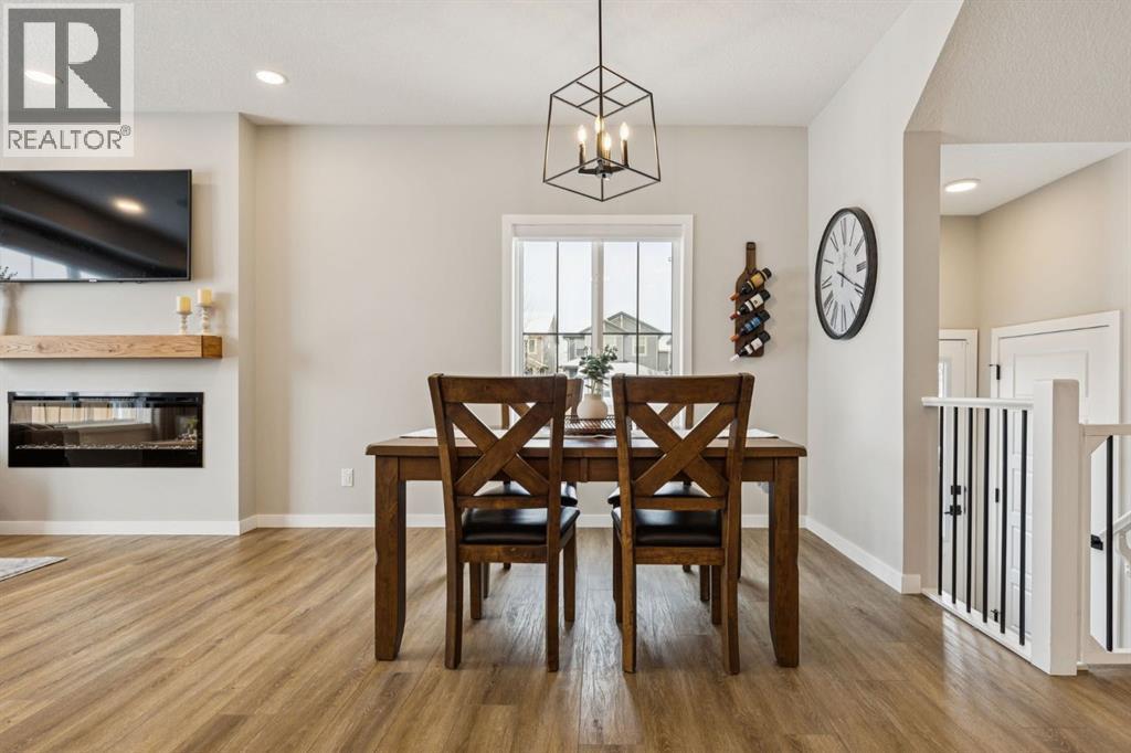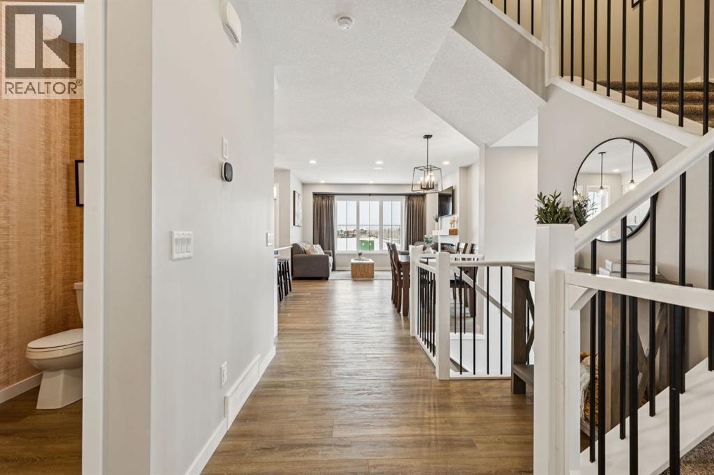 Welcome to this stunning FORMER SHOW HOME, 3-STOREY CORNER-LOT home in Heartland, offering exceptional style, thoughtful upgrades, and unbeatable MOUNTAIN VIEWS FROM EVERY LEVEL. Perfectly positioned backing onto GREEN SPACE, this property features a fully fenced WEST-FACING BACKYARD, complete with a spacious DECK.Step inside to a bright and airy main floor with LARGE WINDOWS, BUILT-IN SPEAKERS (requires Sonos amp to run them), and a sleek ELECTRIC FIREPLACE with a FLOATING MANTLE. The modern kitchen is designed for everyday living and entertaining, featuring stainless steel appliances including a BUILT-IN WALL OVEN and MICROWAVE, plus a fridge and dishwasher. A WALKTHROUGH PANTRY flows seamlessly into the mudroom for added convenience. Thoughtful touches throughout include BUILT-IN GATES that match the railing on all stairways—ideal for families and pets.Upstairs on the second level, you’ll find a spacious BONUS ROOM, a well-appointed LAUNDRY ROOM with WIRE SHELVING, and three bedrooms. The primary bedroom impresses with a stylish FEATURE WALL, a bright WALK-IN CLOSET with a WINDOW, and a luxurious 5PC ENSUITE with a TILED SHOWER, SOAKING TUB, DUAL SINKS with QUARTZ COUNTERS, and a STANDALONE SHOWER. The two additional bedrooms each offer WALK-IN CLOSETS, BUILT-INS, and MOUNTAIN VIEWS—one with its own charming FEATURE WALL. A 4PC MAIN BATH with QUARTZ COUNTERS completes this floor.The THIRD-LEVEL LOFT is a fantastic bonus space, offering a versatile BONUS/PLAY AREA, an ADDITIONAL BEDROOM, and a 4PC BATHROOM—all enjoying ELEVATED MOUNTAIN VIEWS.The basement is finished to below and left UNFINISHED, providing great potential along with a SIDE ENTRY—perfect for future development.The insulated garage comes equipped with a bike rack, adding to the home’s functionality. Additional features include AIR CONDITIONING and beautifully completed LANDSCAPING.A rare opportunity to own a 3-storey home with this level of space, design, and views in Heartland—don’t mi ss it! (id:6769