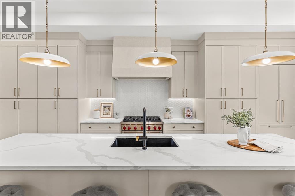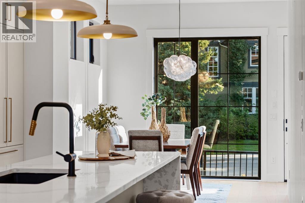 This extraordinary brick-exterior home is set in one of the most desirable locations and built by Jerry Homes with a thoughtfully designed, functional floor plan. A spacious foyer welcomes you into the main level with soaring 10-foot ceilings, a dining area accented with custom wood paneling, and a stunning kitchen featuring a massive 12-foot island, hidden walk-in pantry, high-end built-in Wolf and Dacor appliances, quartz countertops with under-cabinet lighting, and elegant gold accents. A beautifully crafted archway separates the kitchen from the great room, anchored by a custom multi-tier gas fireplace, while the mudroom provides ample storage. Large windows throughout the home fill every level with natural light, enhancing the open and airy design. Upstairs, 9-foot ceilings frame a lavish primary suite with two large walk-in closets and a spa-inspired 5-piece ensuite fully wrapped in designer tile, complete with steam shower rough-in, in-floor heating, and a soaking tub. Two additional bedrooms, a 3-piece bath, and a full laundry room complete the upper level. The fully developed basement includes in-floor heating rough-in, a spacious rec room, wet bar, fourth bedroom, and a 3-piece bath. Additional features include rough-ins for A/C, built-in ceiling speakers, an alarm system, and exterior cameras. Ideally located near top schools, parks, and the shops and restaurants of Marda Loop, this home blends quiet luxury with unmatched convenience. Call today to book your tour! (id:6769