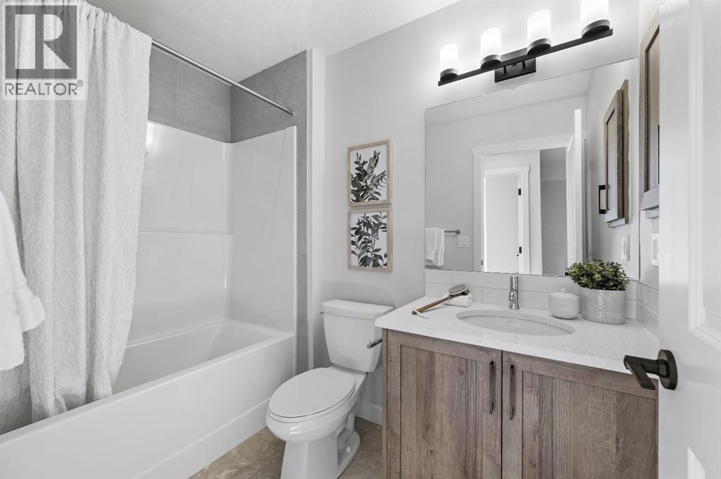 Genesis introduces the Jasper, a street-side luxury townhome with NO CONDO FEES! The Jasper townhome features an attached double garage, a rooftop patio, and low-maintenance living. The tastefully designed home offers over 1400 sq ft. of above-grade living space plus an unfinished basement with 9' ceilings, ready for your design ideas. On the main floor, you will find soaring ceilings in the open-concept living space and large windows that let natural light flow through. The chef-inspired kitchen offers sleek cabinetry and stone countertops and is well-equipped with stainless steel appliances. The kitchen is open to the dining and living room, perfect for entertaining family and friends. Complimenting the main floor is a convenient half bath, storage and entry from the attached 20 x 22 garage. Venturing upstairs, you will find a spacious primary retreat with a spa-like ensuite, a spacious shower, and a generous walk-in closet. Two additional bedrooms, a full bath, a 4-piece bath and laundry complete the upper level. Outside, enjoy spending time on your upper rooftop patio, which is situated above the garage. Bayview is a beautiful community with parks, benches and pathways that meander throughout the community and along the canals. Kids and adults alike will enjoy the outdoor basketball nets, gym, amphitheatre, and tennis courts, which convert into a skating rink in the winter. Come and see all the amenities the community offers for yourself! Area size was calculated by applying the RMS to the blueprints provided by the builder. (id:6769