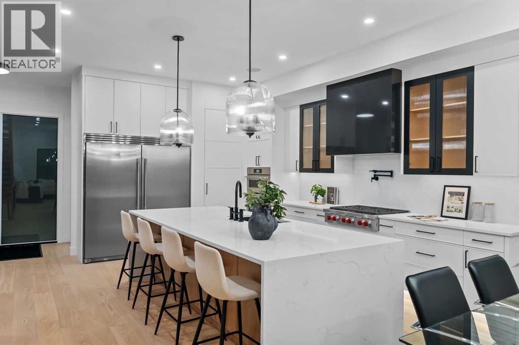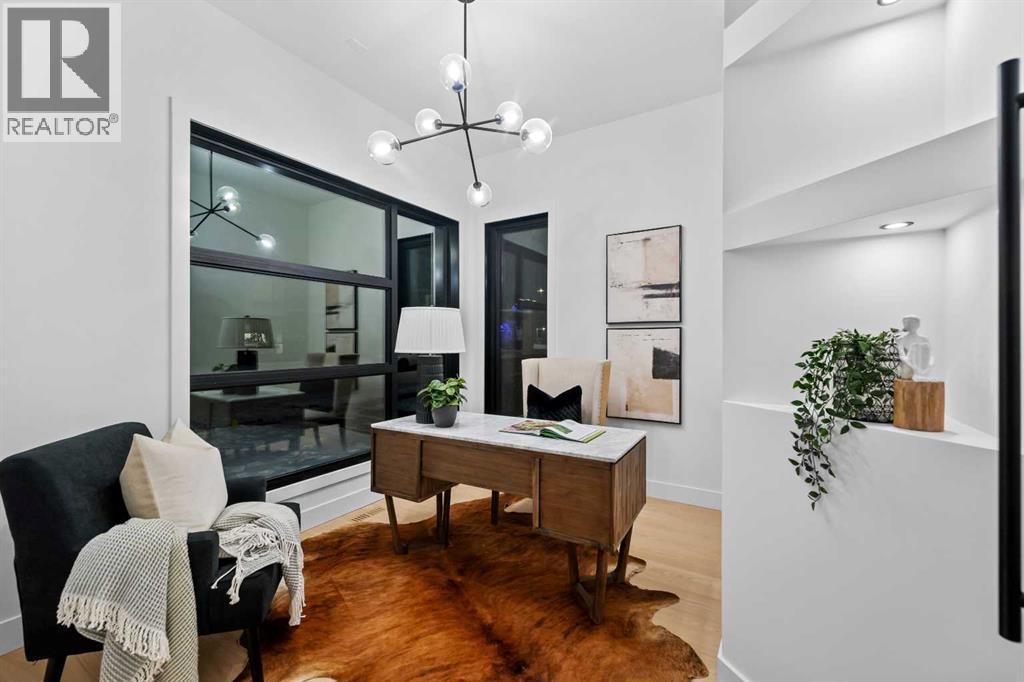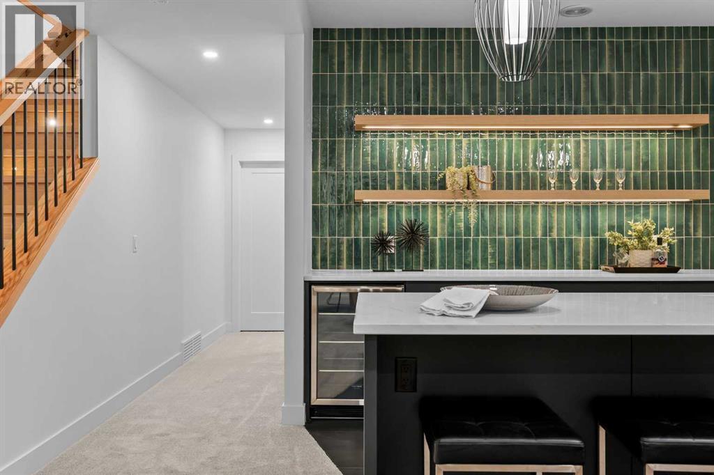 Welcome to a home where CRAFTSMANSHIP, COMFORT, and LUXURY come together in perfect harmony. Thoughtfully built and intentionally designed, this residence stands apart from the typical new infill — offering a level of QUALITY, WARMTH, and SOPHISTICATION rarely seen in today’s market.From the moment you step inside, you’ll feel the DIFFERENCE. The main floor is filled with NATURAL LIGHT, thanks to EXPANSIVE WINDOWS and a CUSTOM OVERSIZED PATIO DOOR that creates true INDOOR/OUTDOOR LIVING. Step directly onto your MASSIVE PATIO — extending across the garage roof — where you’ll experience BREATHTAKING VIEWS OF DOWNTOWN and SHAGANAPPI GOLF COURSE. It is a one-of-a-kind outdoor space designed for ENTERTAINING, RELAXING, and taking in the cityscape.The LIVING ROOM is a SHOWPIECE, anchored by a STRIKING BRICK FIREPLACE, CUSTOM MILLWORK, and those same LARGE, OVERSIZED WINDOWS that bring the outdoors into every moment. This space blends ARCHITECTURE and WARMTH seamlessly, offering the perfect setting for gatherings or quiet evenings at home.The gourmet kitchen continues the theme of elevated living with a WOLF GAS RANGE, CUSTOM HOOD-FAN CANOPY, OVERSIZED REFRIGERATOR, WATERFALL ISLAND, DOUBLE OVENS, POT FILLER, and HIGH-END FINISHES selected for both BEAUTY and PERFORMANCE.A PRIVATE HOME OFFICE on the main floor delivers a QUIET, PURPOSEFUL workspace — ideal for MODERN WORK-FROM-HOME living.Upstairs, the primary suite offers a serene RETREAT with HEATED ENSUITE FLOORS, LUXURY TILE WORK, and a spacious WALK-IN CLOSET. With 4 BEDROOMS, 3.5 BATHROOMS, and 9-FOOT DOORS, the home provides SPACE, COMFORT, and FUNCTIONALITY on every level.The WALKOUT LOWER LEVEL opens to a COVERED PATIO, extending your living space year-round. Everywhere you turn, you’ll find OVERSIZED WINDOWS that frame natural light and views throughout the home — a signature element of this build.Additional highlights include AIR CONDITIONING, DOUBLE PATIOS, a WALKOUT BASEMENT, and an OVERSIZED HEA TED GARAGE WITH EPOXY FLOORING.Located in SHAGANAPPI, you’re just 5 MINUTES FROM DOWNTOWN, steps from the GOLF COURSE (literally a stone’s throw from the GREEN), and enjoy FAST ACCESS TO THE MOUNTAINS. It’s INNER-CITY LIVING with unbeatable convenience.This is more than a new home — it is a statement in DESIGN, QUALITY, CRAFTSMANSHIP, and THOUGHTFUL LIVING. To appreciate its TRUE VALUE, it must be experienced in person. (id:6769