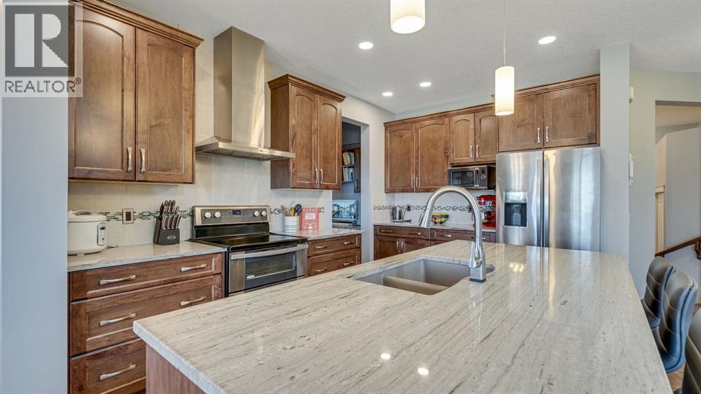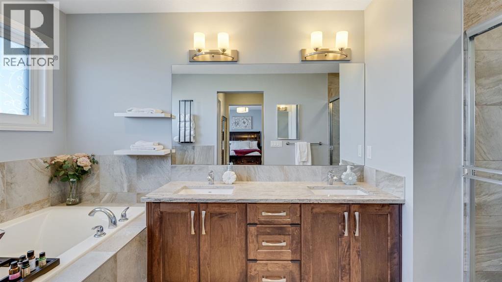 Welcome to Hillcrest Heights, where comfort, space, and lifestyle come together in this beautifully maintained 5-bedroom, 4.5-bath home with over 3000 sq ft of livable area, and a fully finished walk-out basement. This bright, open main floor features large windows framing peaceful greenspace views, a welcoming living area, and a kitchen/dining space perfect for family meals or entertaining. A convenient half bath and thoughtful storage complete this level.Upstairs, discover four spacious bedrooms, including two with ensuites. The primary suite offers panoramic views of Airdrie, a spa-inspired ensuite, and a custom walk-in closet with built-in shelving.The finished, walk-out basement provides a fifth bedroom, full bath, and three additional storage rooms! Perfectly suited for an office, gym, or hobby area.Step outside for direct access to the greenspace and walking paths, perfect for morning walks or evening play. The three-car garage offers generous storage, and the location is walking distance to schools, parks, and shopping, with quick access to Highway 2 for an easy Calgary commute.This Hillcrest Heights home combines function, comfort, and lifestyle — a welcoming space where your family can grow, relax, and thrive. (id:6769
