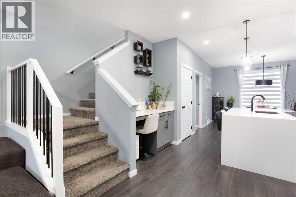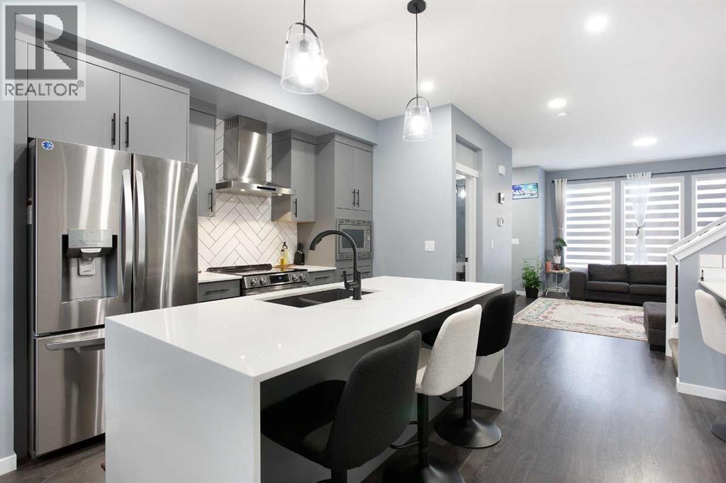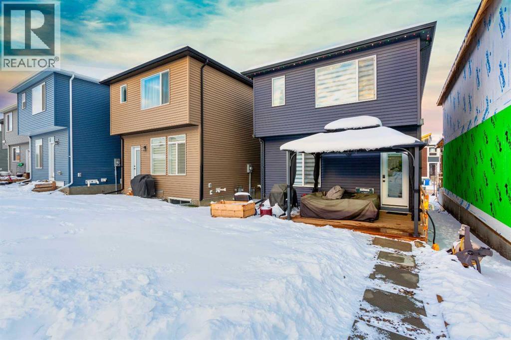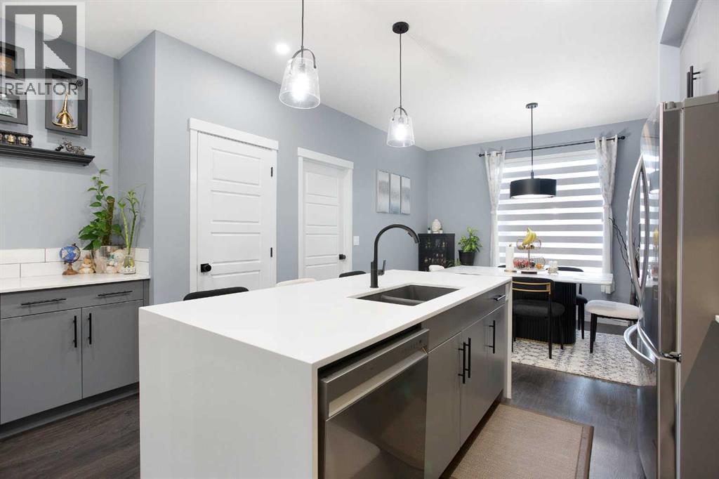 Welcome to this beautifully updated 3-bedroom, 2.5-bath Morrison-built home located in the vibrant, family-friendly community of Belmont, Calgary. Thoughtfully upgraded and meticulously maintained, this home combines modern style with exceptional functionality—perfect for families, professionals, or anyone seeking a move-in-ready home in a rapidly growing area. Step inside to an open and inviting main floor featuring luxury vinyl plank flooring, contemporary finishes, and large windows that fill the space with natural light. The stylish kitchen stands out with quartz countertops, stainless steel appliances, upgraded cabinetry, and a spacious island ideal for cooking, hosting, or casual dining. The adjoining living and dining areas create a seamless flow, making the space perfect for both everyday living and entertaining. Upstairs, you’ll find three generous bedrooms, including a serene primary suite complete with a walk-in closet and a private 4-piece ensuite. Two additional bedrooms, a full bathroom, and a convenient laundry area complete the upper level. Every room feels fresh, modern, and move-in ready. Outside, the property features a well-sized backyard with plenty of room for play, pets, or future personalization. Located just down the street from one of Belmont’s many upcoming commercial plaza, homeowners will soon enjoy walkable access to shops, services, and dining. Several parks, pathways, and playgrounds are within easy walking distance, making it an ideal setting for outdoor lovers and families. With extensive updates, quality construction, and an unbeatable location in one of Calgary’s fastest-growing communities, this Morrison-built home is an exceptional opportunity. Move in and enjoy comfort, convenience, and a lifestyle that continues to improve as the neighbourhood grows. Don't delay, book your showing today. (id:6769