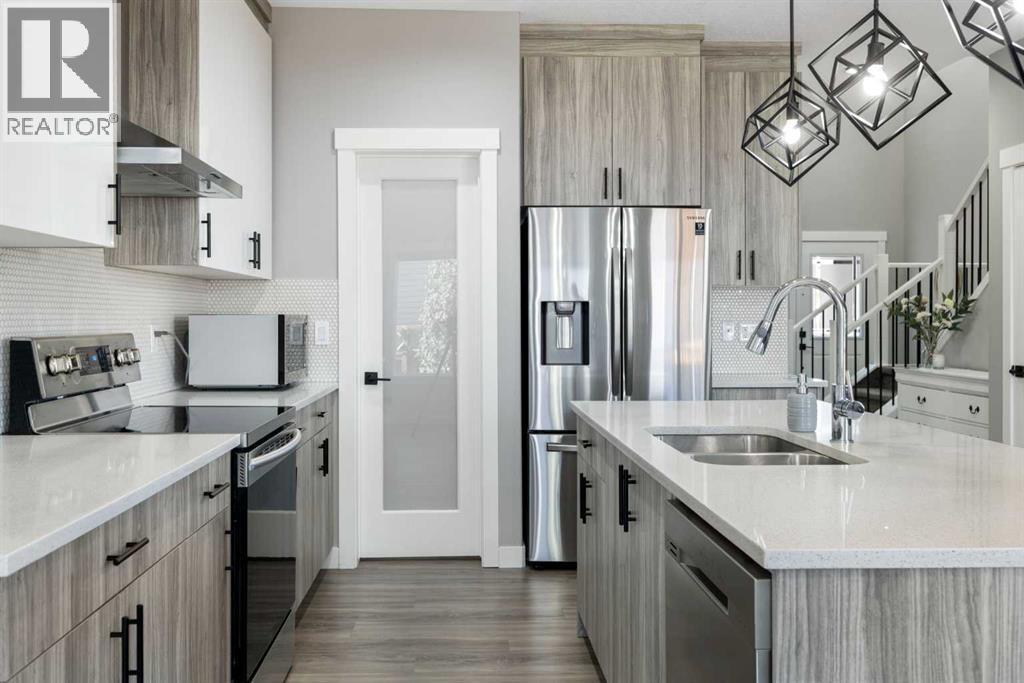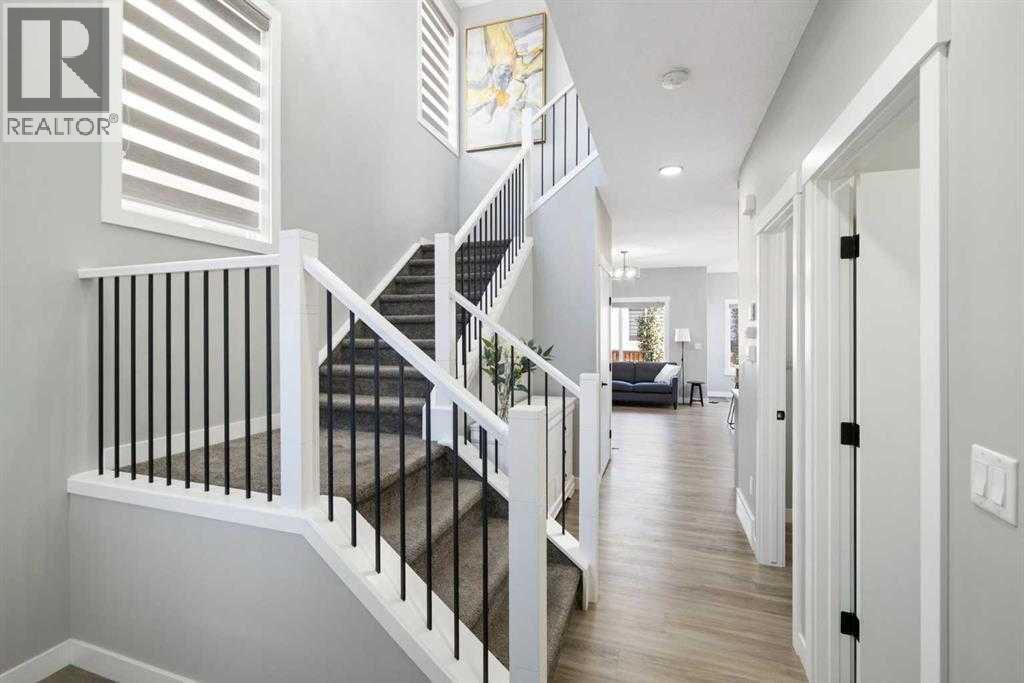 Experience elevated living in this stunning, well maintained former show home by Sunview Custom Homes. Located just steps from George Freeman K-9 School, this home combines modern design, exceptional craftsmanship, and everyday functionality. From the moment you enter, you’re welcomed by high ceilings, bright natural light, and modern high end finishes that set the tone for the entire home. The open-concept main floor features a chef-inspired kitchen with two-toned European cabinetry, white quartz countertops, high-end stainless steel appliances, and a large central island that’s perfect for entertaining or family gatherings. The adjoining living and dining spaces are accented by a cozy gas fireplace, 9’ ceilings, and oversized windows with premium coverings. Step outside to enjoy the back deck, ideal for year-round BBQs and relaxing evenings. A walk-through pantry, powder room, also with quartz countertops, and luxury vinyl plank flooring complete the stylish and functional main level. Upstairs offers three spacious bedrooms, including a primary suite with a walk-in closet, 5-piece ensuite with jetted tub. A bright bonus room adds the perfect space for family movie nights or quiet reading, while upstairs laundry keeps things convenient. The basement is ready for your ideas already framed for two additional bedrooms or office space and featuring 9’ ceilings and a separate entrance, offering potential for future development (secondary suite subject to municipal approval and permitting). This home blends luxury, comfort, and practicality - truly the perfect place for you to LOVE WHERE YOU LIVE! Please note: Pre-sale home inspection done, report available on request. (id:6769