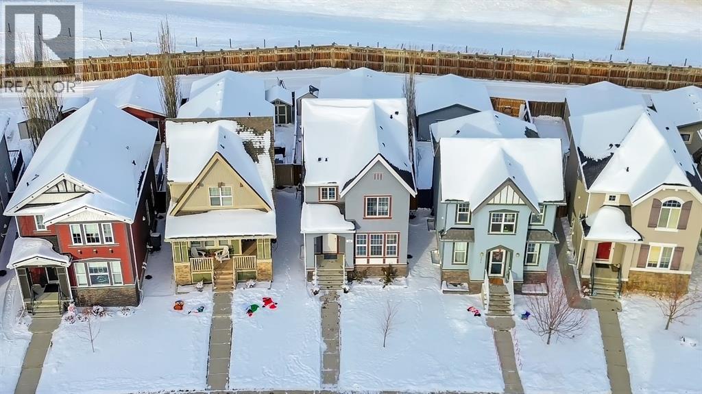 Charm meets convenience in this well-maintained two-storey detached home in Mahogany, offering nearly 1,700 sq. ft above-grade space. In this award-winning 4-Season lake community, residents enjoy exclusive access to 63 acres of water, private beaches, a kids' splash park, 22km of pathway & 74 acres of restored wetlands. Inside, a bright foyer with a convenient front closet and very discreet powder room leads into the open-concept main floor. This sought-after central kitchen design offers stainless steel appliances, a central island with bar seating, granite countertops, a tiled backsplash, ample cabinetry, and generous prep space. A cozy, carpeted den, just off the dining area, complete with large windows and built-in shelving, creates a versatile space for a home office, with enough room for both partners to work from home or use it as a playroom, study nook, or reading spot. The living area is filled with natural light thanks to the oversized windows and features a gas fireplace framed with tile and custom wood detailing. The large mud room is perfect for kids loading and unloading from the oversize deck and garage. This home also includes central A/C for year-round comfort. Upstairs, the primary suite offers a peaceful retreat with a large walk-in closet and a spa-inspired 5-piece ensuite featuring dual sinks with granite countertops, a soaker tub, and a tiled walk-in shower. Two additional bedrooms, a 4-piece bathroom, and a dedicated laundry room with storage space for cleaning supplies complete the upper level. The fully custom-designed and developed basement adds even more living space, including a spacious rec room with a cozy fireplace, an extended wet bar with quartz counters and a brand-new full-size fridge, a comfortable 4th bedroom, and a modern 3-piece bathroom. This $40,000 development also included ceiling sound bars for enhanced sound mitigation. The basement is fully insulated and features abundant storage, including large storage rooms ideal for seasonal items, gear, and household extras. Outside, enjoy an amazing backyard on the street's largest lot, with no neighbours behind you, featuring a large deck, a storage shed, plenty of space to relax, play, or garden, and a nearly 550 sq. ft. double detached garage offering insulated, heated parking and additional storage. The garage is oversized with a valued section perfect for bikes, tools, or game meat. The paved back lane keeps vehicles and garage floors cleaner year-round. The exterior also features Gemstone lights for customizable seasonal lighting. Set in Mahogany, one of Calgary’s most desirable lake communities, this home is close to parks, pathways, shops, dining, and year-round recreation. Own a warm, welcoming home in a vibrant neighbourhood. (id:6769
