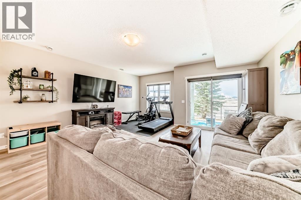 Discover effortless living in this bright and spacious 3-bedroom walkout townhome, ideally located in the popular Trading Post development of Sunset Ridge. Total finished area of 1931sf with 1496sf above grade. Perfectly positioned at the entrance of the community, this well-maintained home combines comfort, convenience, and unbeatable Rocky Mountain views from top to bottom. Step inside to a welcoming entryway that leads up to a sunlit, west-facing living area and kitchen—where large windows showcase sweeping mountain vistas that will take your breath away. Whether it’s a quiet morning coffee or an evening glass of wine on the deck, you’ll enjoy front-row seats to Cochrane’s finest sunsets and picturesque views. The main level features updated vinyl flooring throughout and a newer (2022) dishwasher and upgraded culinary sink. Step outside to your private balcony with plenty of space for grilling, relaxing and entertaining.Upstairs, you’ll find two bedrooms and a full bathroom—ideal for kids, guests, or a home office. Continue up to your private retreat: a top-floor primary suite complete with a walk-in closet, full ensuite, and those signature mountain views greeting you each morning. Upper-floor laundry adds convenience with room for built-in storage space.Downstairs, the fully finished walkout basement offers even more flexible living space. With matching updated flooring and access to a covered patio and shared green space, it’s perfect for game nights, music, teen hangouts, or a cozy media room. Bring your propane fire ring, lounge chairs and enjoy the sunset! Enjoy low-maintenance living with condo fees covering snow removal, grounds maintenance, reserve fund contributions and insurance. Additional storage areas and a single-car garage with interior access complete the package—making cold winter mornings a whole lot cozier!This is a fantastic opportunity to own a move-in ready, multi-level condo with room to grow, relax, and take in one of the best views in town. Sunset Ridge offers convenient access to multiple schools, parks and other amenities. (id:6769