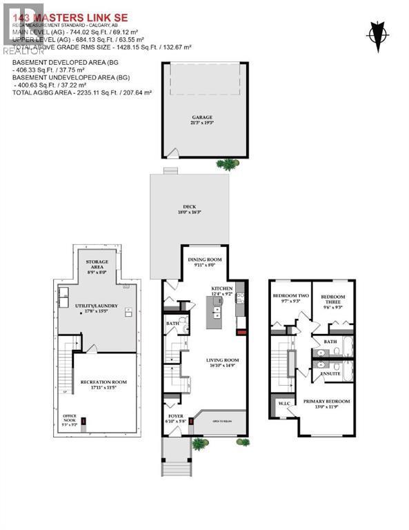Welcome to 143 Masters Link SE – where style, light, and thoughtful design converge in the award-winning lake community of Mahogany. From the moment you step inside, the Renew floor plan makes a striking first impression. A dramatic open-to-below feature, framed by elegant iron railing, connects the main and lower levels in a way that’s as rare as it is beautiful—allowing sunlight to cascade through every corner of the home. The main level showcases new luxury vinyl plank flooring and a bright, spacious living room that easily accommodates a large sectional and invites family and friends to gather. Transition effortlessly into the chef-inspired kitchen, where an oversized central island with dual waterfall granite edges becomes the showpiece. Complete with stainless steel appliances, pendant lighting, full tile backsplash, and a convenient pantry, this kitchen blends sophistication and practicality. The expanded dining area, highlighted by yet another soaring ceiling, creates the perfect atmosphere for dinners bathed in natural light; while a discreet half bath completes this level. Upstairs, discover three generous bedrooms and two full bathrooms, including a tranquil primary retreat featuring a four-piece ensuite and a large walk-in closet. Downstairs, the almost fully finished lower level continues to impress. With its open recreation room, a convenient office nook for remote work or study, and expansive storage and laundry areas, the design ensures comfort and functionality. Thanks to the open-to-below layout, even this level feels bright and connected. Outside, the stucco exterior adds refined curb appeal, while the large rear deck is perfect for BBQs, entertaining, or simply relaxing under the evening sky. The oversized double detached garage offers ample space and convenient lane access. Situated in the vibrant community of Mahogany, residents enjoy exclusive access to the lake, year-round recreation, scenic trails and ponds, and a lively mix of shops, cafés, and amenities—all within walking distance. With quick connections to Stoney Trail and Deerfoot, this is the perfect blend of tranquility and convenience. 143 Masters Link SE—a home that feels both expansive and inviting, designed for those who appreciate light, connection, and the art of modern living. (id:6769