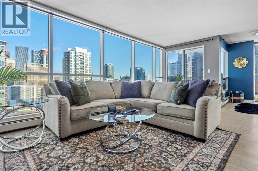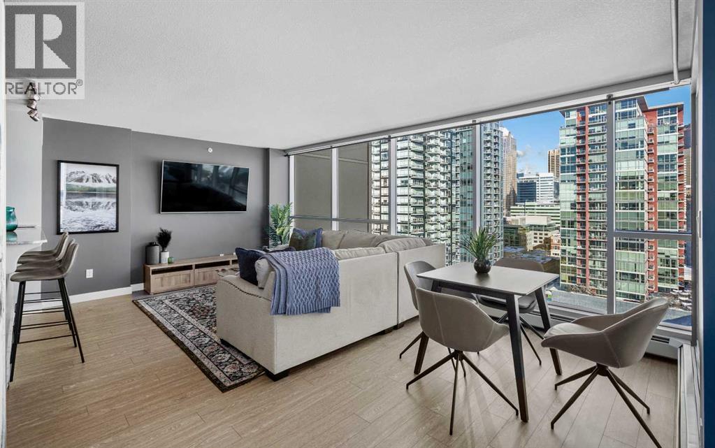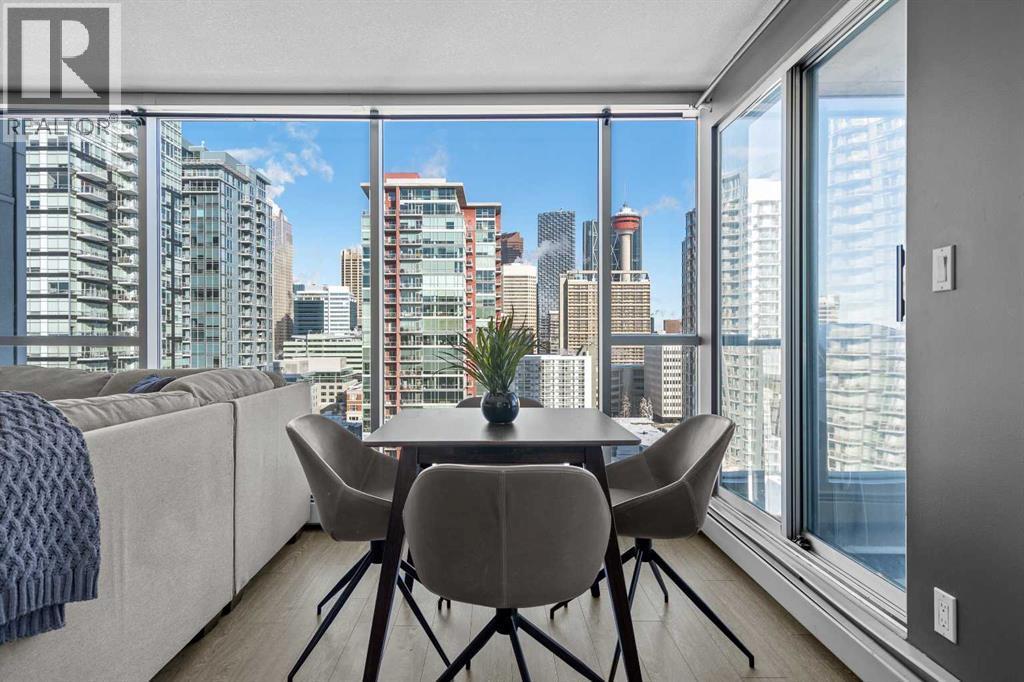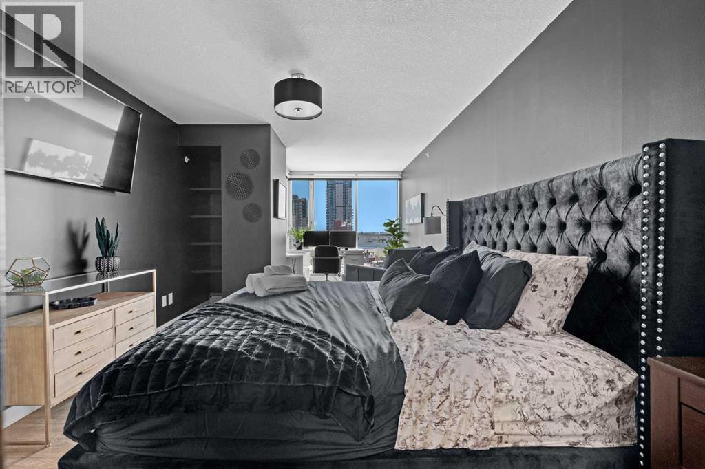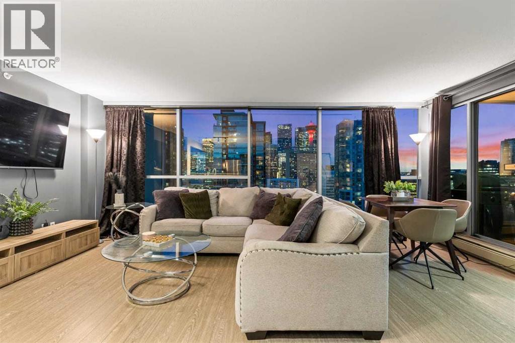 Stunning downtown skyline views! This ultra modern 2 bedroom 2 bathroom property features a wide open concept perfect for entertaining. Floor to ceiling windows allow full views of the beautiful downtown as well as Calgary stampede grounds. This concrete building has fantastic walkability to 4th St shops, restaurants, is a short stroll to downtown and has great access to everything your lifestyle needs. There's also titled, heated underground parking, gas BBQ hook up and AC to keep you cool in the summer, call today to view! (id:6769