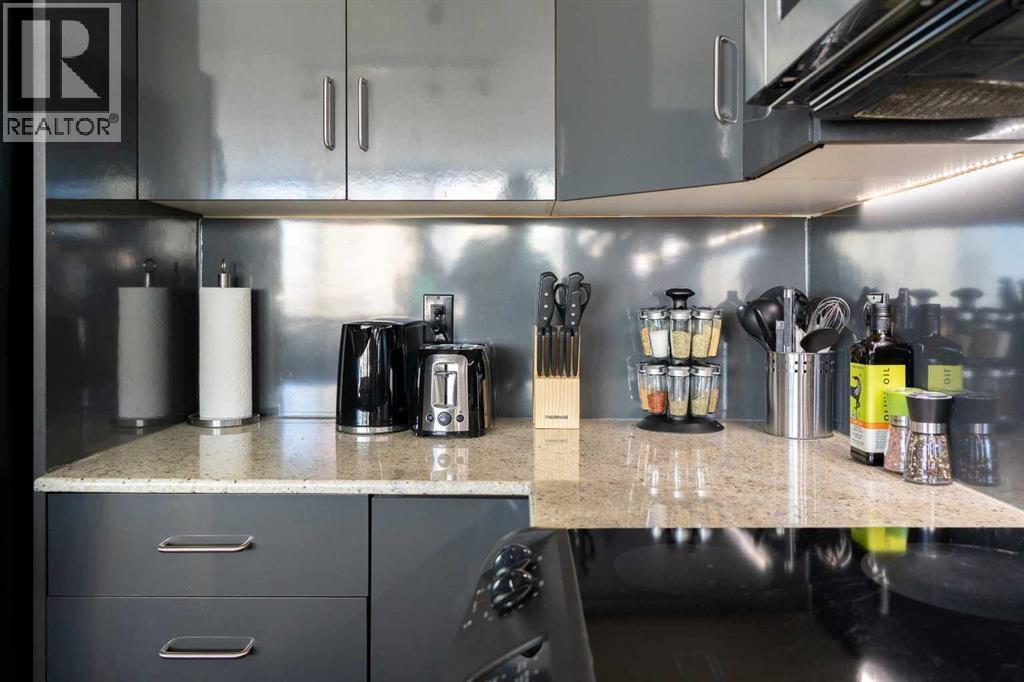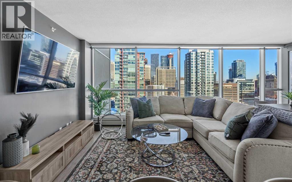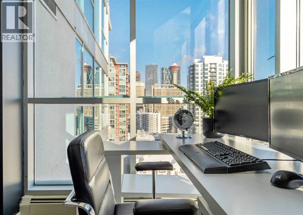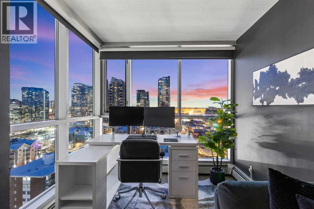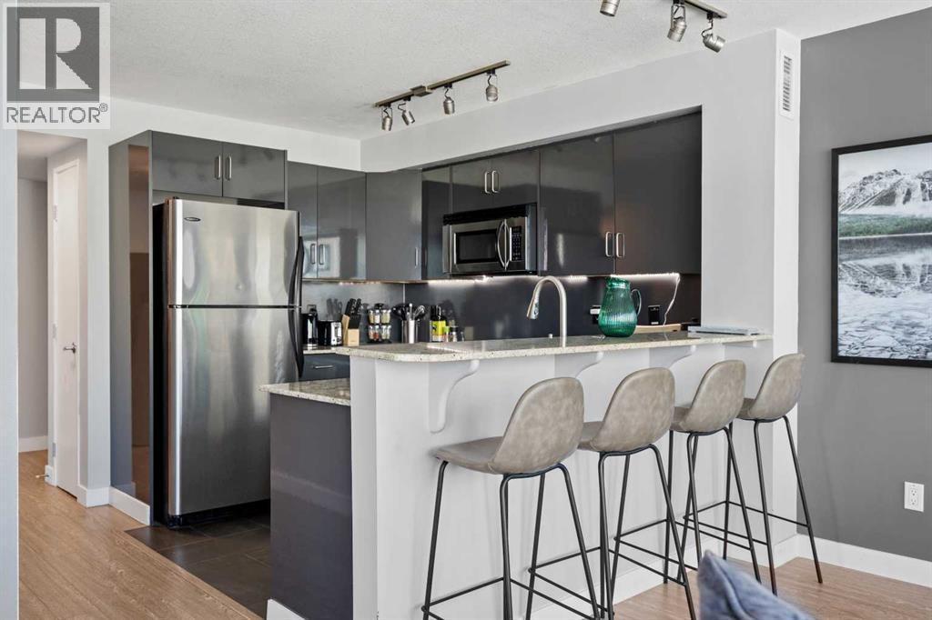 Stunning downtown skyline views! This ultra modern 2 bedroom 2 bathroom property features a wide open concept perfect for entertaining. Floor to ceiling windows allow full views of the beautiful downtown as well as Calgary stampede grounds. This concrete building has fantastic walkability to 4th St shops, restaurants, is a short stroll to downtown and has great access to everything your lifestyle needs. There's also titled, heated underground parking, gas BBQ hook up and AC to keep you cool in the summer, call today to view! (id:6769