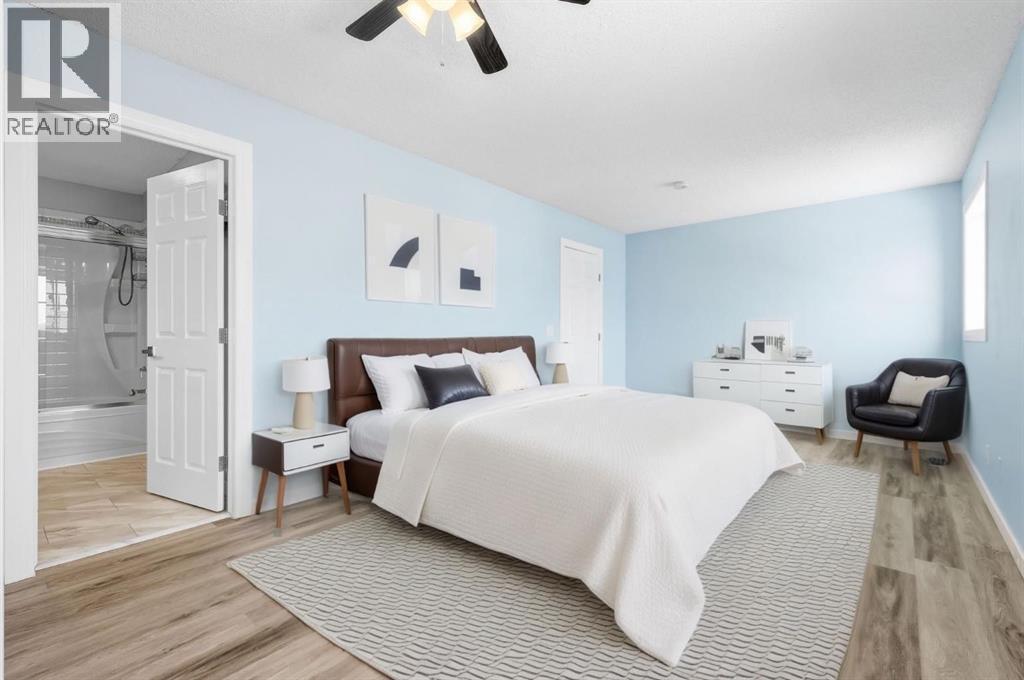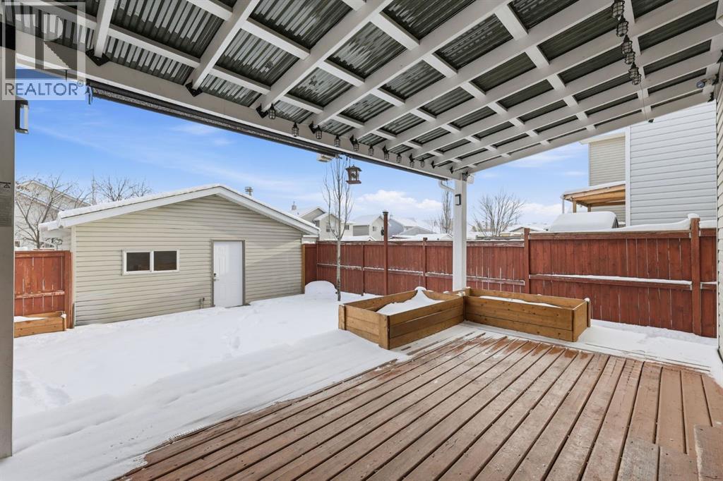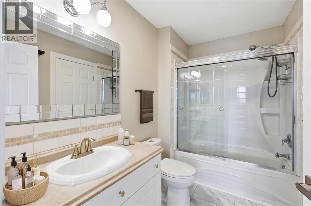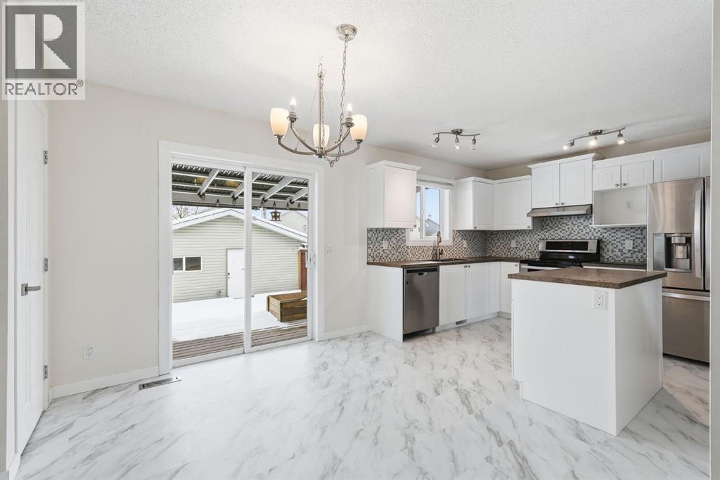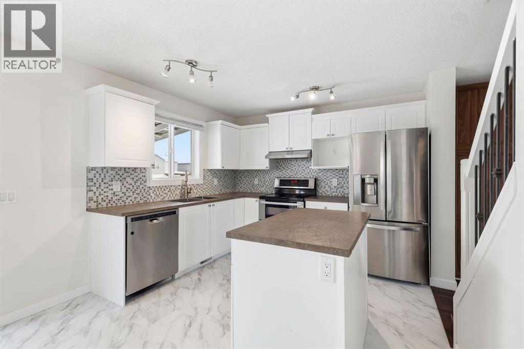 Stunning Former Showhome in the Heart of Bridlewood – Immaculate Inside & Out, with fresh and bright professional paint throughout, and brand-new flooring on main and upper. Ideally located on a quiet street in the popular family friendly community of Bridlewood. From the moment you arrive, you’ll notice the inviting curb appeal with its charming front porch upgraded with low-maintenance decking.Step inside to a warm and thoughtfully designed main floor featuring new flooring up and down, bright West-facing windows, and a cozy gas fireplace that anchors the living space. The kitchen offers timeless white cabinetry, upgraded stainless steel appliances, a stylish backsplash, and a versatile moveable island with power—perfect for meal prep or extra seating. A built-in desk area with added cabinetry complements the adjoining dining space, which opens onto a spacious covered East-facing deck complete with outdoor roller shades—great for morning coffee or evening shade.Upstairs, the large primary suite includes his and hers closets and convenient access to the updated 4-piece bathroom. Two additional bedrooms complete this level, along with access to attic storage for those extra items.The fully finished basement expands your living options with laminate flooring, a comfortable family room, a dedicated recreation/games area, a 3-piece bathroom, and a laundry area with sink plus extra storage under the stairs.A major standout is the oversized double detached garage, fully insulated and set up for the hobbyist with a 220V heater, wood stove, and workshop. There’s even dedicated RV parking for added versatility.Shingles were replaced on the house in 2012 and on the garage in 2022, recently installed A/C cooling, water filtration system - offering peace of mind for the next owner.This home is perfectly situated within walking distance to schools, parks, restaurants, and everyday shopping, with quick access to Stoney and Macleod Trail. Properties this well maintained ar e rare—this one truly shows pride of ownership throughout. (id:6769